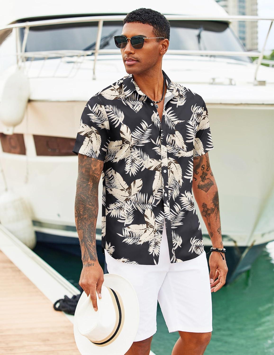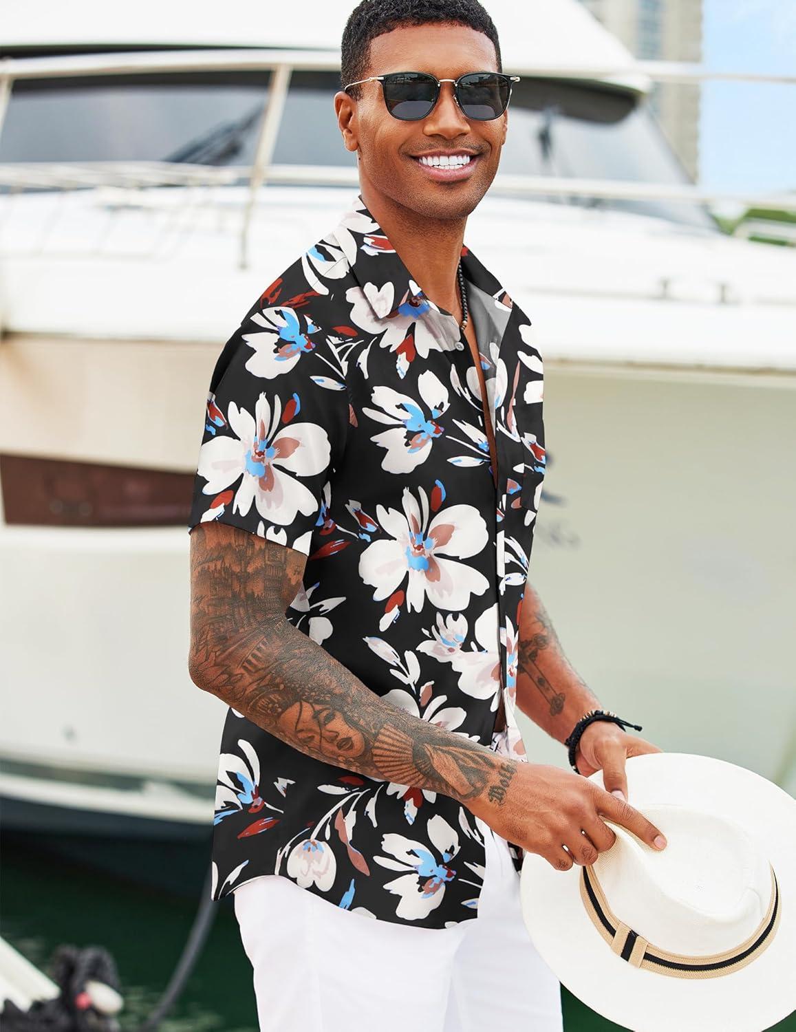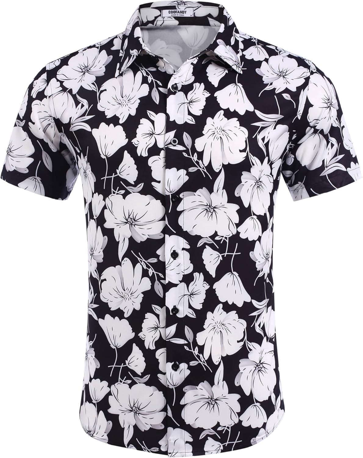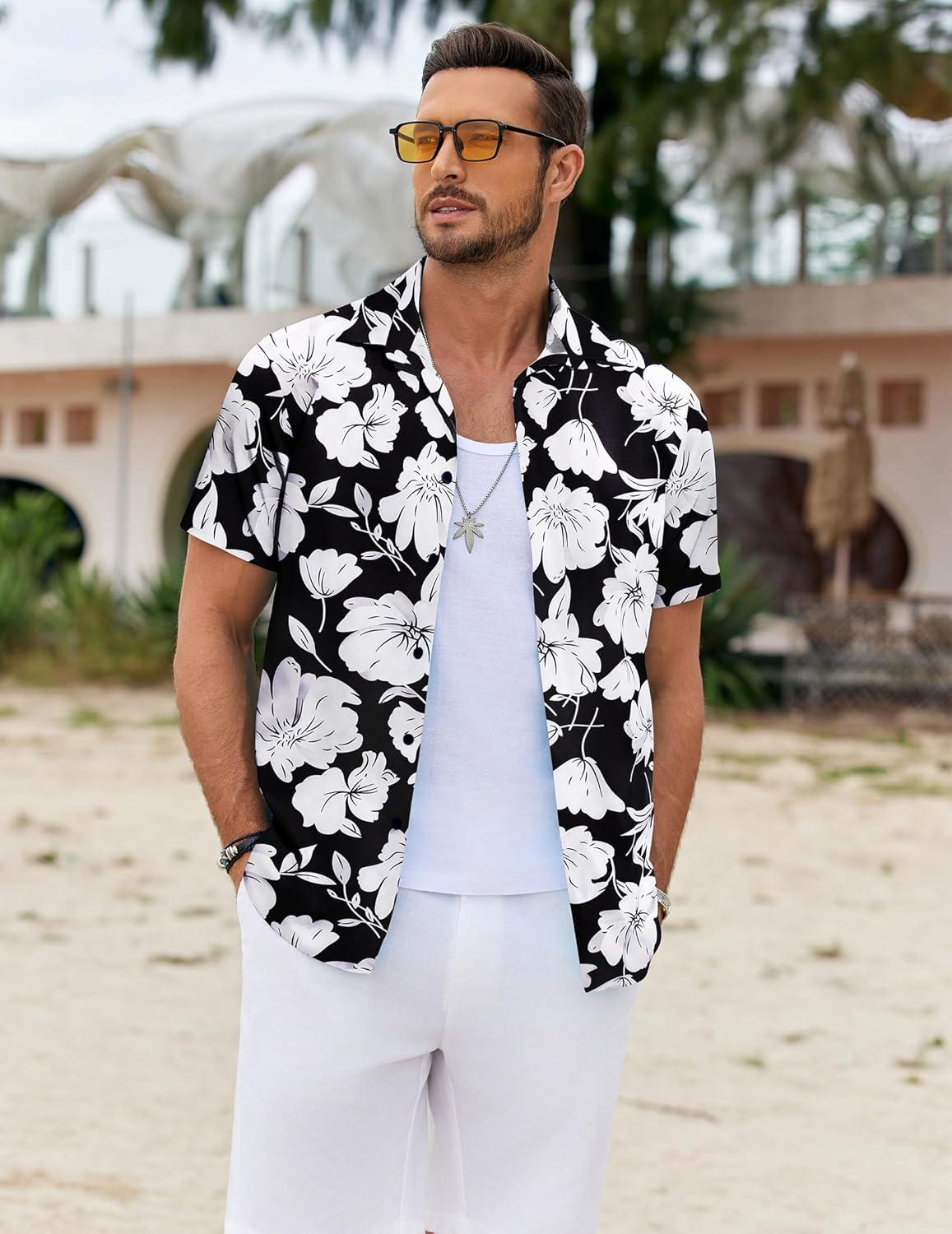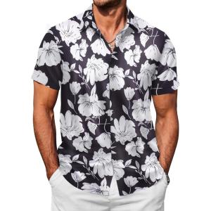 COOFANDY Mens Hawaiian Shirts Short Sleeve Button Down Shirt Casual Summer Beach Shirts Floral Tropical Vacation Resort Wear(Black & White)