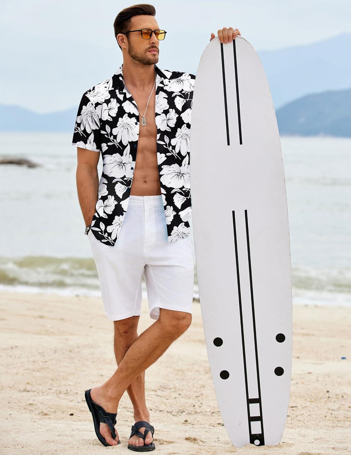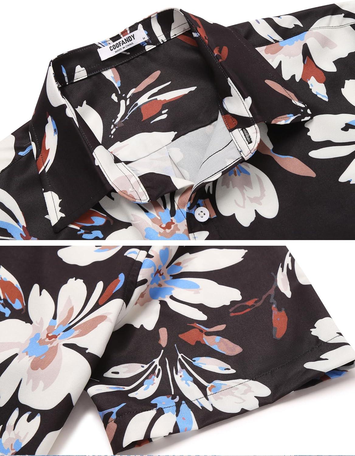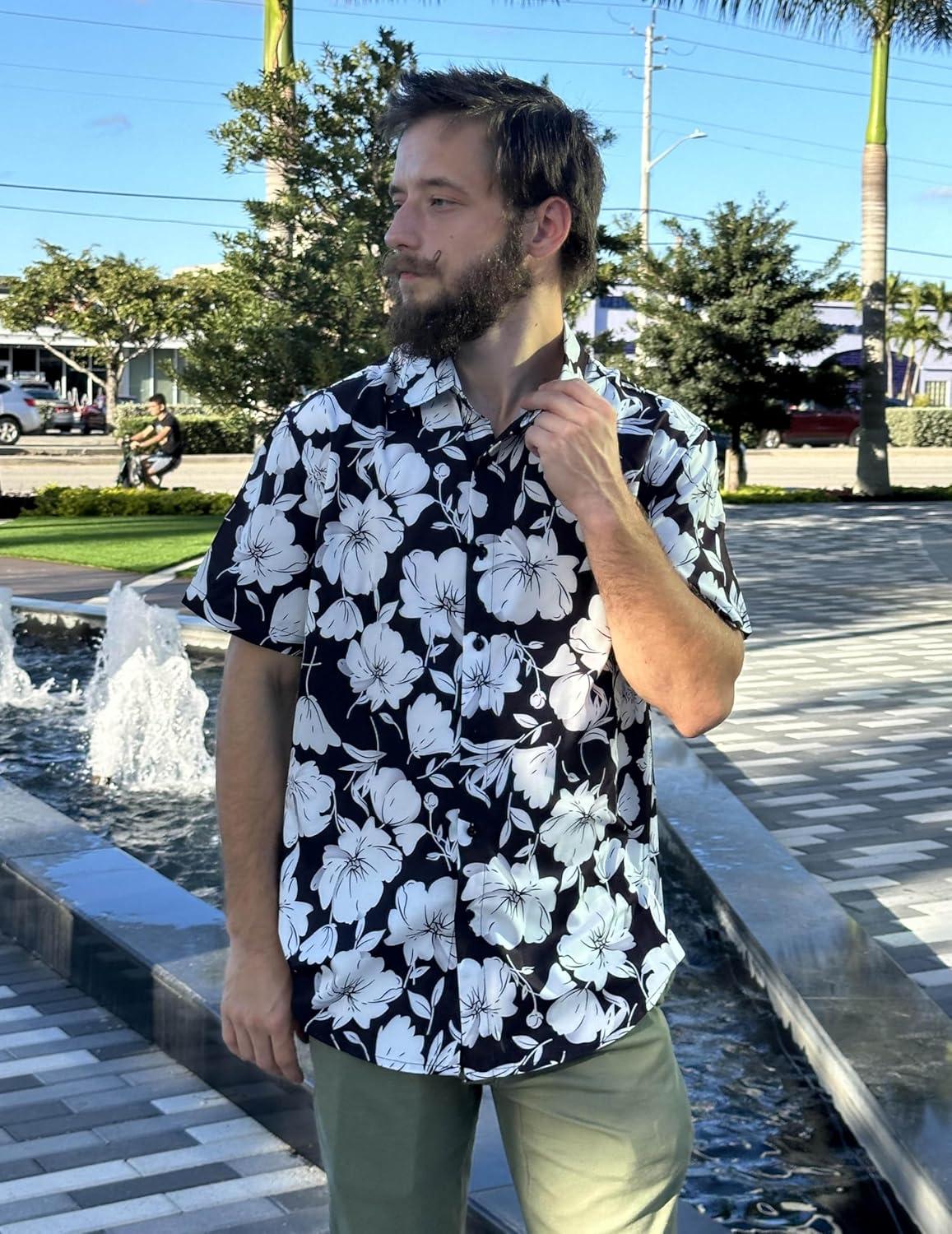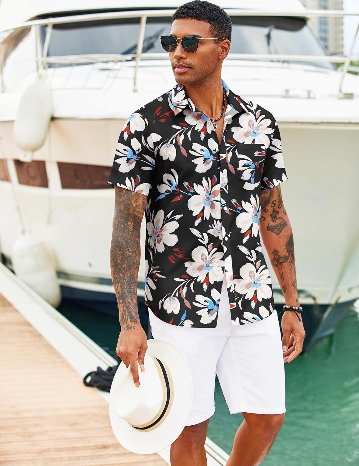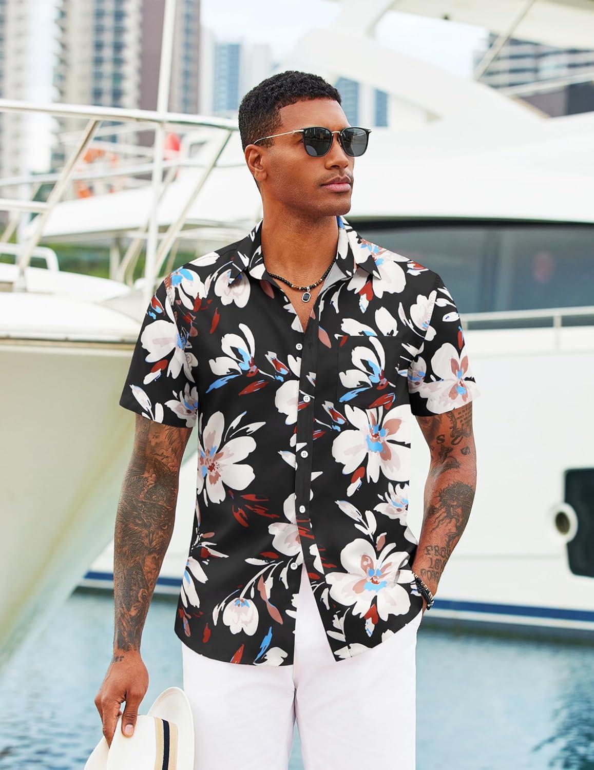 COOFANDY Mens Hawaiian Shirts Short Sleeve Button Down Shirt Casual Summer Beach Shirts Floral Tropical Vacation Resort Wear(Black & White)