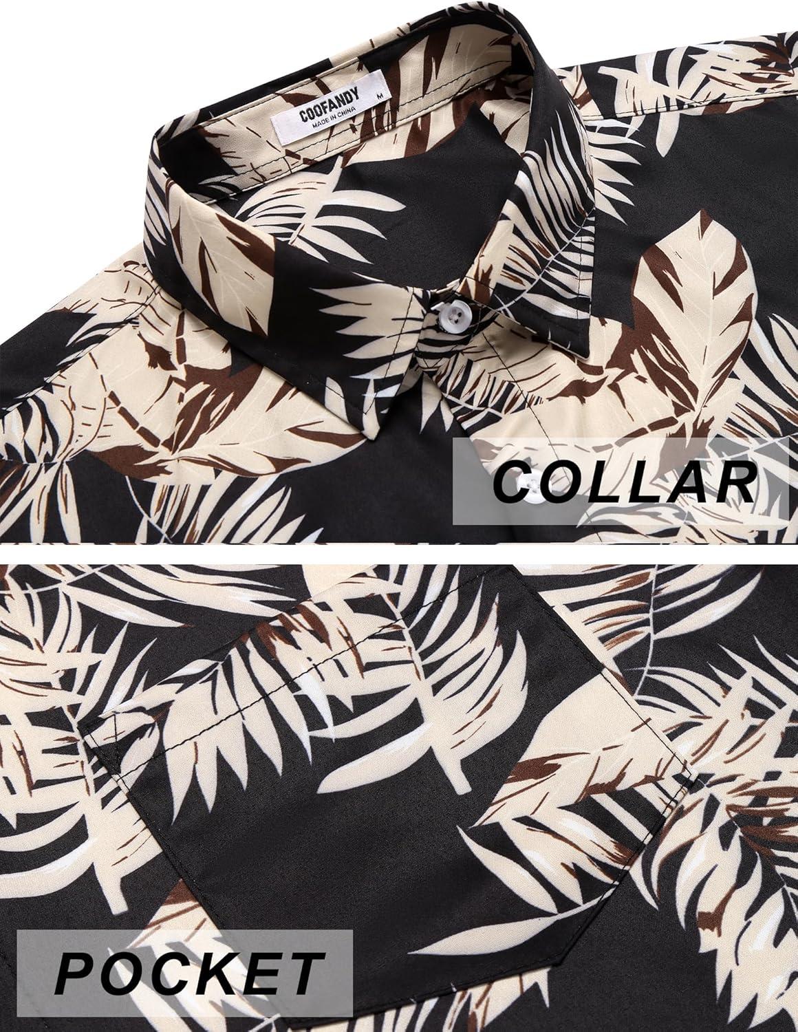 COOFANDY Mens Hawaiian Shirts Short Sleeve Tropical Button Down Shirts Floral Summer Beach Shirt(Black – Khaki Leaves)