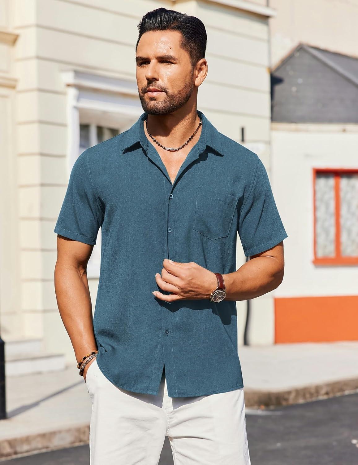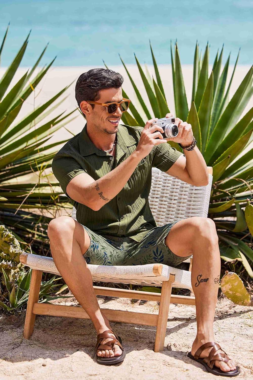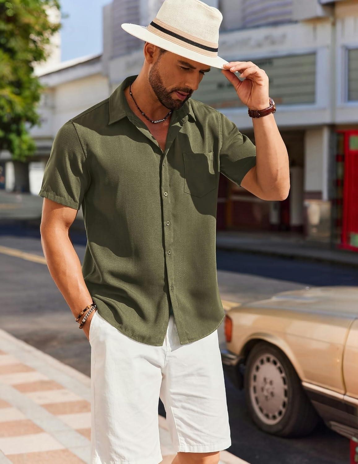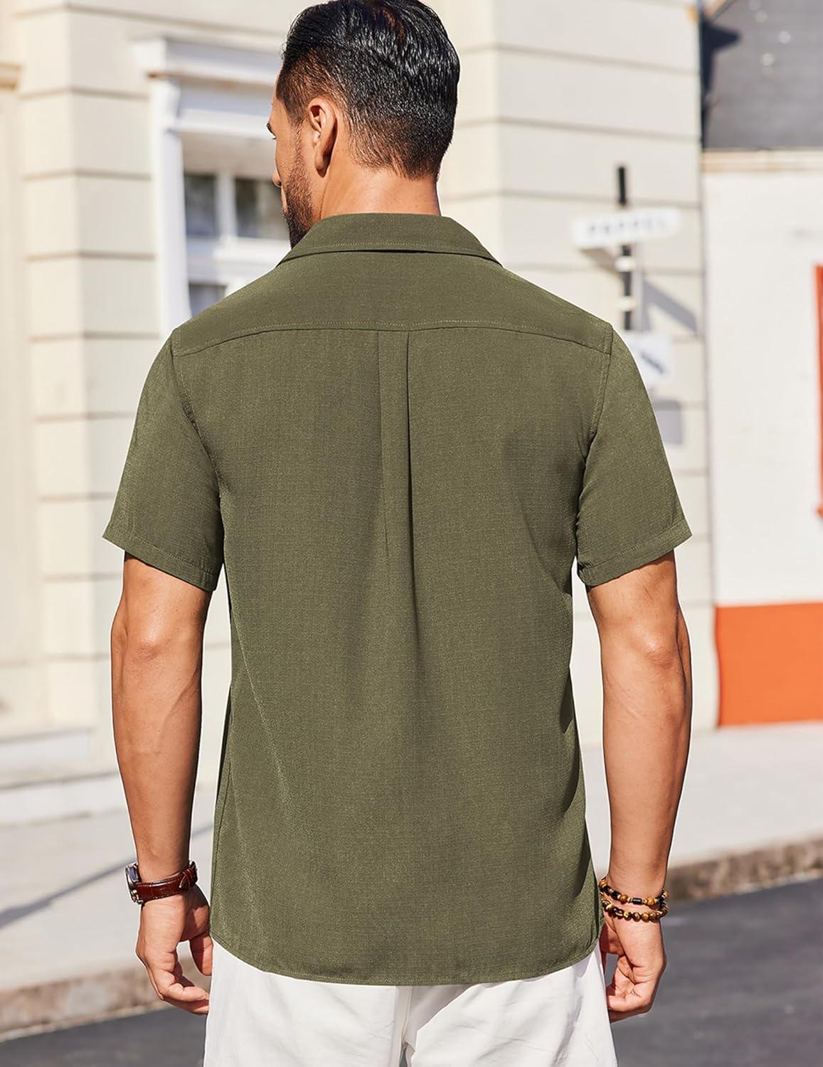 COOFANDY Men’s Short Sleeve Casual Button Down Shirts Textured Summer Beach Shirt with Pocket(Olive Green)