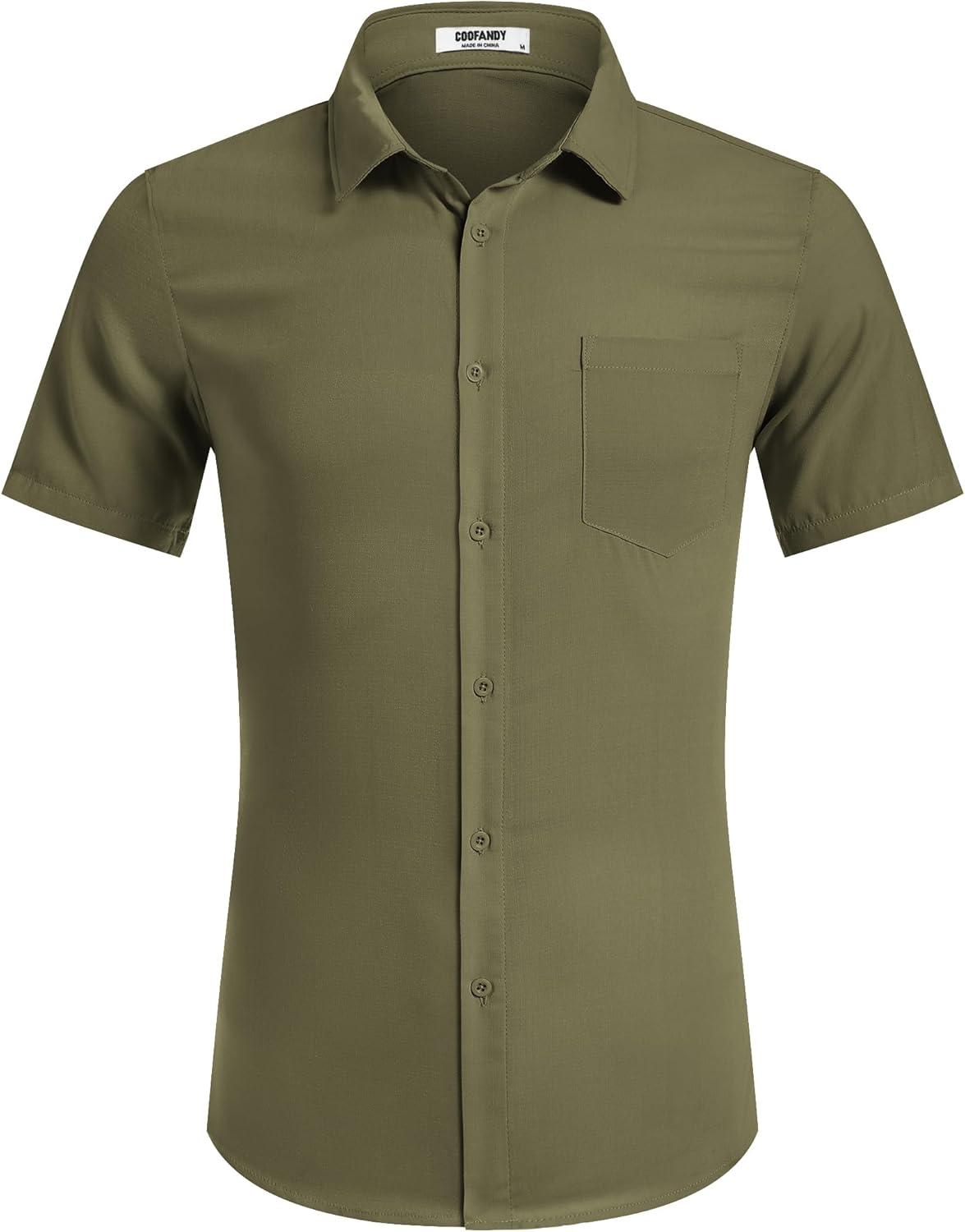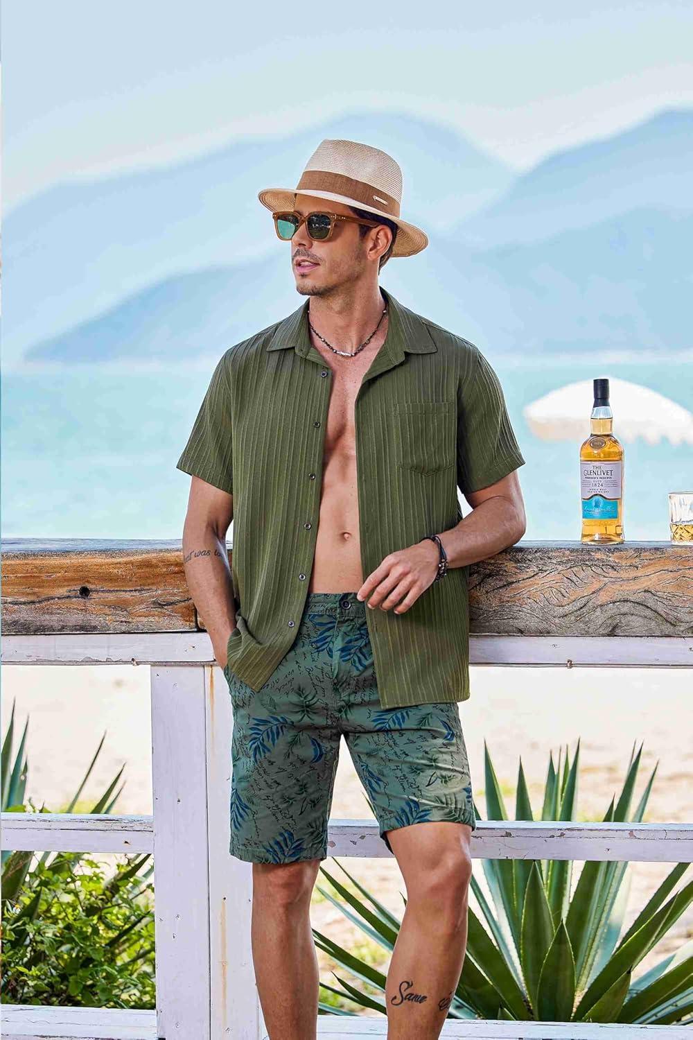 COOFANDY Mens Casual Short Sleeve Shirts Button Down Textured Shirts Summer Beach Shirt with Pocket(Army Green)