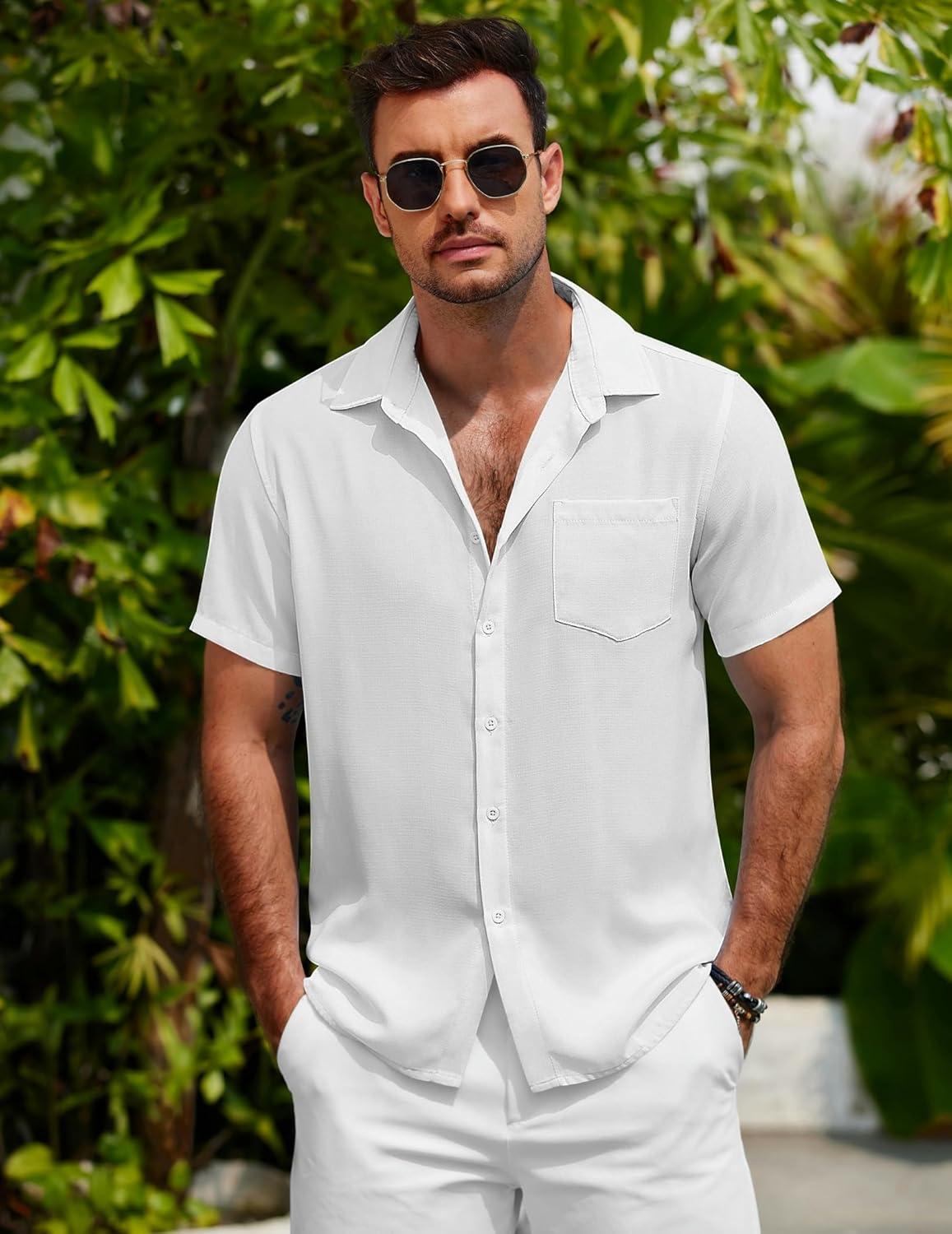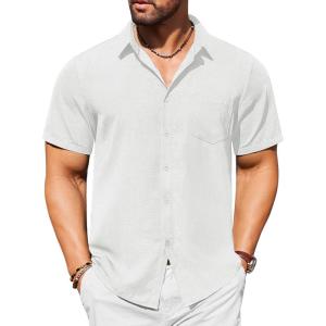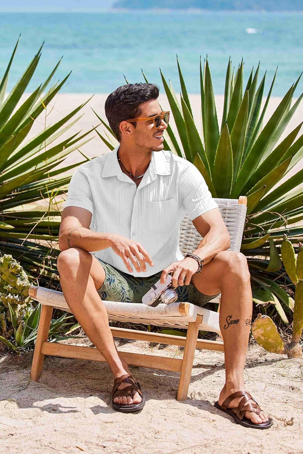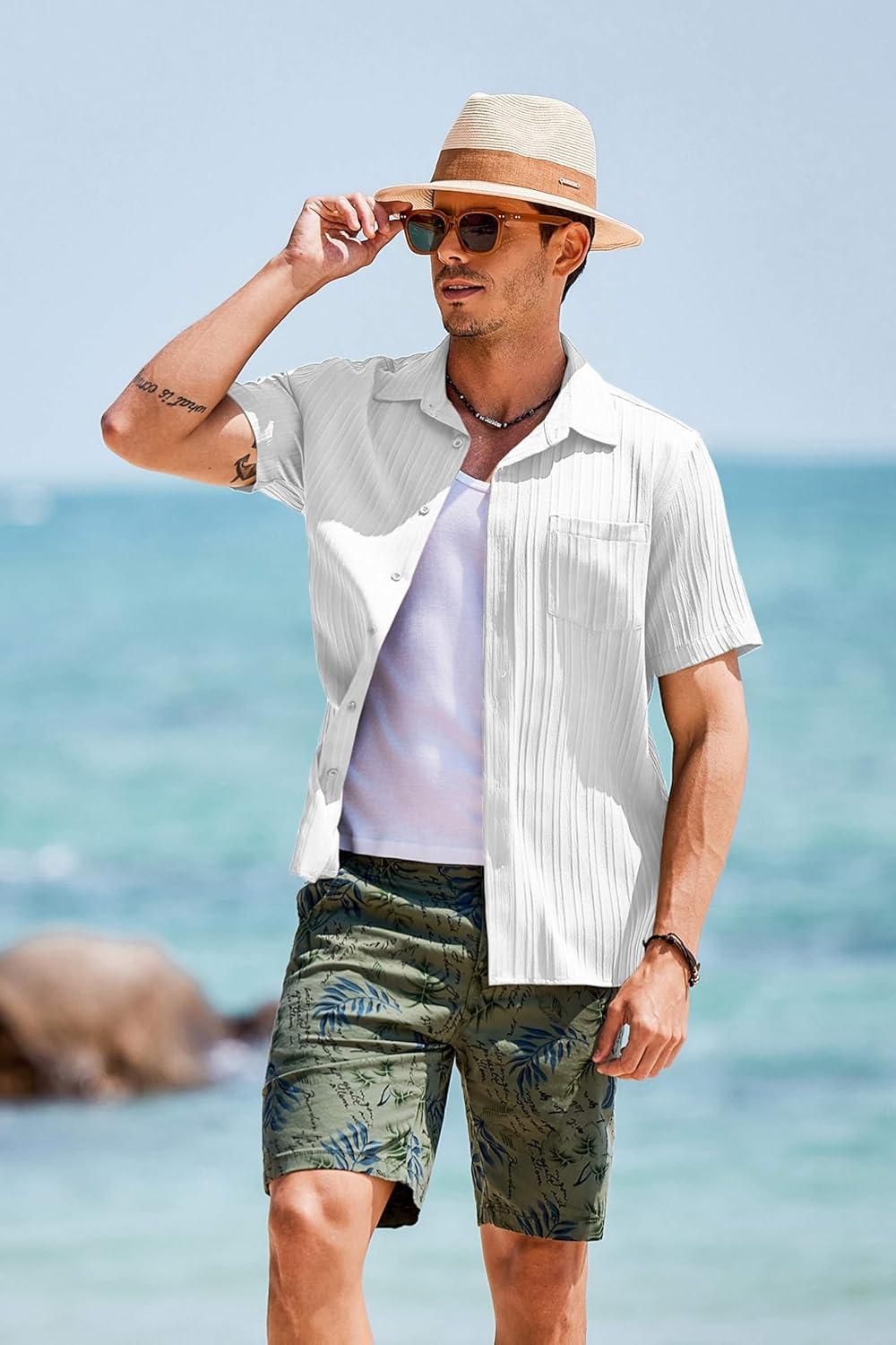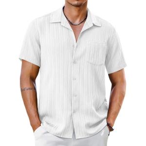 COOFANDY Men’s Short Sleeve Casual Button Down Shirts Textured Summer Beach Shirt with Pocket(White)