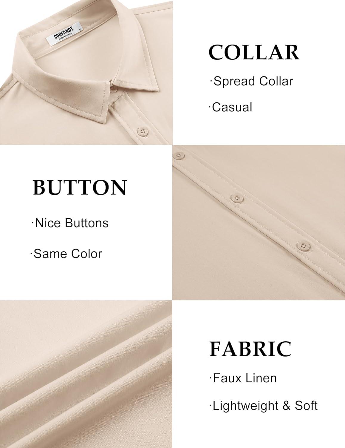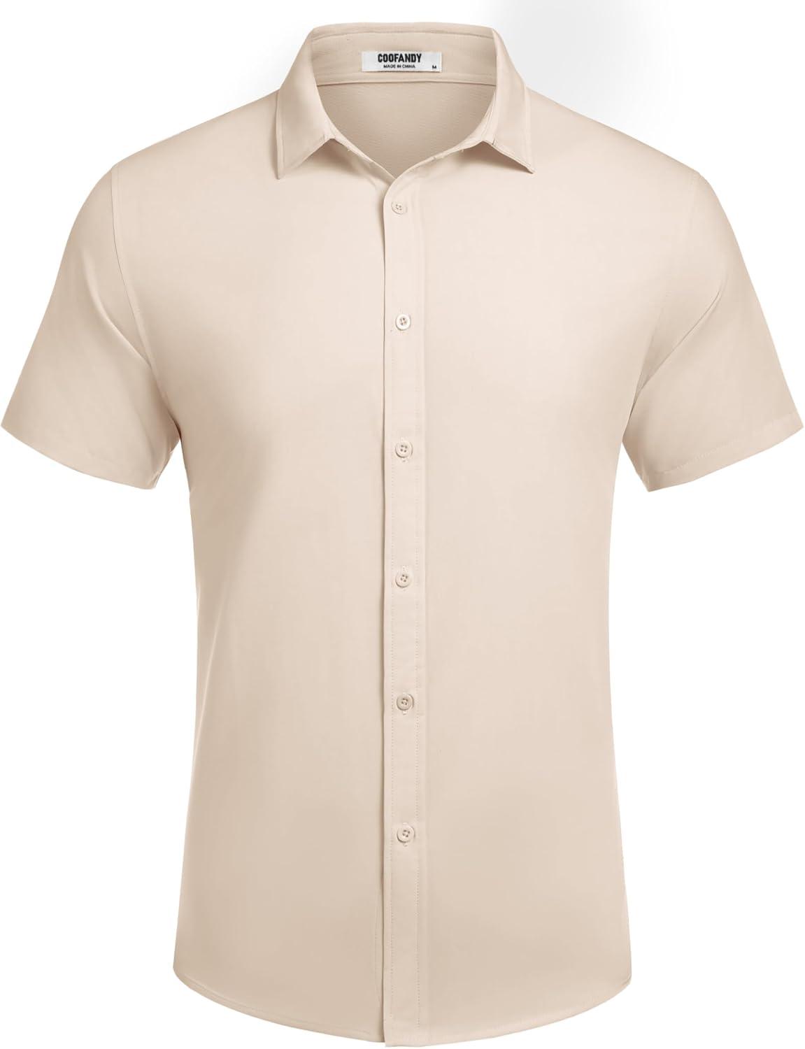 COOFANDY Mens Casual Short Sleeve Shirts Button Down Textured Shirts Summer Beach Shirt with Pocket(Khaki)