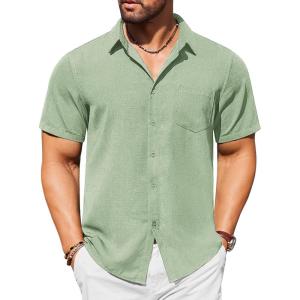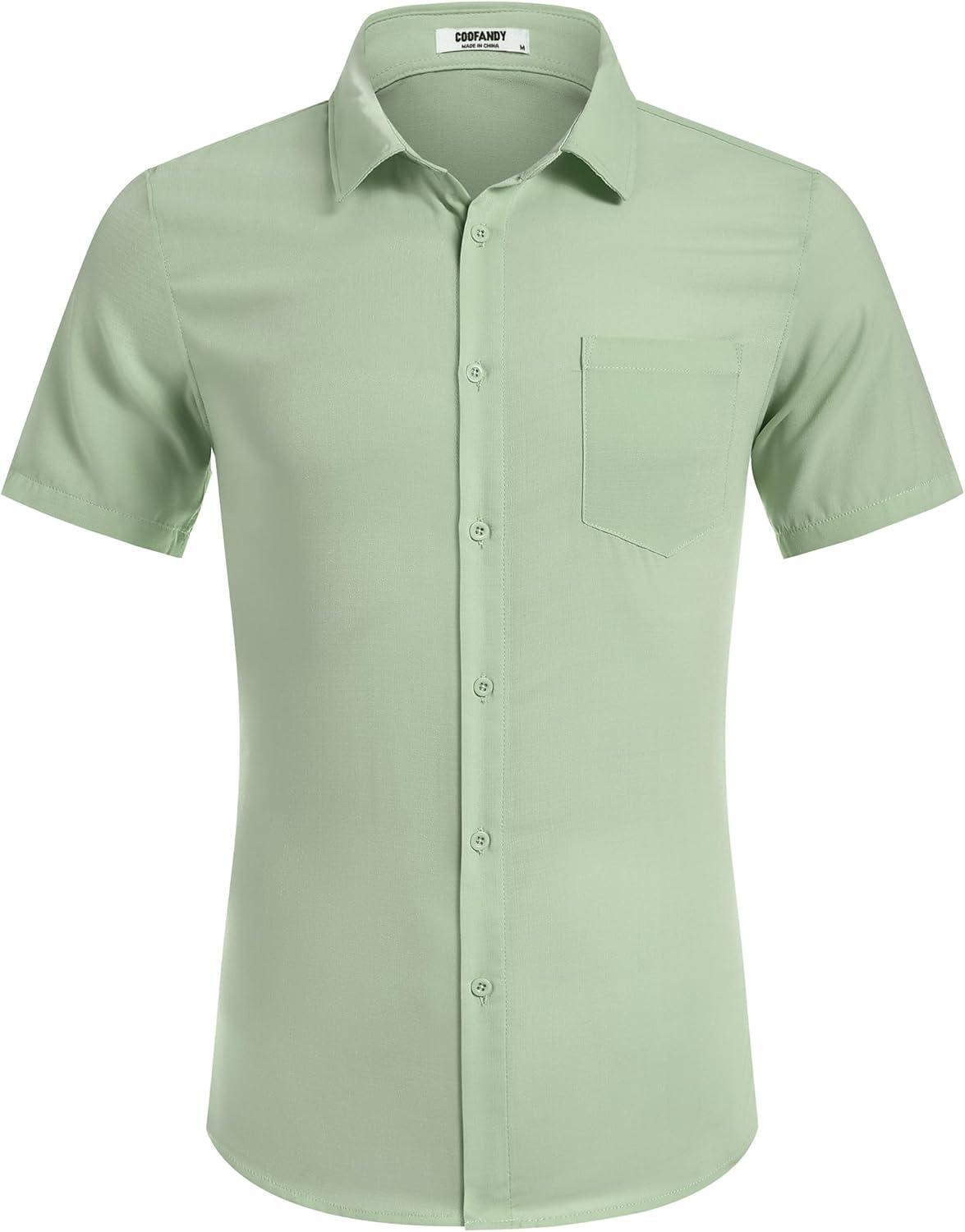 COOFANDY Mens Casual Short Sleeve Shirts Button Down Textured Shirts Summer Beach Shirt with Pocket(Light Green)