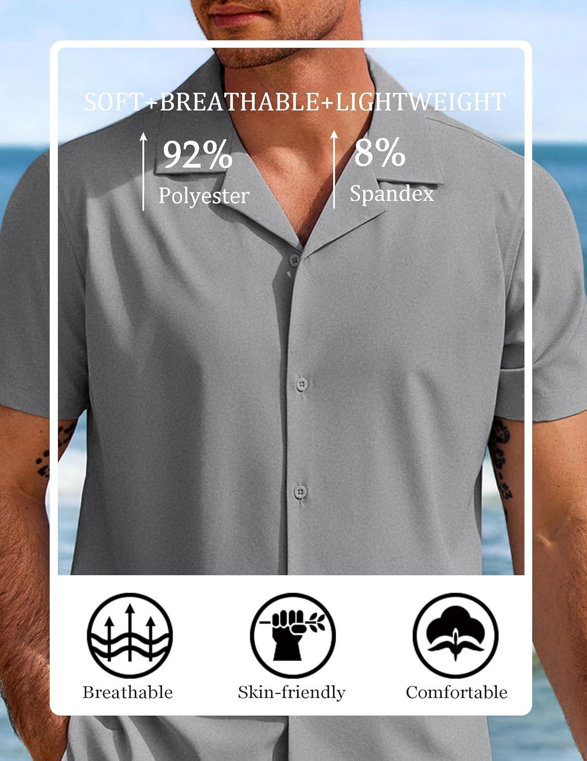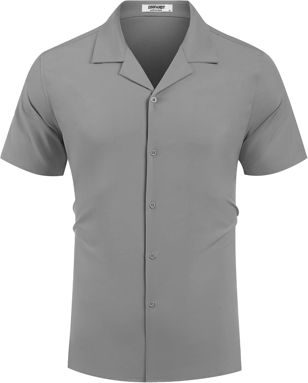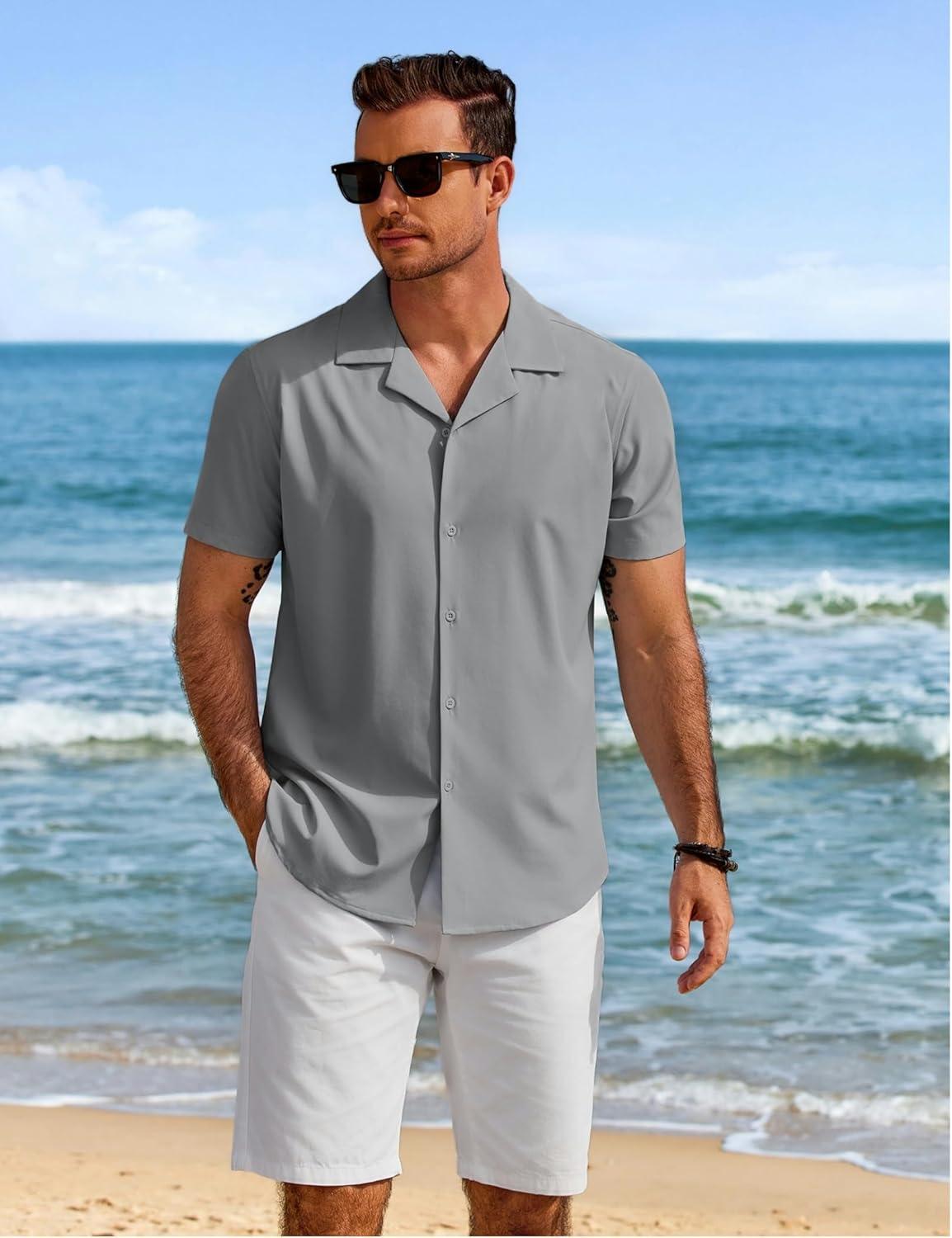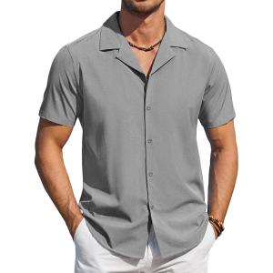 COOFANDY Mens Casual Short Sleeve Shirts Button Down Textured Shirts Summer Beach Shirt with Pocket(Light Grey)