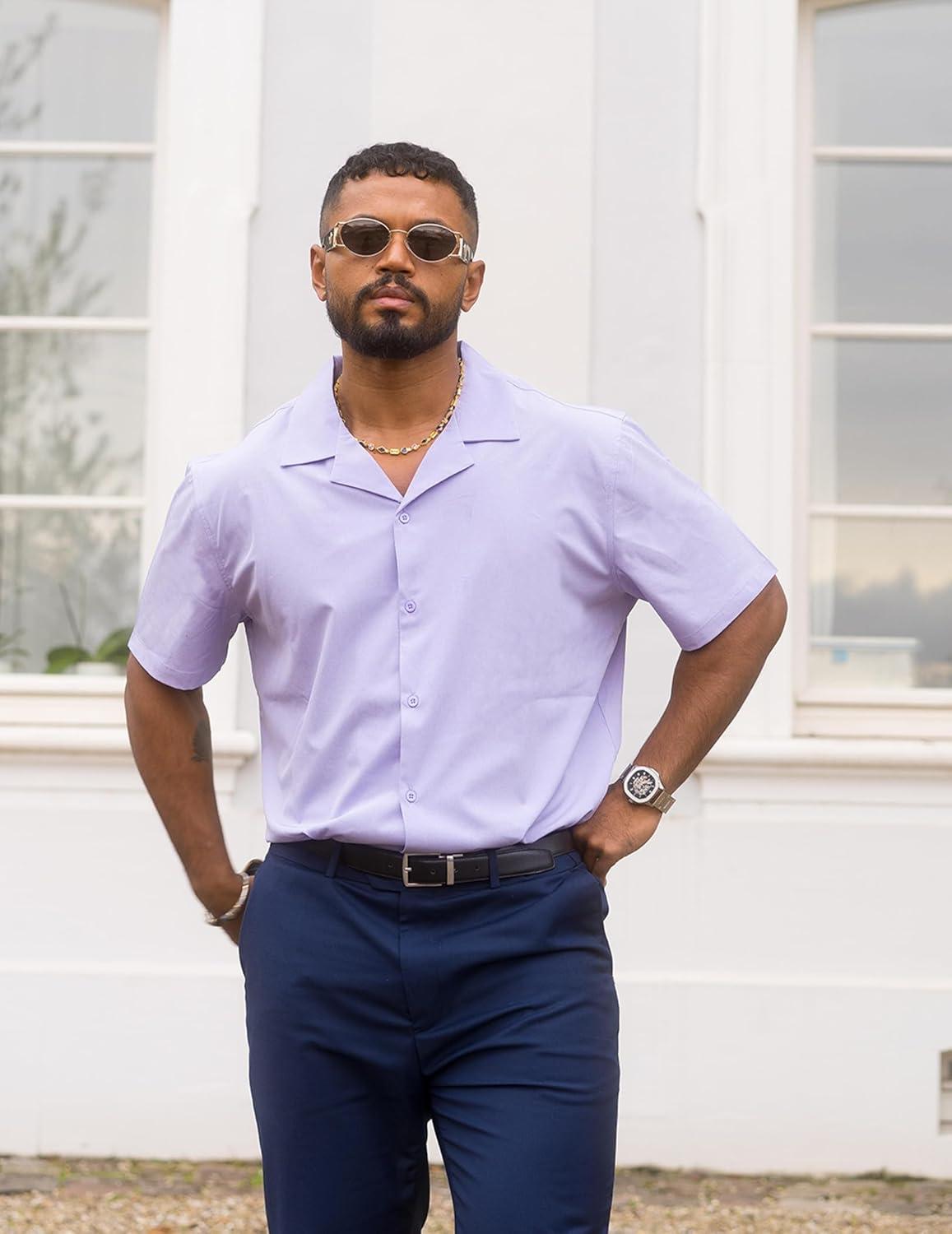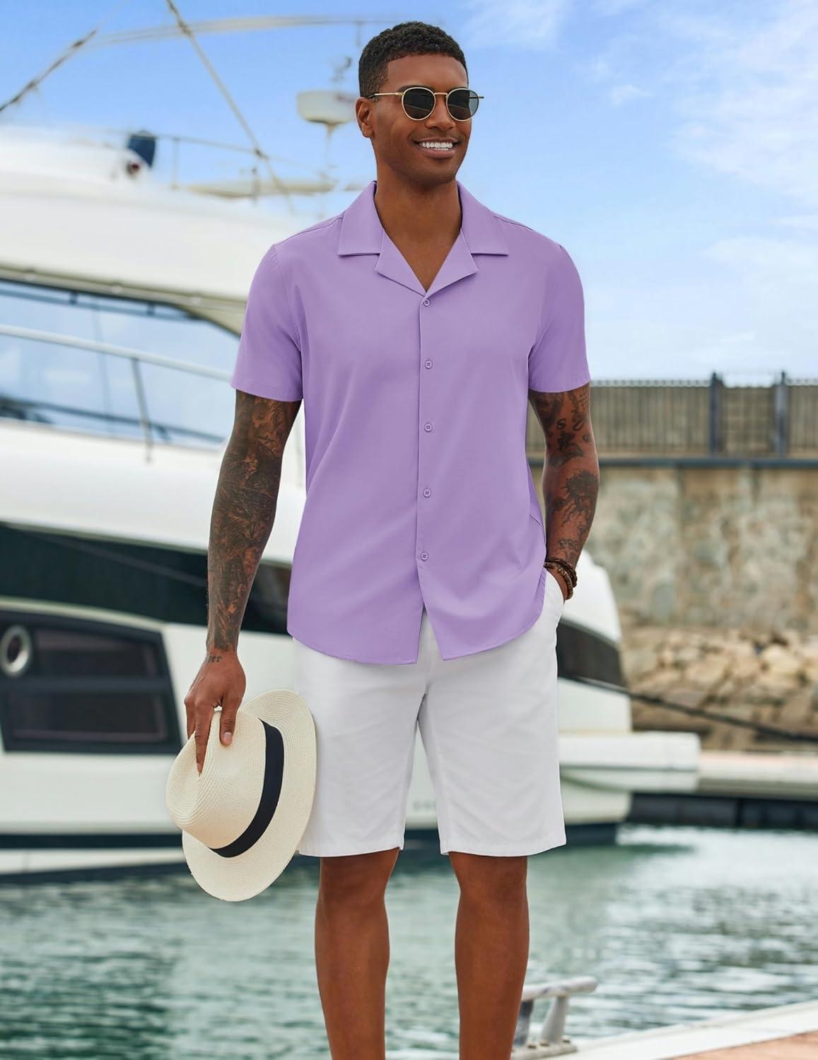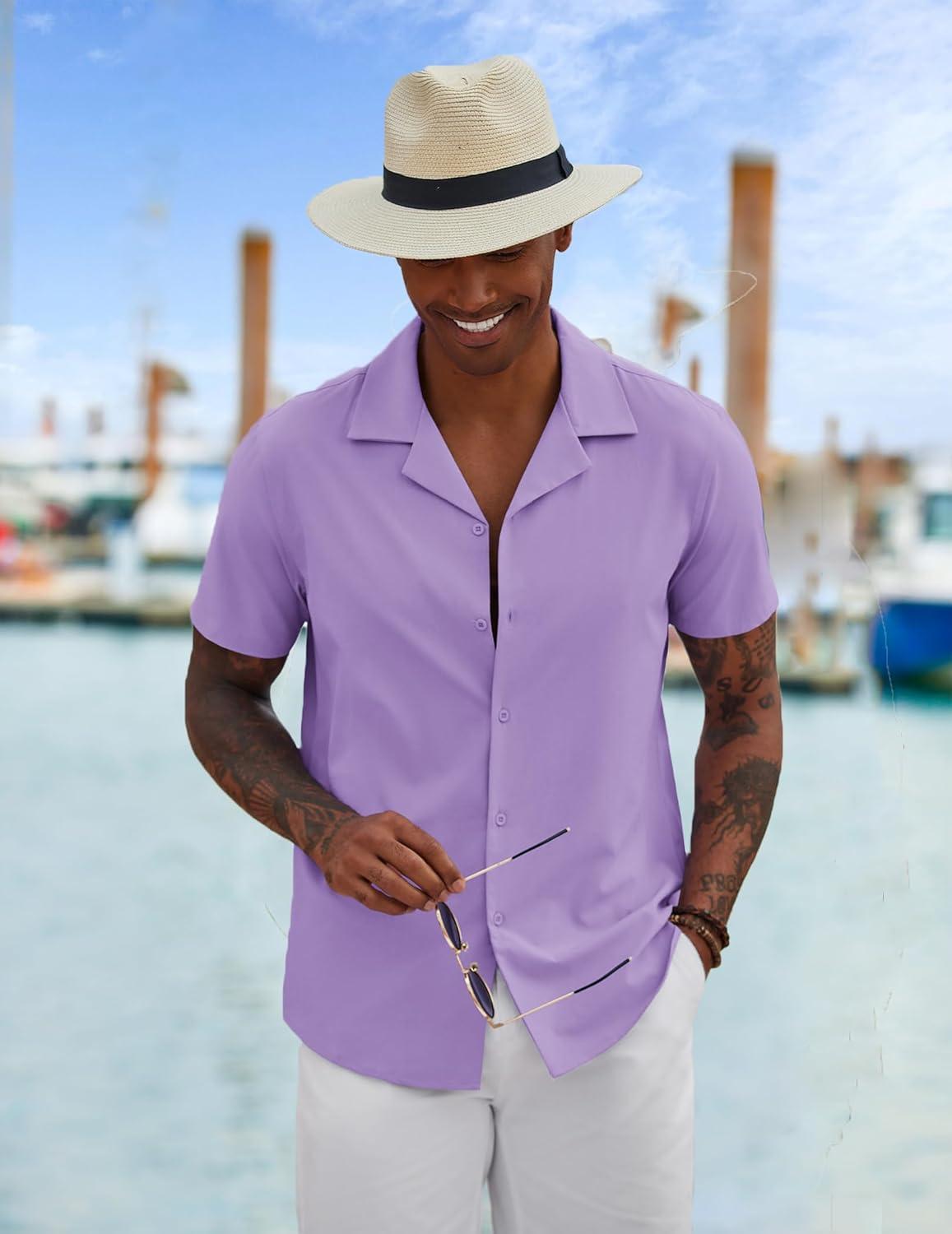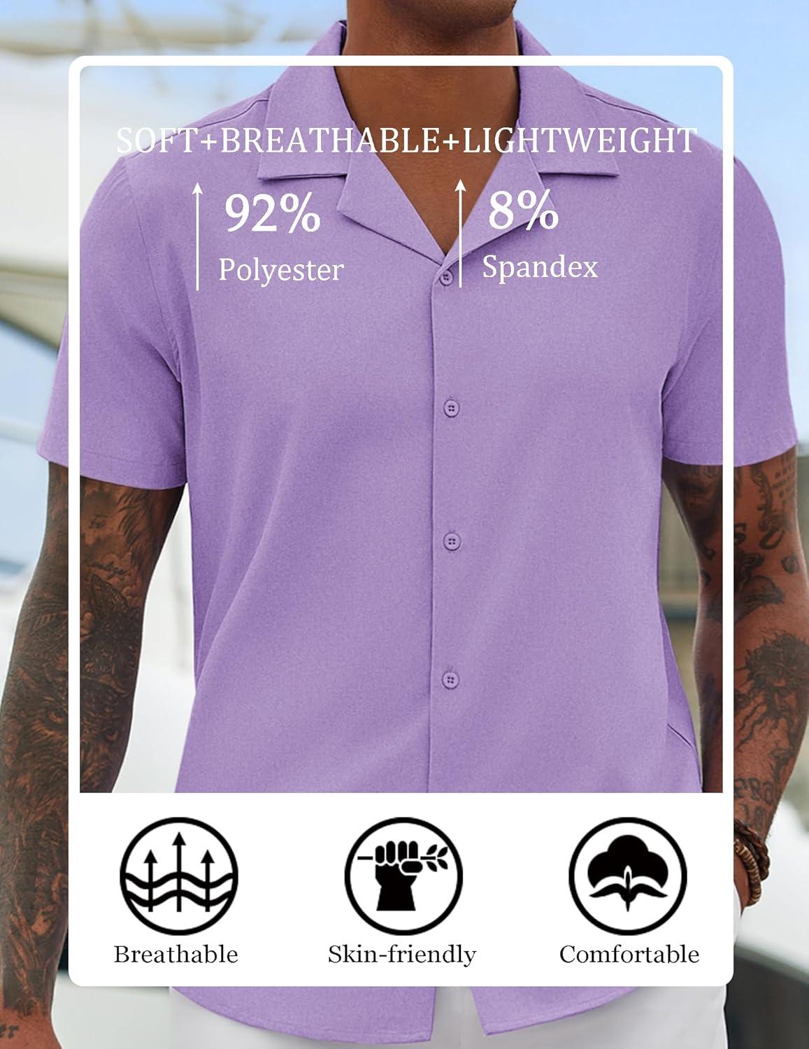COOFANDY Mens Casual Short Sleeve Shirts Button Down Textured Shirts Summer Beach Shirt with Pocket(Purple)