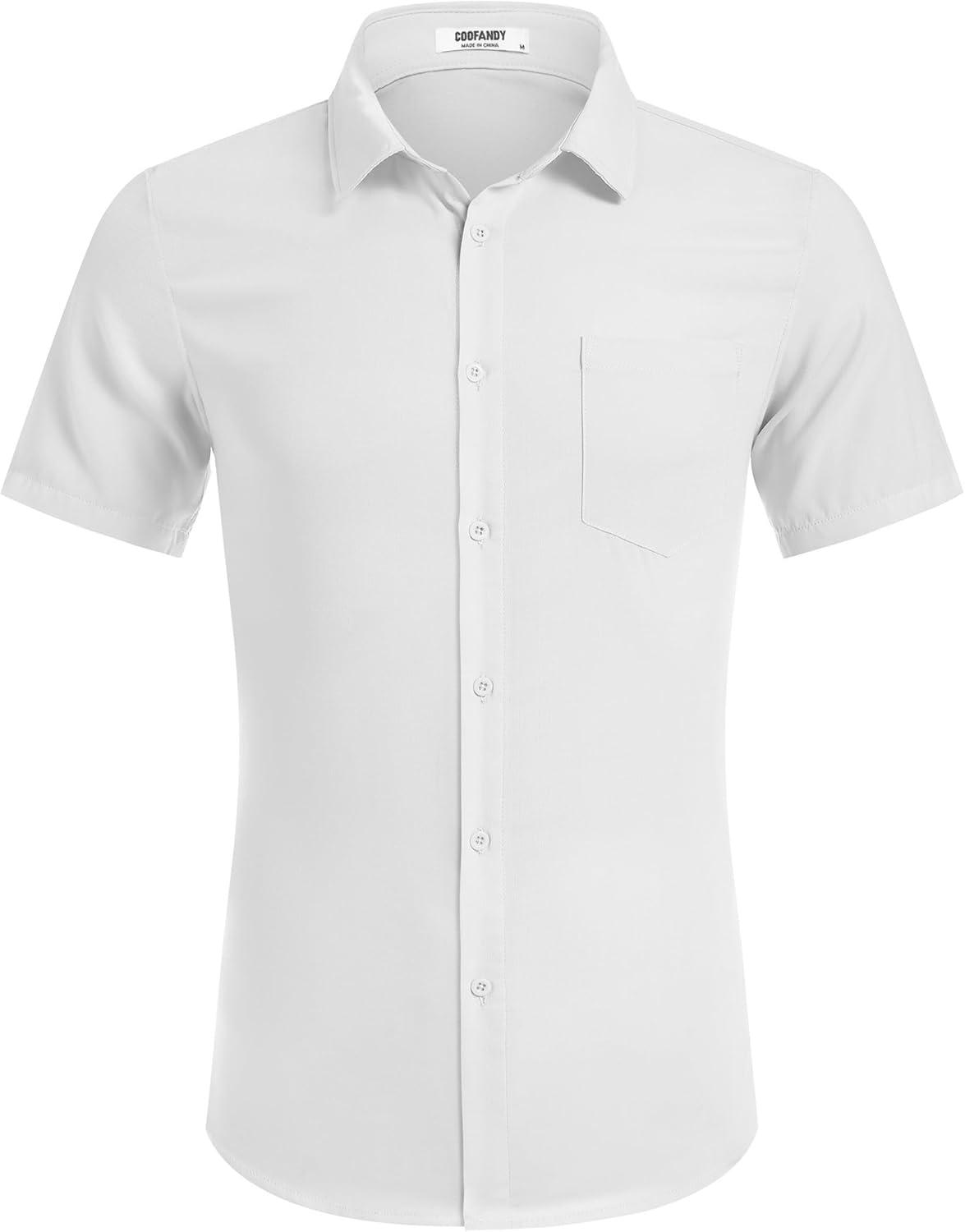 COOFANDY Mens Casual Short Sleeve Shirts Button Down Textured Shirts Summer Beach Shirt with Pocket(White)