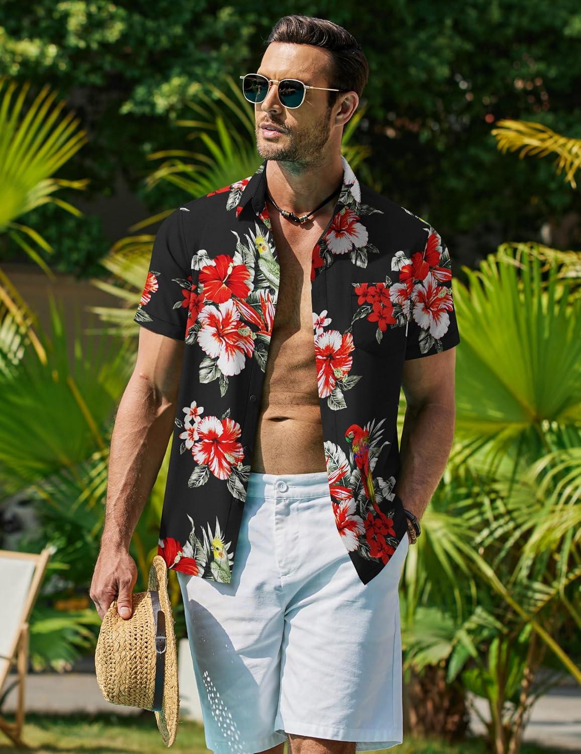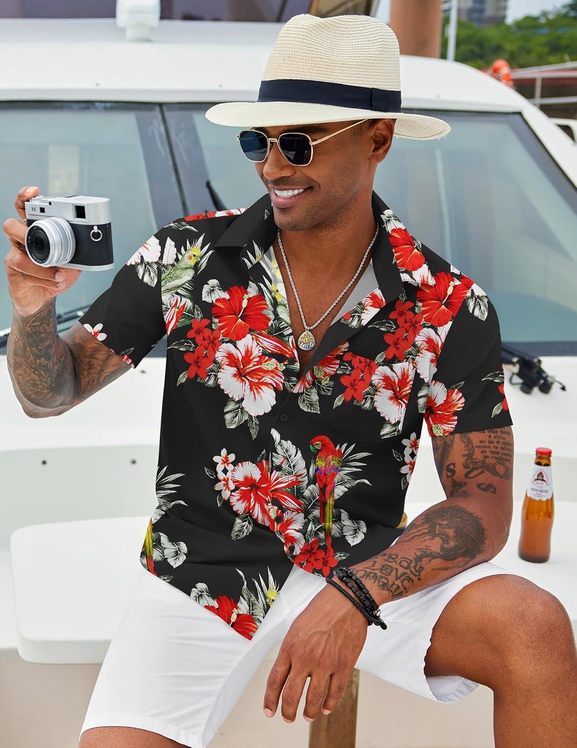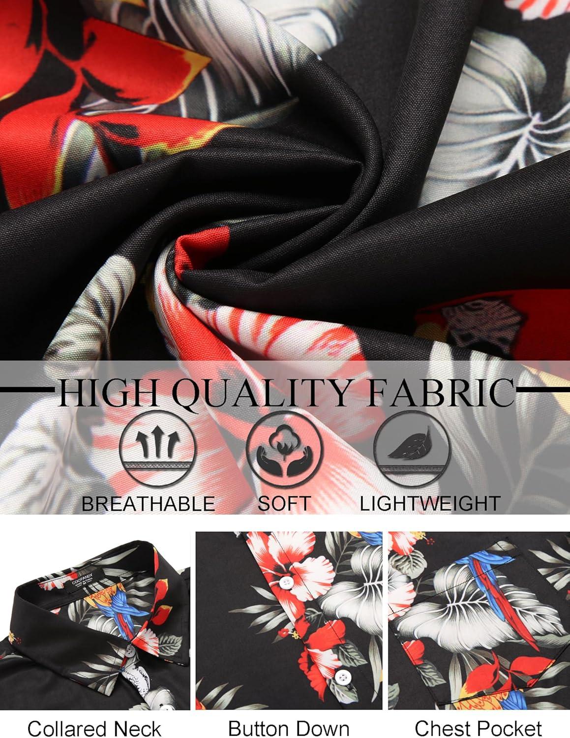 COOFANDY Mens Hawaiian Shirt Short Sleeve Button Down Shirt Tropical Summer Beach Shirt(Flower-hibiscus)