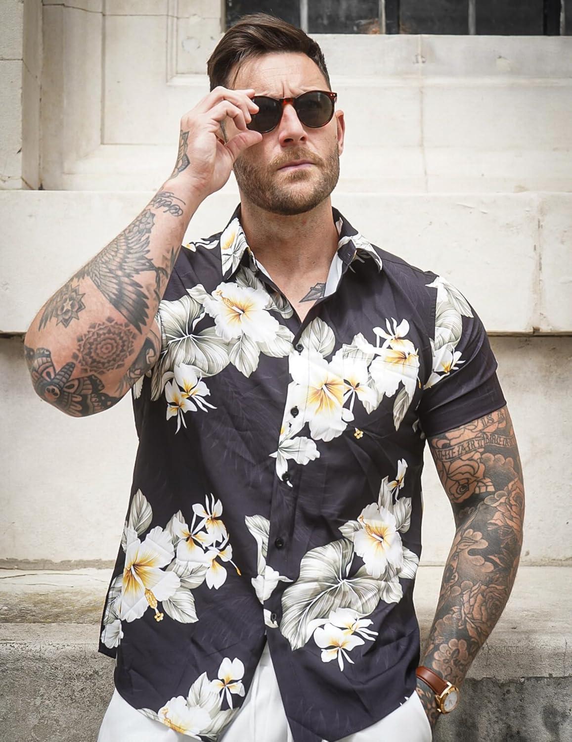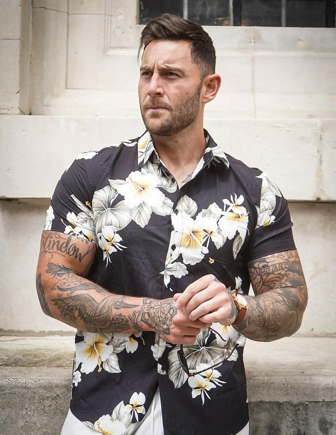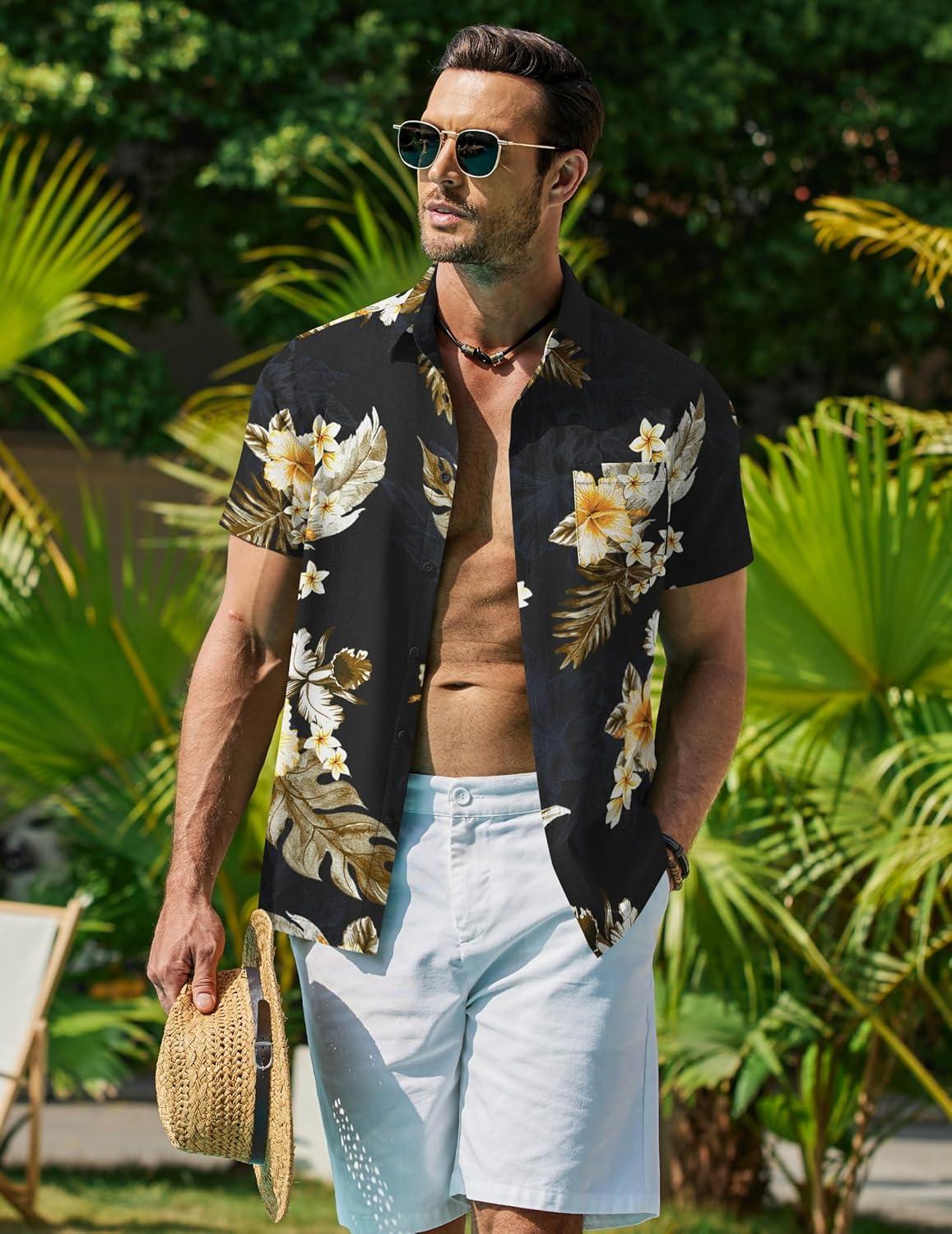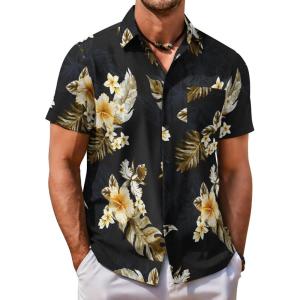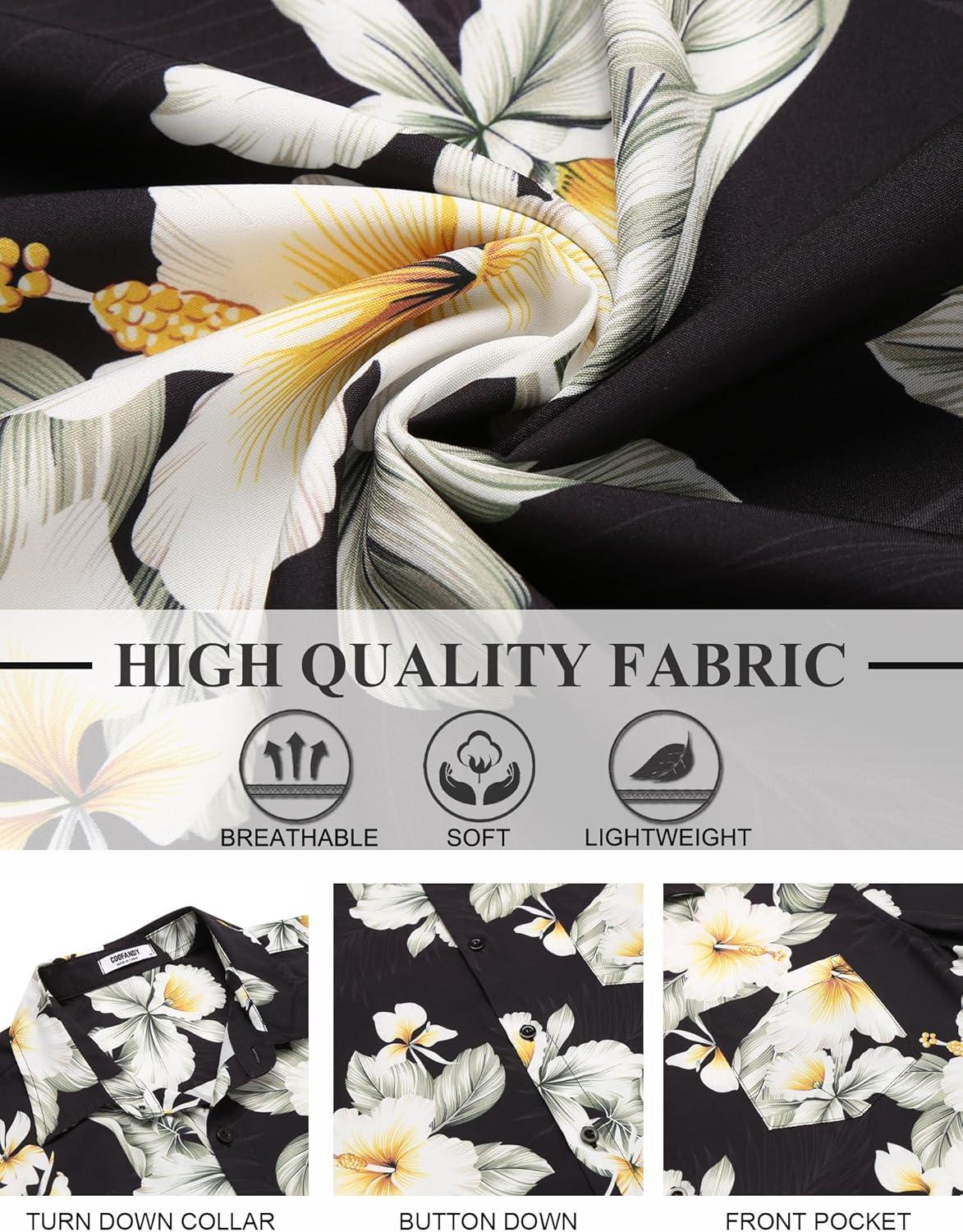 COOFANDY Mens Hawaiian Shirt Short Sleeve Button Down Shirt Tropical Summer Beach Shirt(Flower-black)