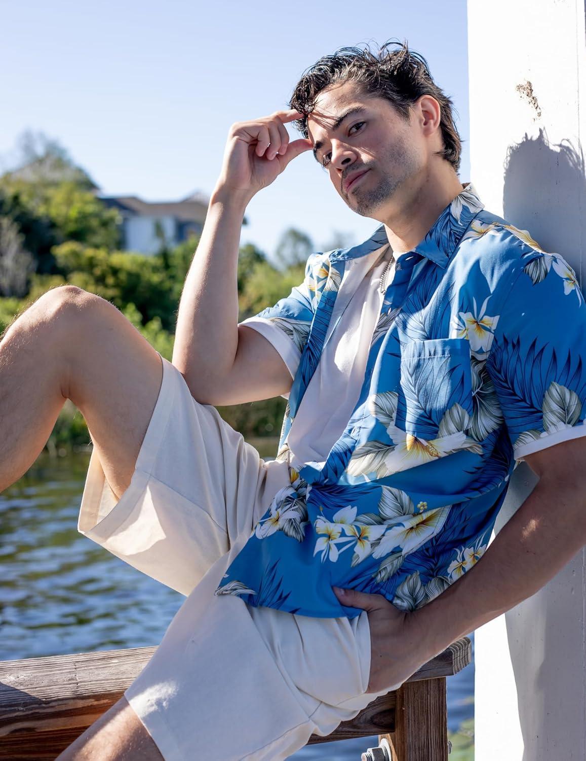 COOFANDY Mens Hawaiian Shirt Short Sleeve Button Down Shirt Tropical Summer Beach Shirt(Flower-lily)