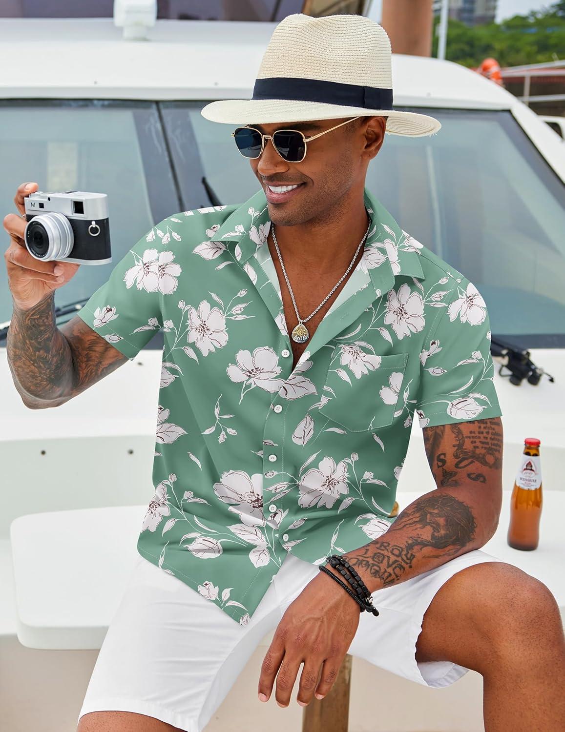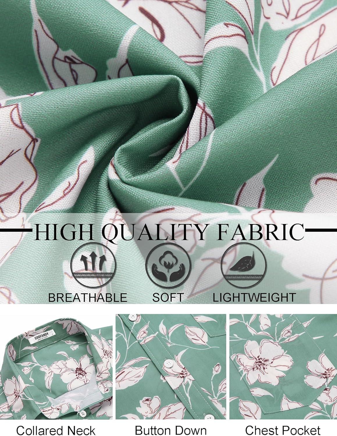 COOFANDY Mens Hawaiian Shirt Short Sleeve Button Down Shirt Tropical Summer Beach Shirt(Flower-green)