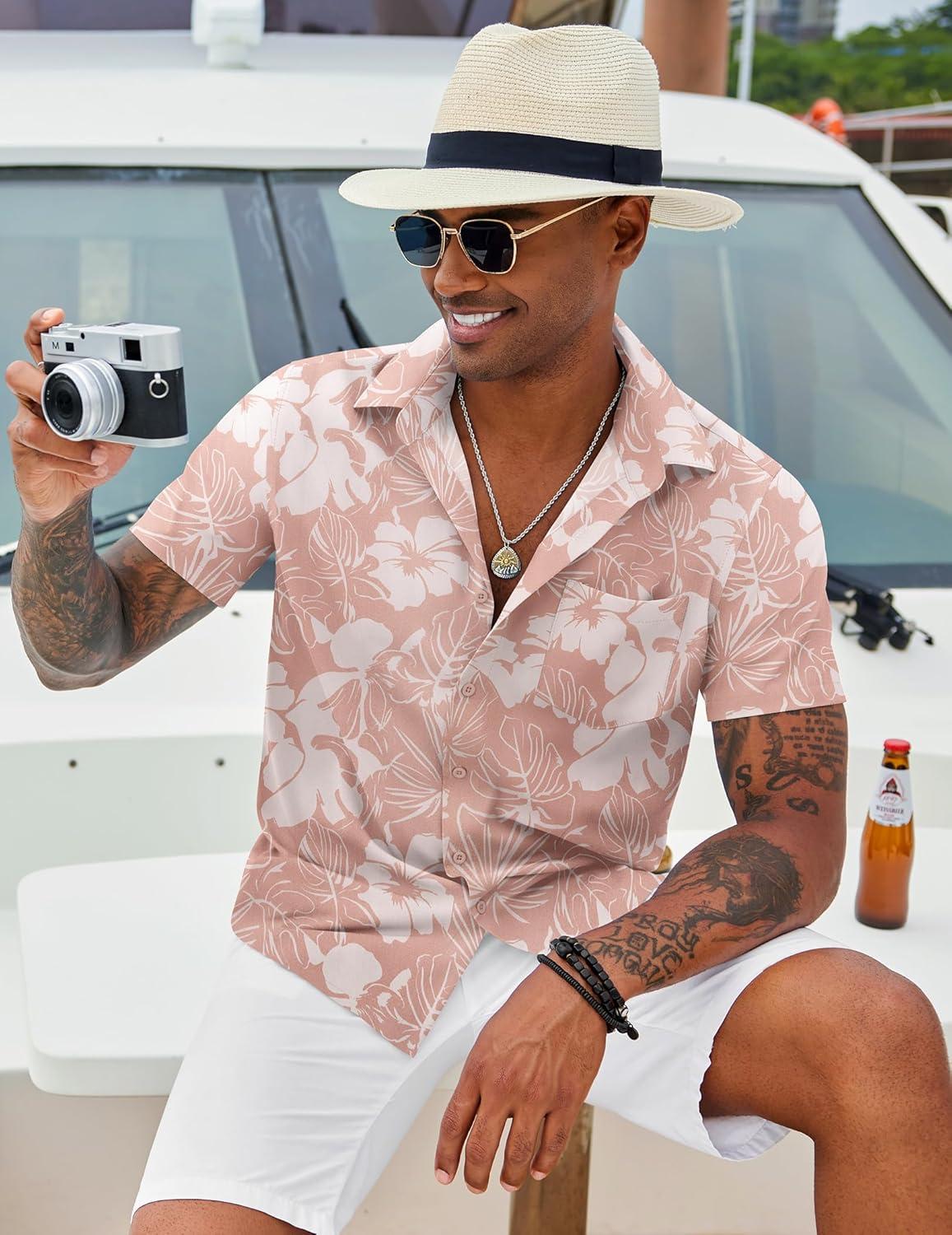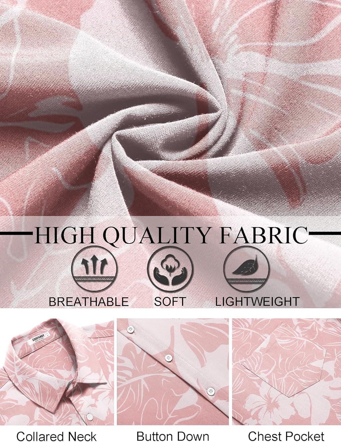 COOFANDY Mens Hawaiian Shirt Short Sleeve Button Down Shirt Tropical Summer Beach Shirt(Flower-pink)