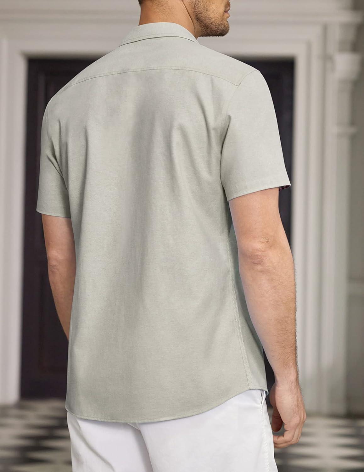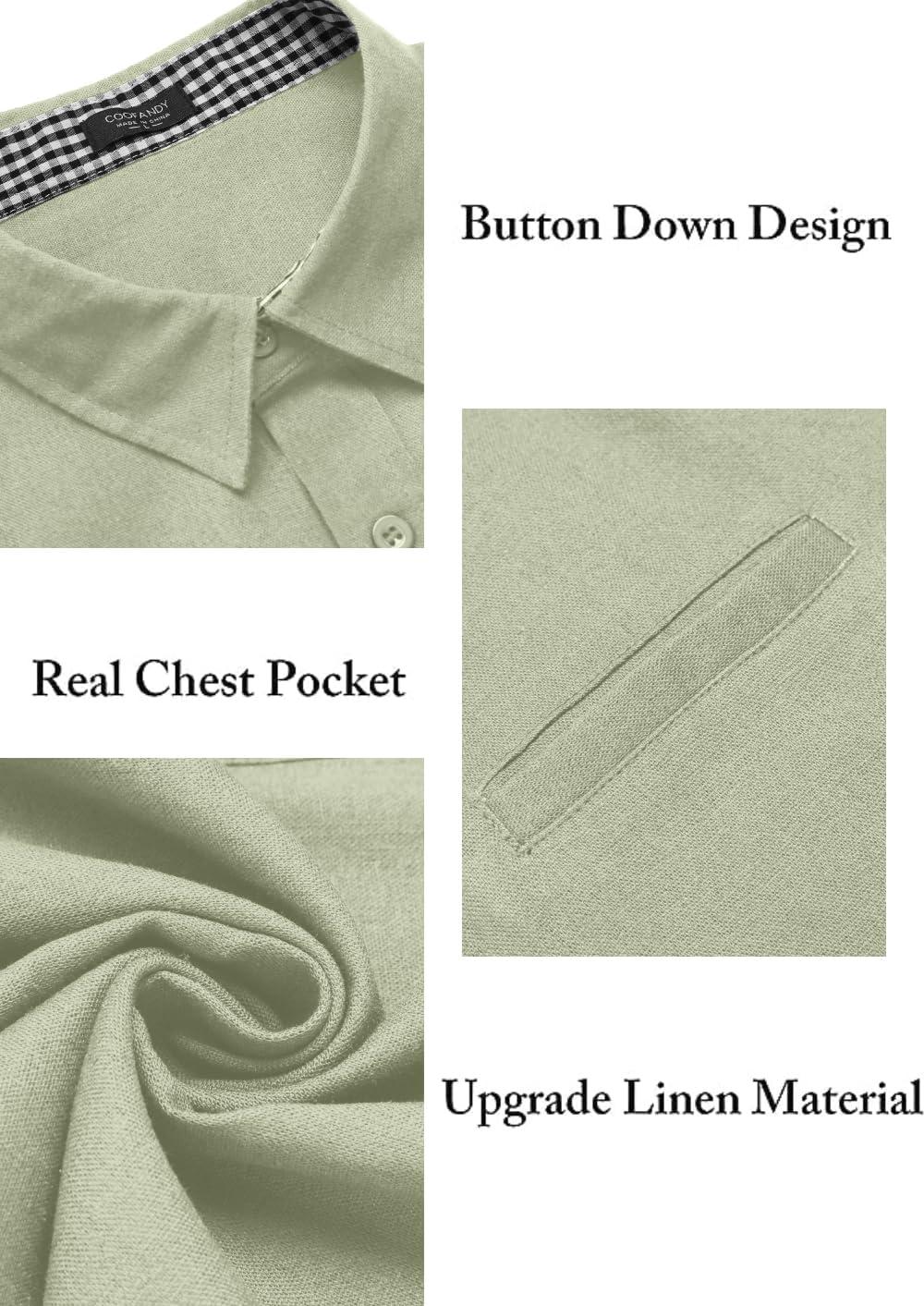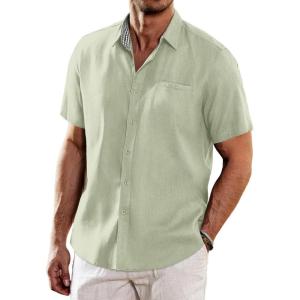 • COOFANDY Men’s Casual Linen Shirts Short Sleeve Button Down Shirt Summer Beach Tops(Light Green)