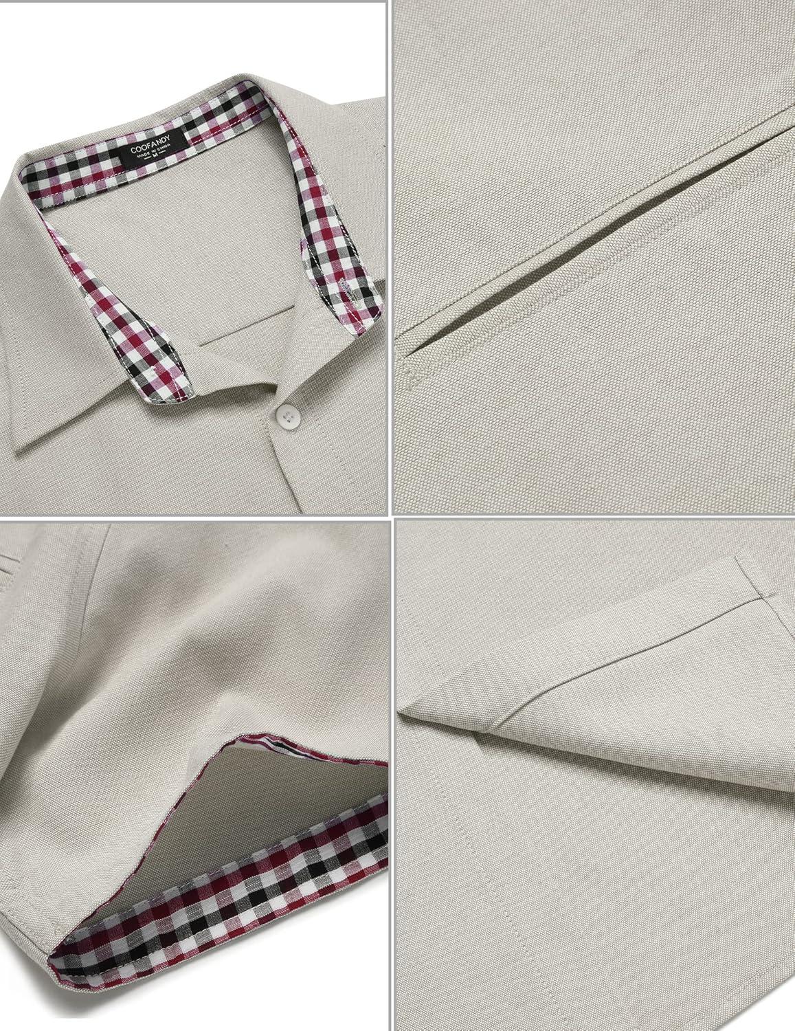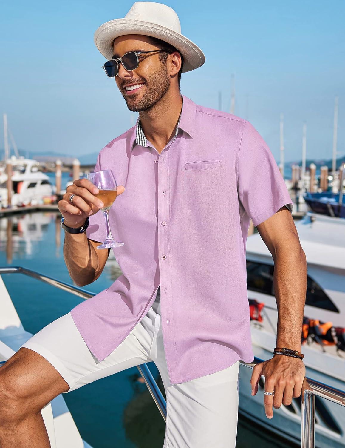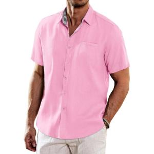 • COOFANDY Men’s Casual Linen Shirts Short Sleeve Button Down Shirt Summer Beach Tops(Pink)