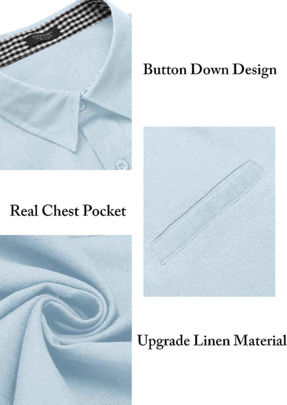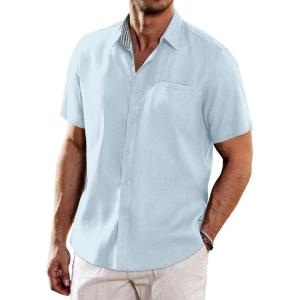• COOFANDY Men’s Casual Linen Shirts Short Sleeve Button Down Shirt Summer Beach Tops(Sky Blue)