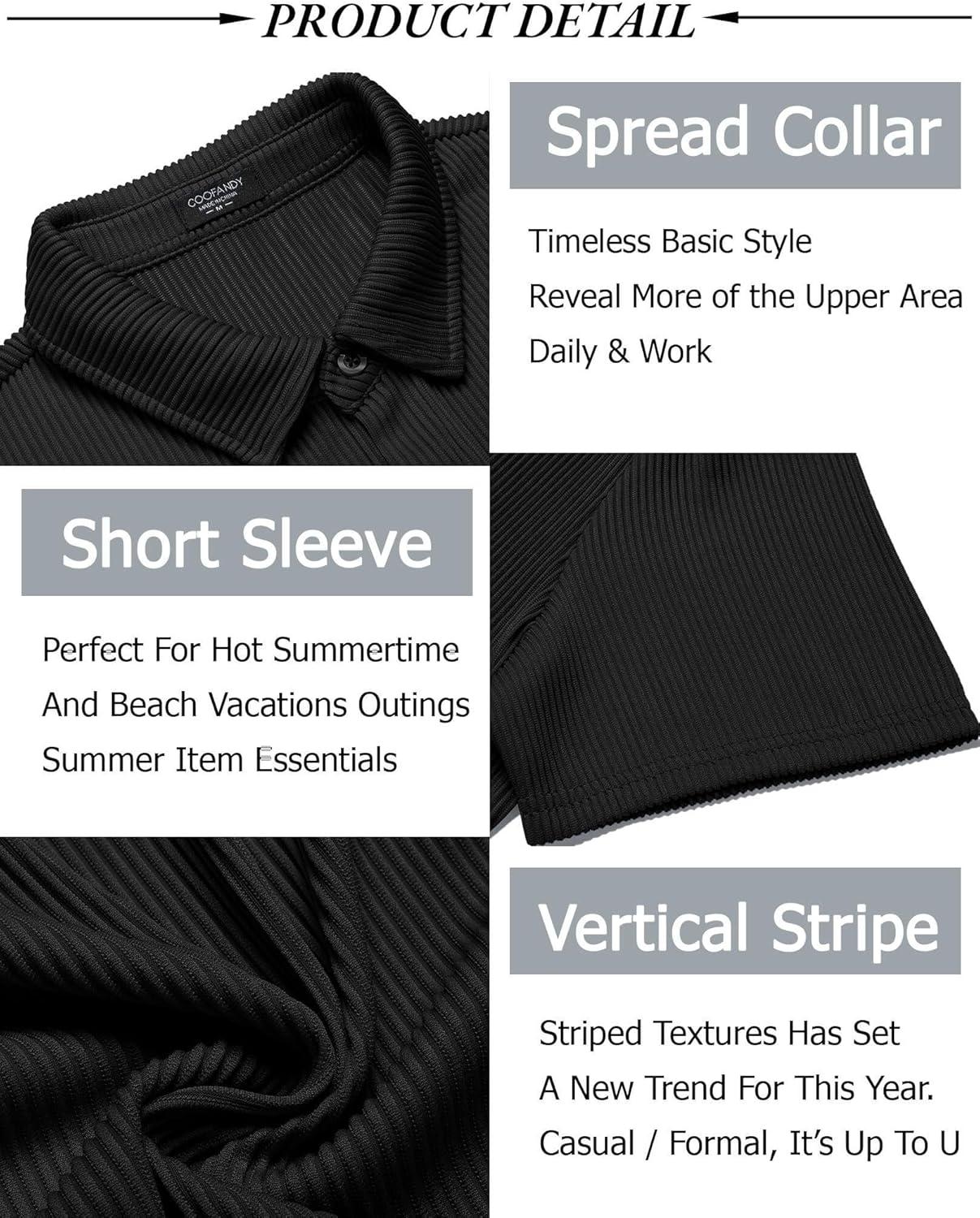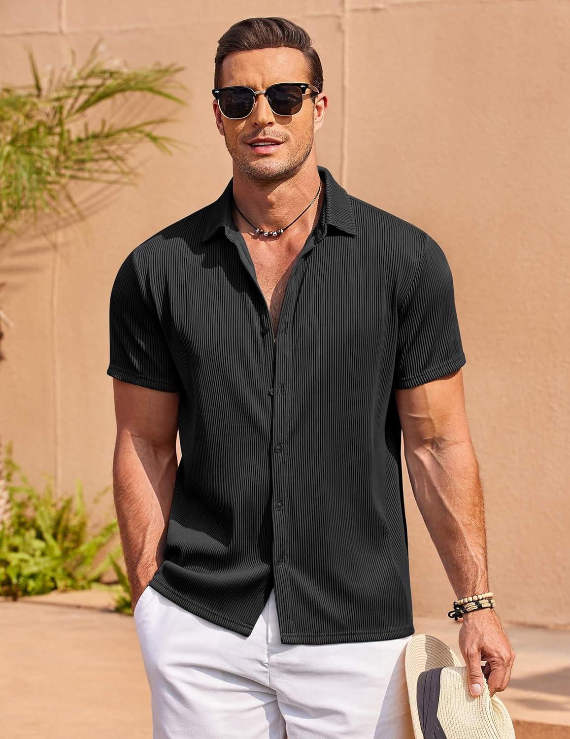 • COOFANDY Men’s Casual Shirts Short Sleeve Button Down Shirt for Men Wedding Beach Fashion Shirt(Black)