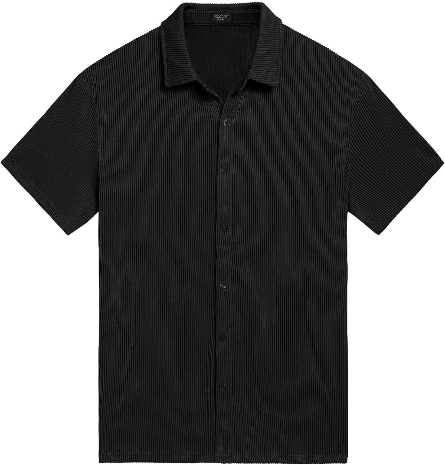 COOFANDY Men’s Casual Shirts Short Sleeve Button Down Shirt for Men Wedding Beach Fashion Shirt(Black)