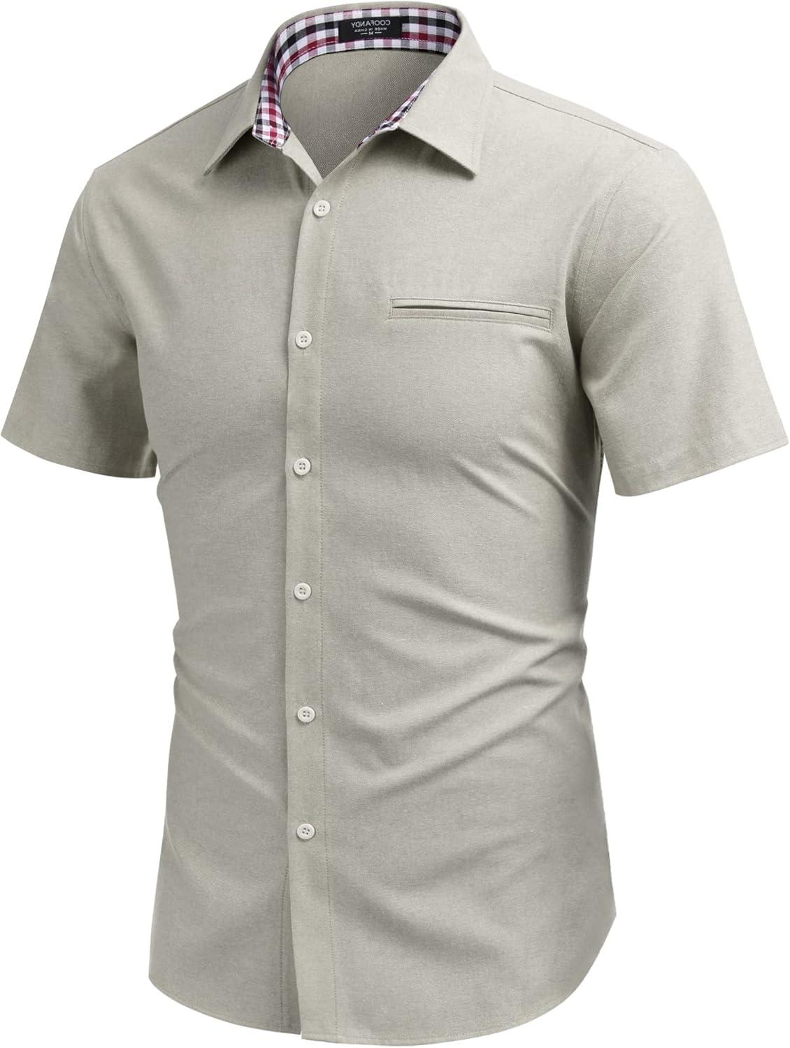 COOFANDY Men’s Casual Shirts Short Sleeve Button Down Shirt for Men Wedding Beach Fashion Shirt(Light Khaki)