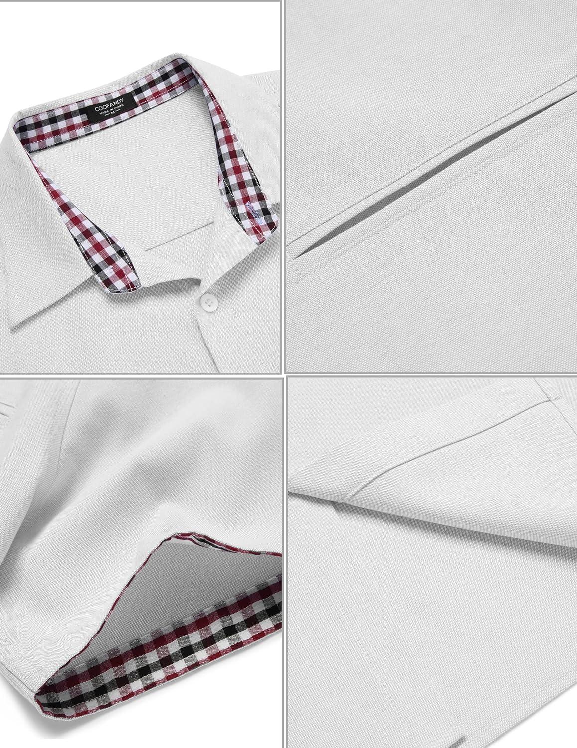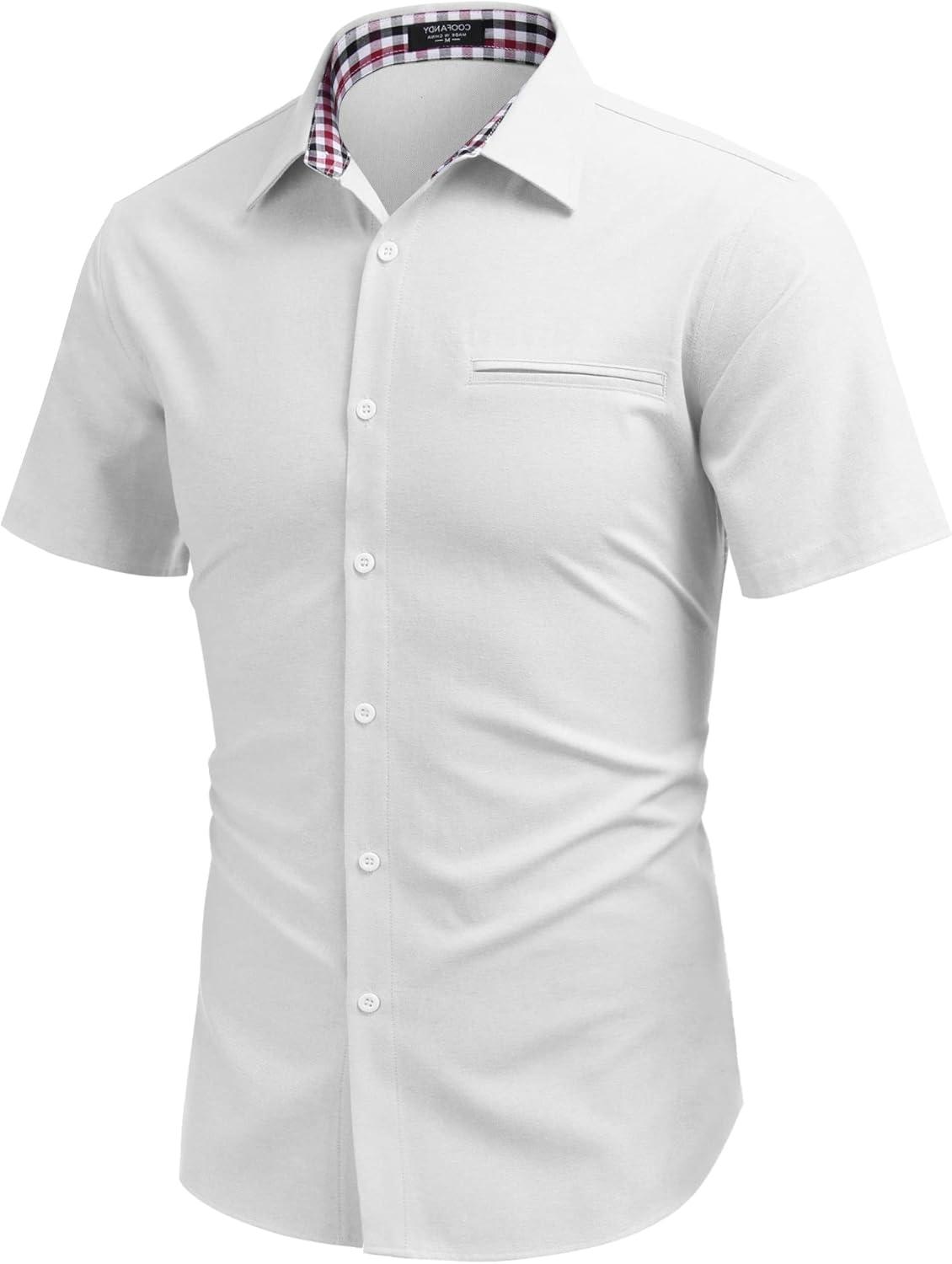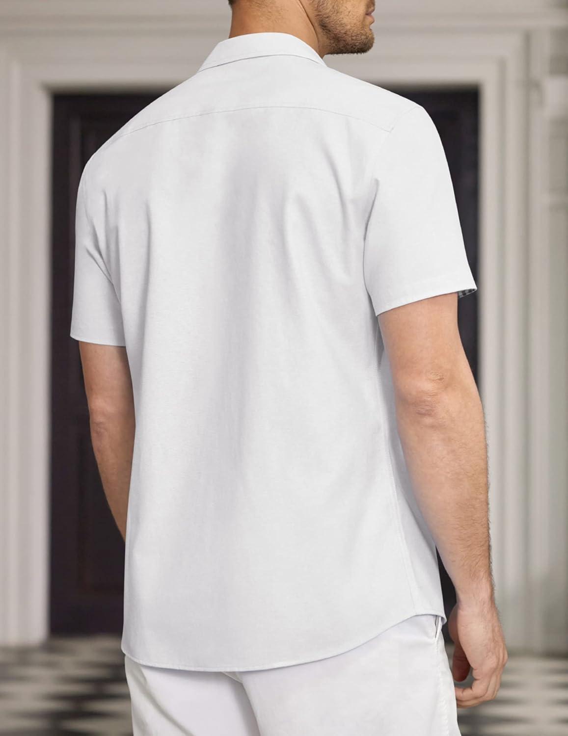 • COOFANDY Men’s Casual Linen Shirts Short Sleeve Button Down Shirt Summer Beach Tops(White)