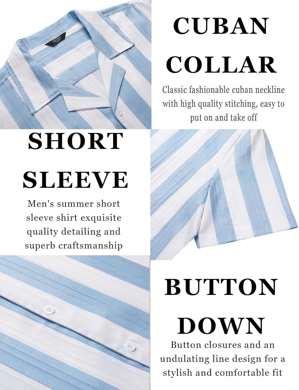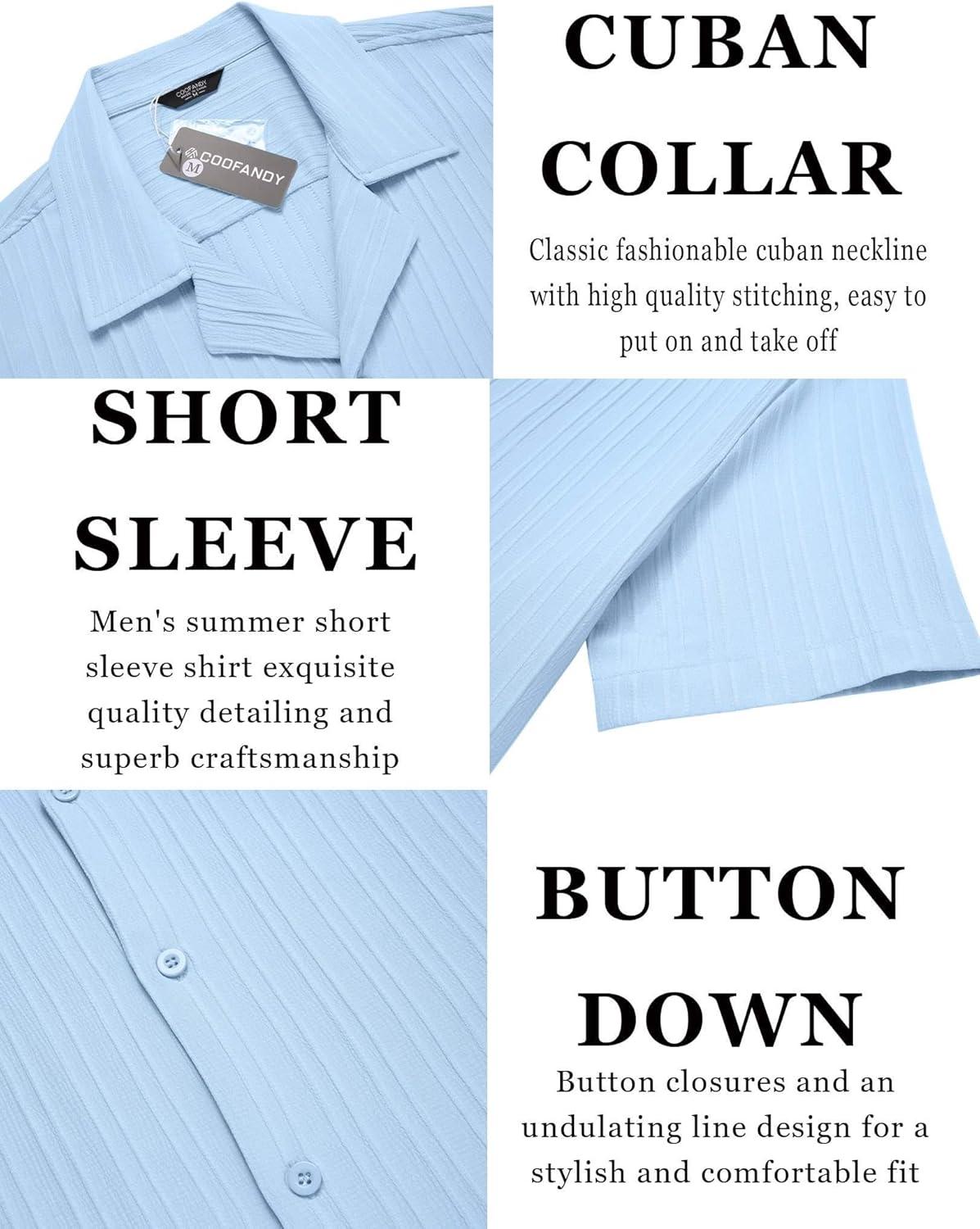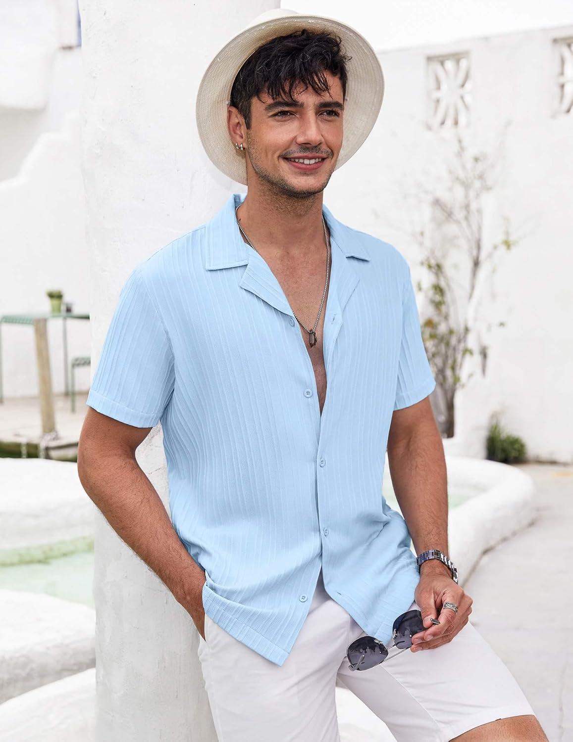 COOFANDY Men’s Casual Shirts Short Sleeve Button Down Shirt for Men Wedding Beach Fashion Shirt(Clear Blue)