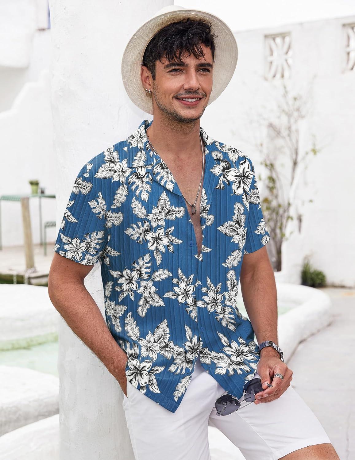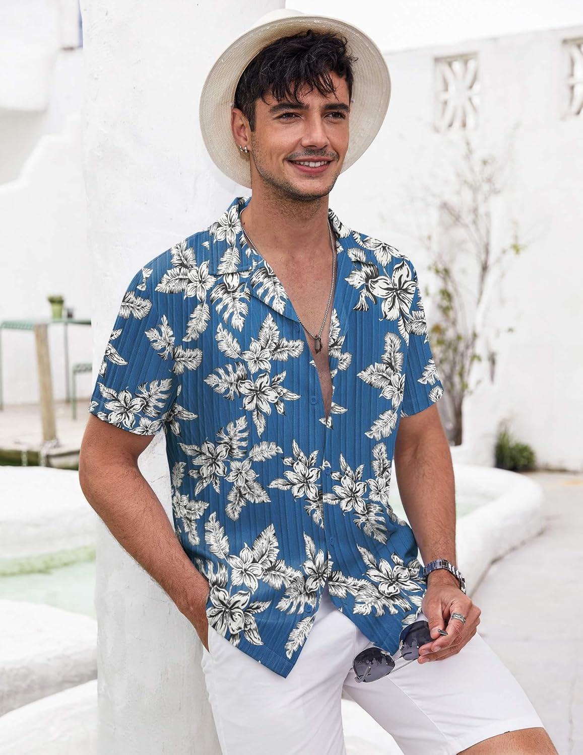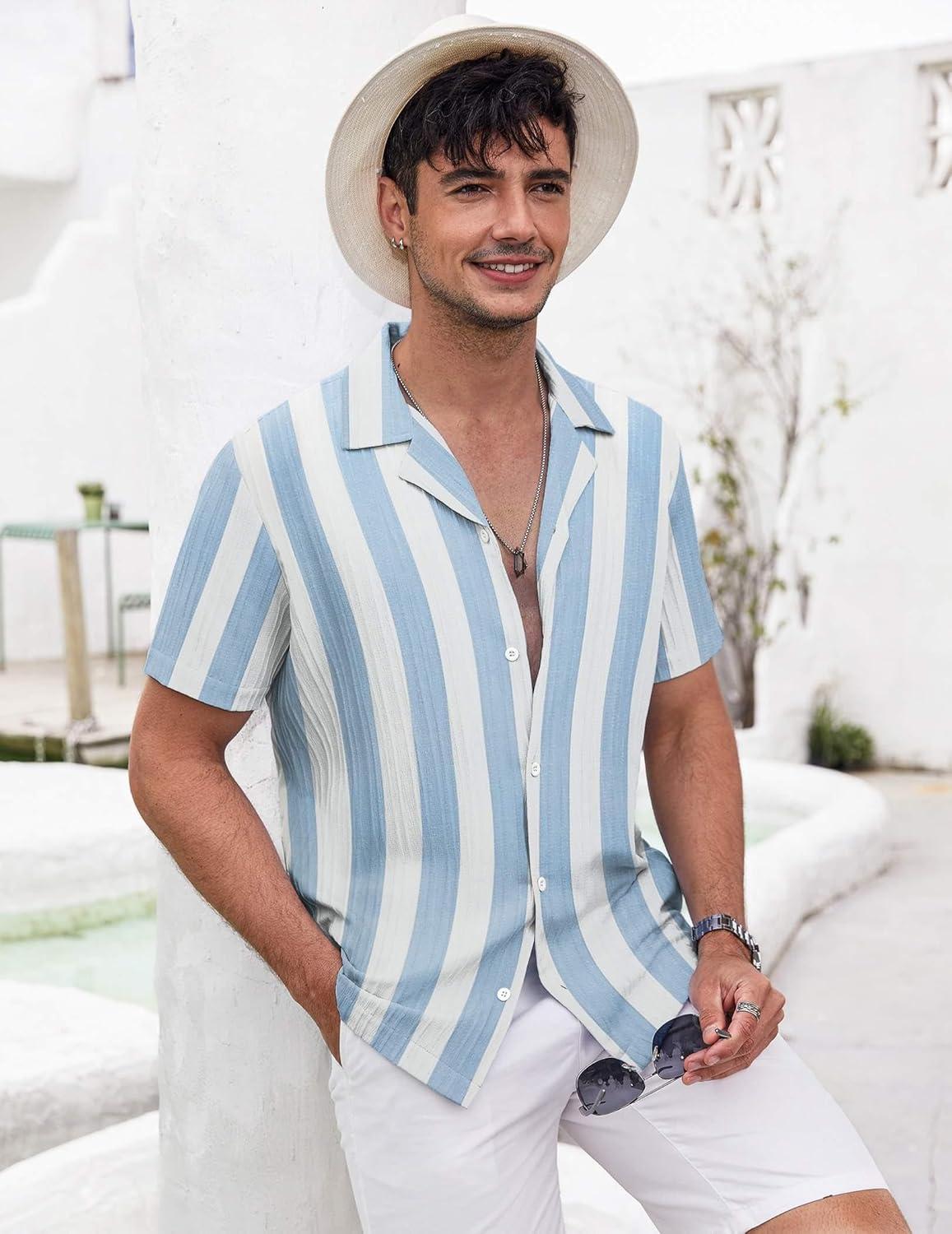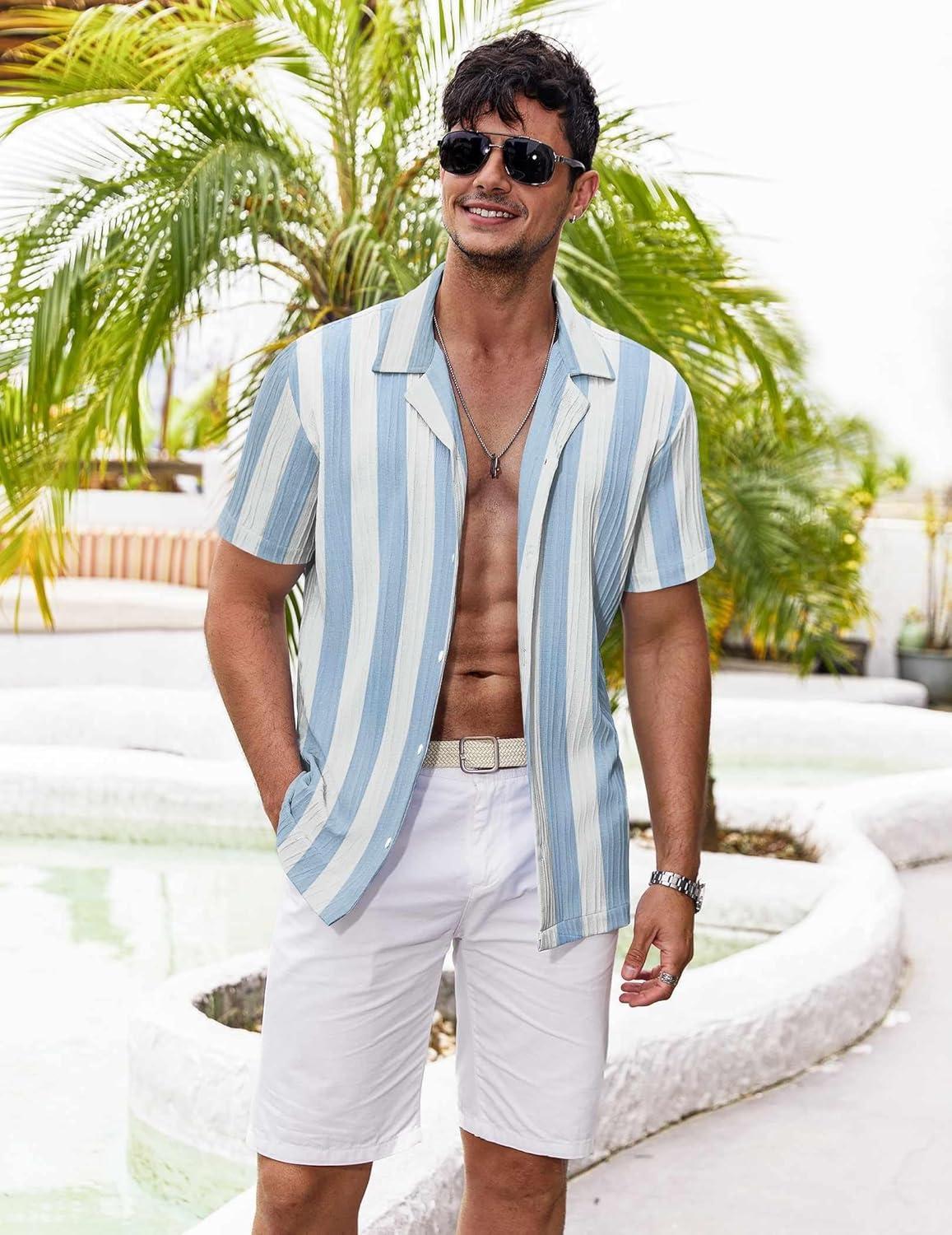 COOFANDY Men’s Casual Shirts Short Sleeve Button Down Shirt for Men Wedding Beach Fashion Shirt(Clear Blue)