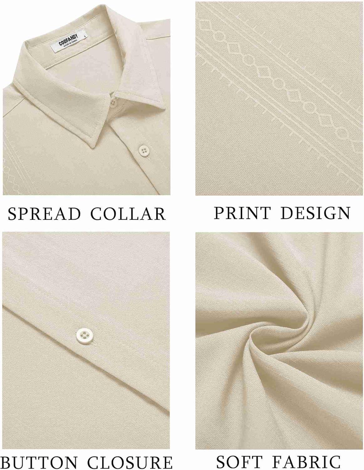 COOFANDY Men’s Cuban Guayabera Shirt Short Sleeve Button Down Shirts Casual Summer Beach Shirts(Beige)