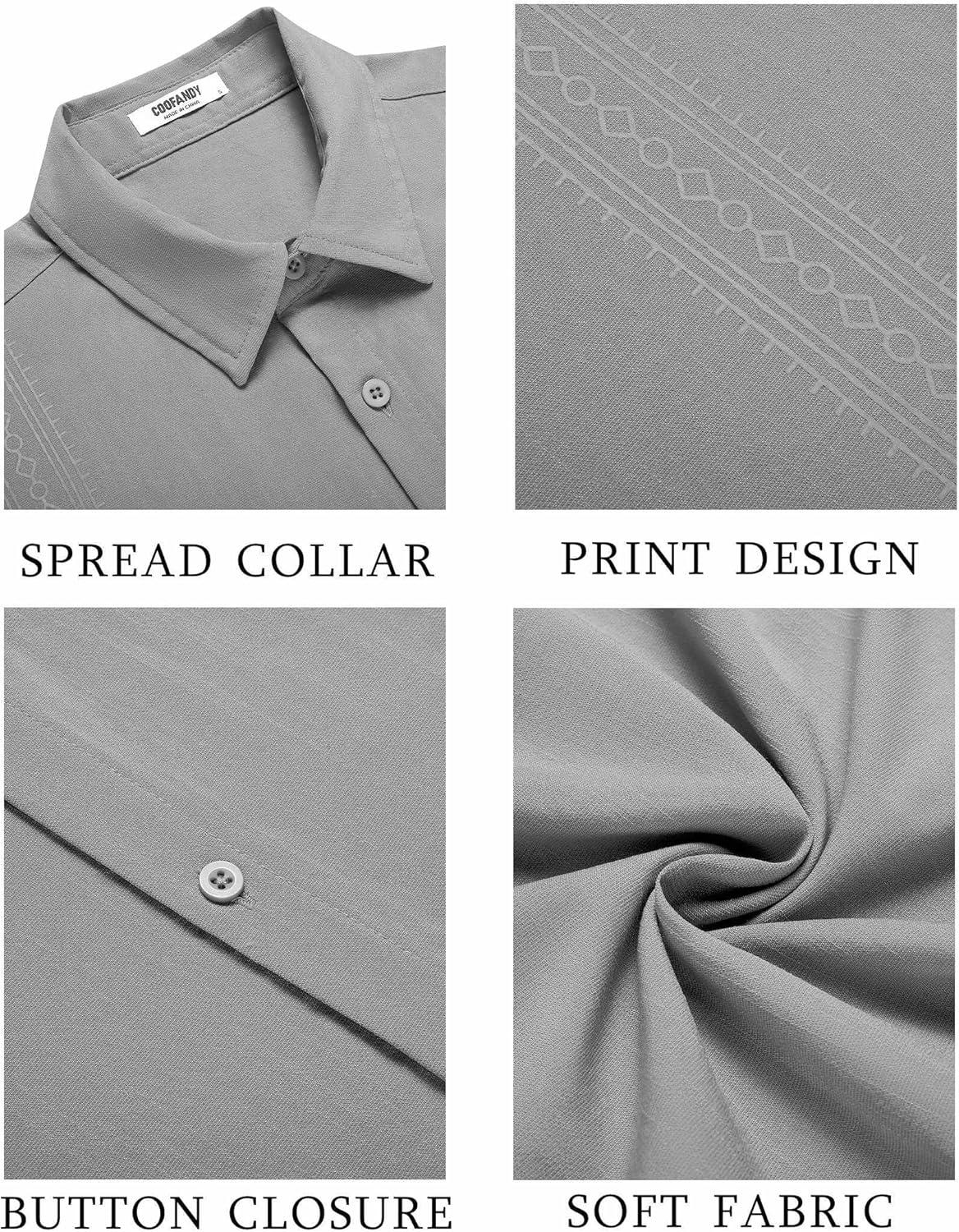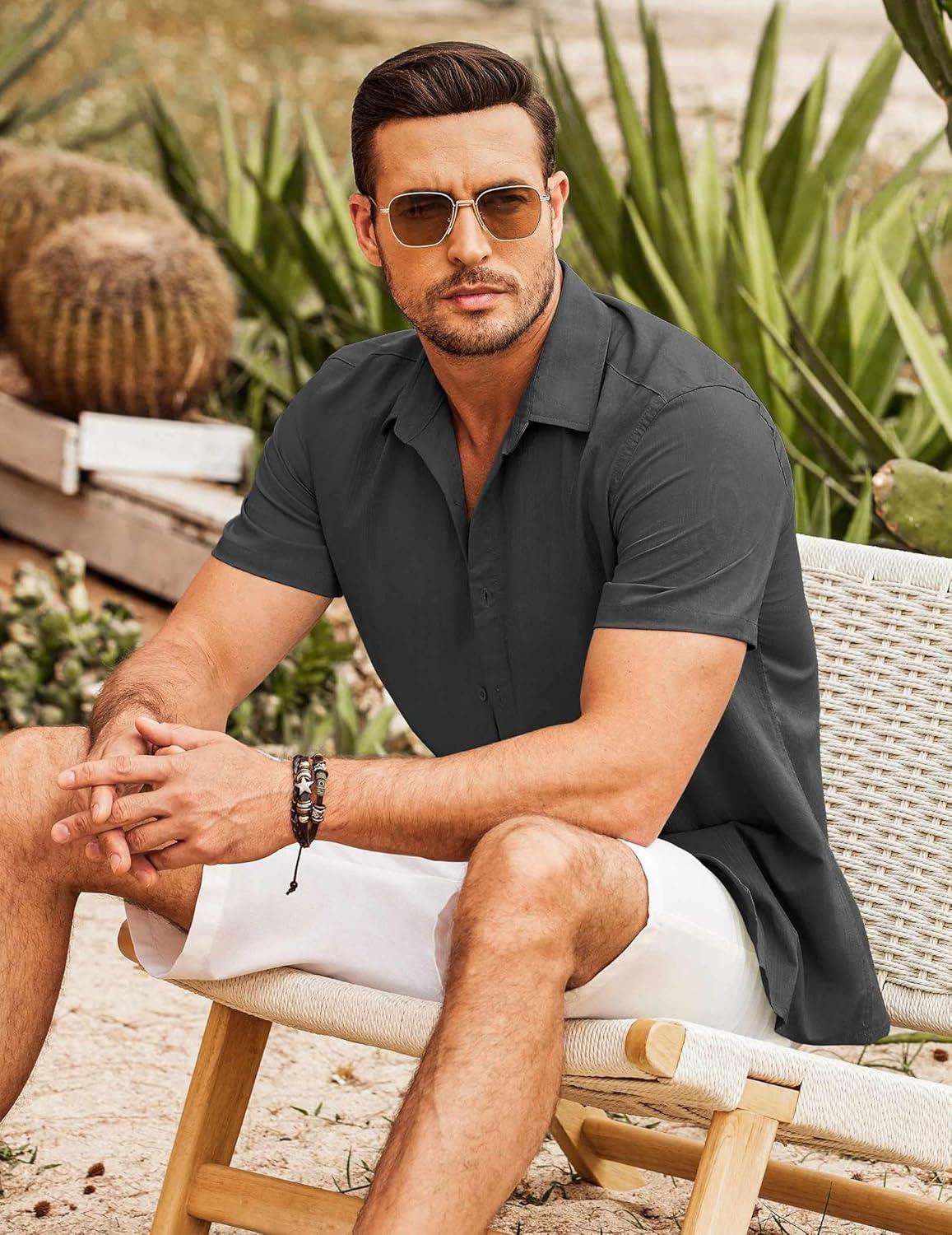 COOFANDY Men’s Cuban Guayabera Shirt Short Sleeve Button Down Shirts Casual Summer Beach Shirts(Dark Grey)