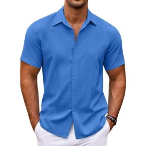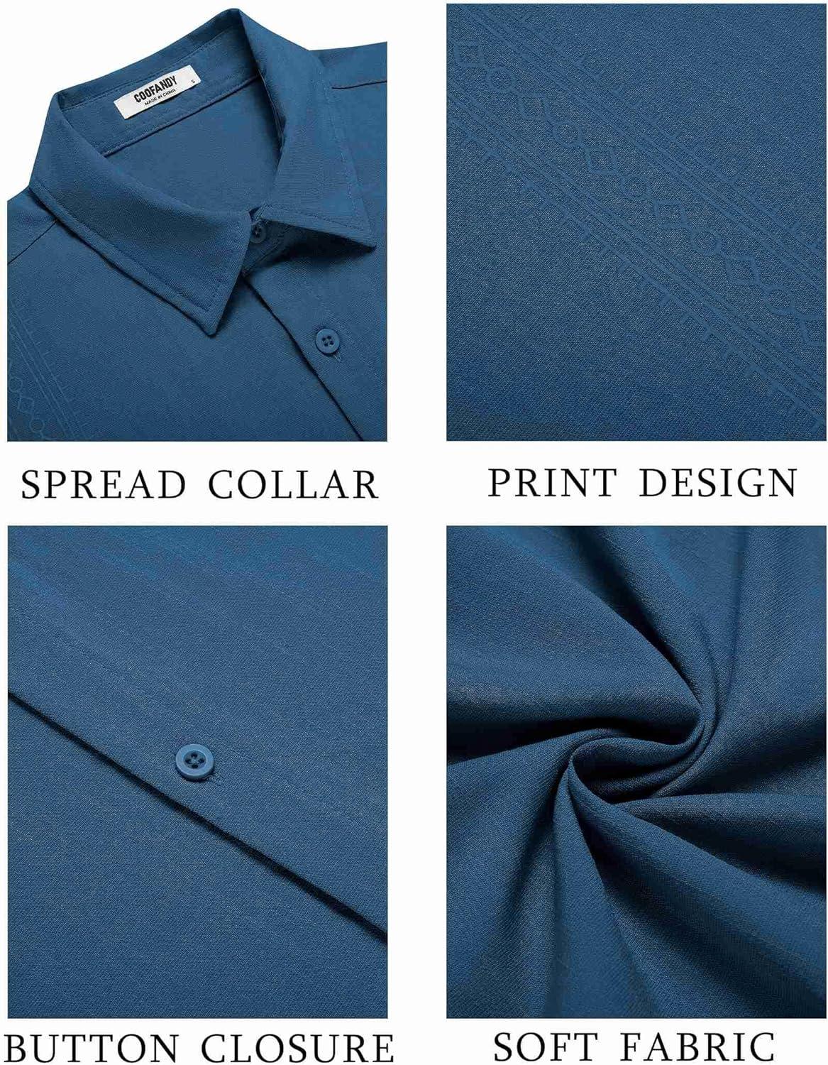 COOFANDY Men’s Cuban Guayabera Shirt Short Sleeve Button Down Shirts Casual Summer Beach Shirts(Blue)