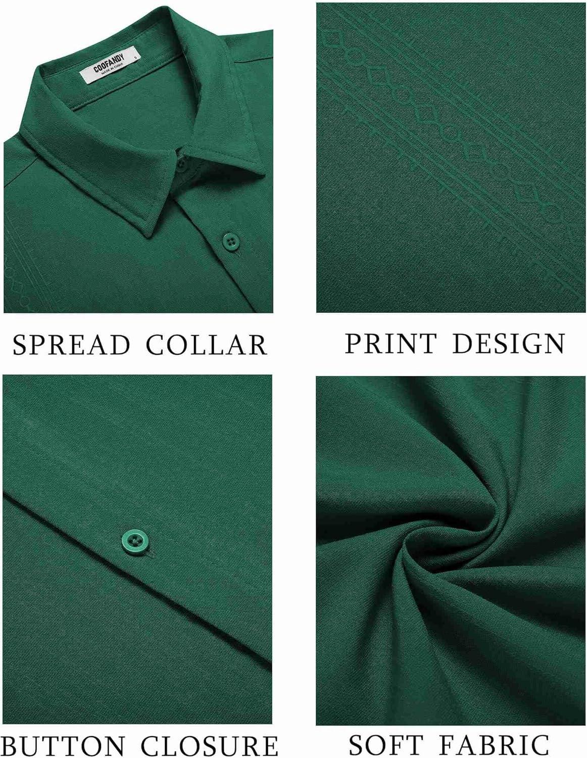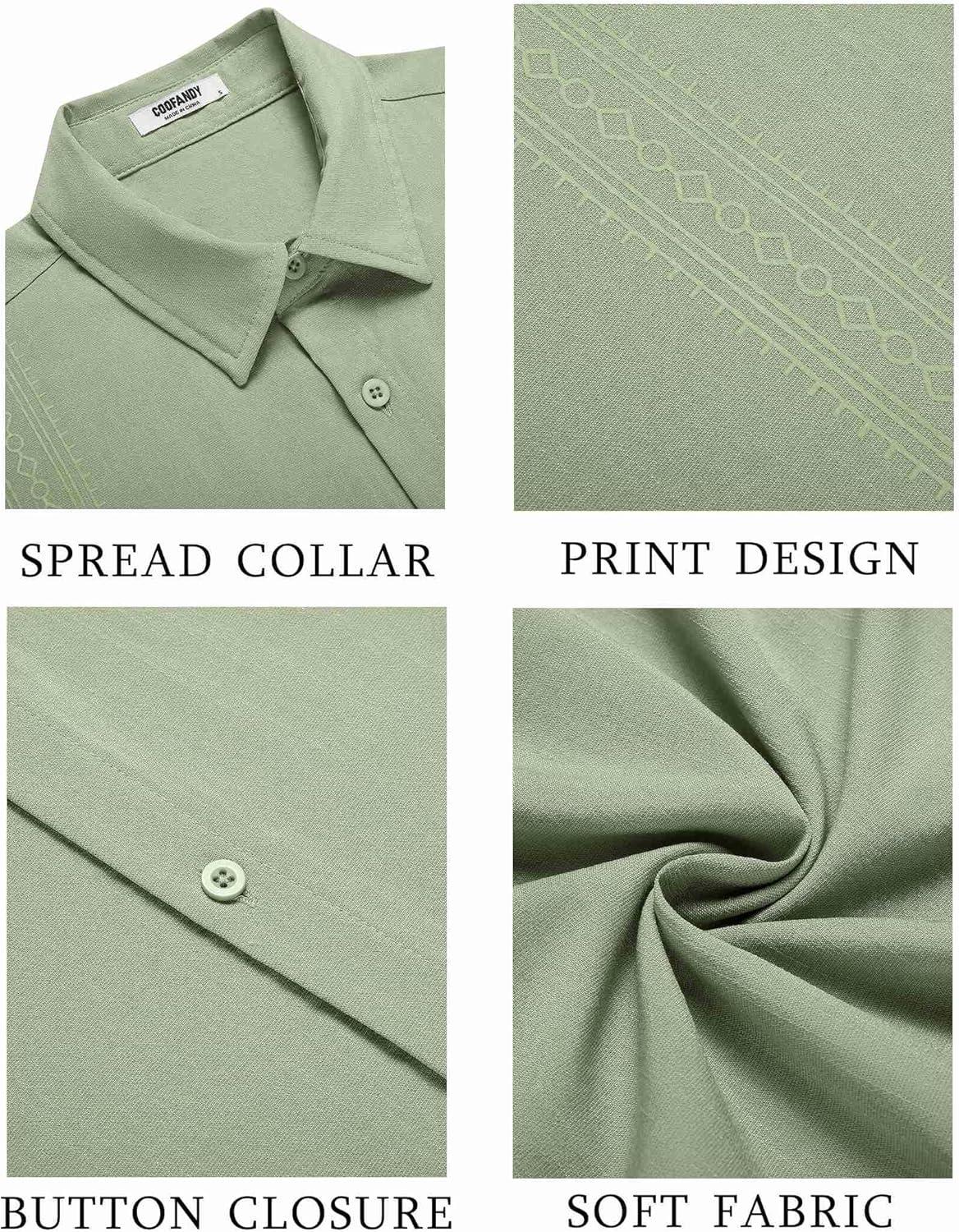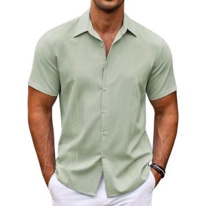 COOFANDY Men’s Cuban Guayabera Shirt Short Sleeve Button Down Shirts Casual Summer Beach Shirts(Green)