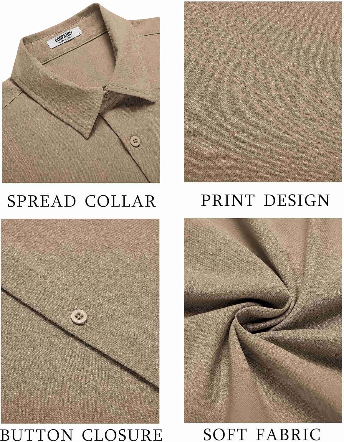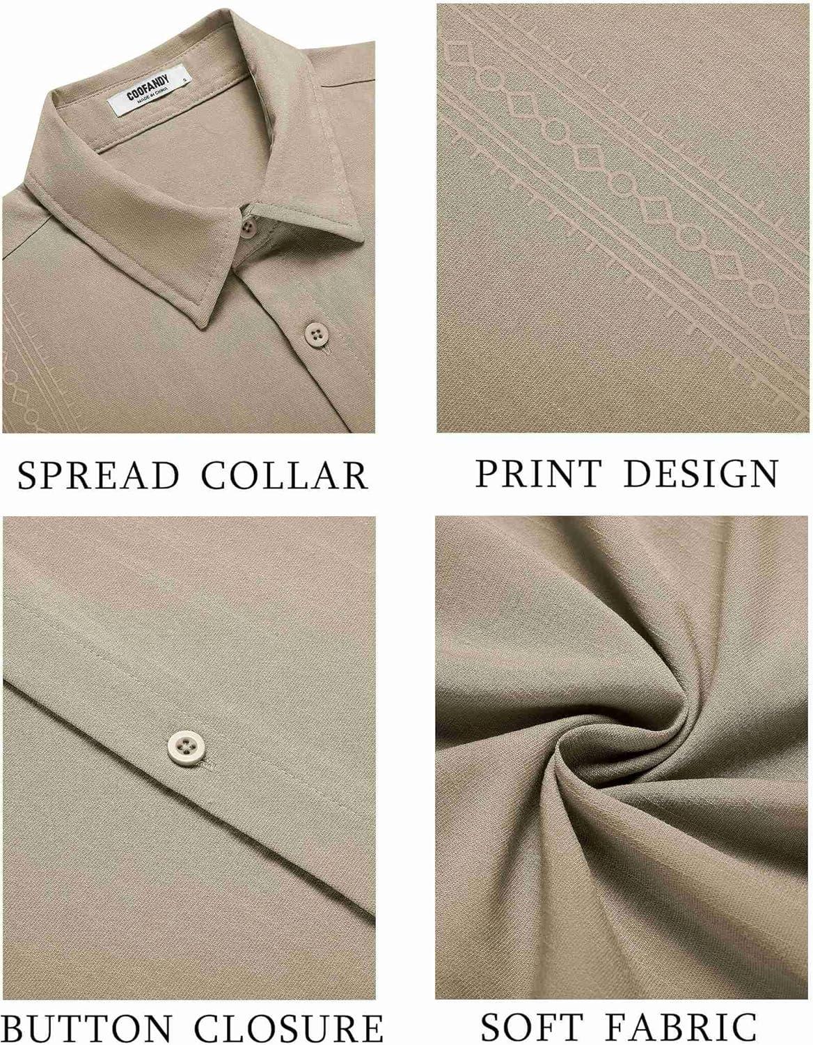 COOFANDY Men’s Cuban Guayabera Shirt Short Sleeve Button Down Shirts Casual Summer Beach Shirts(Khaki)