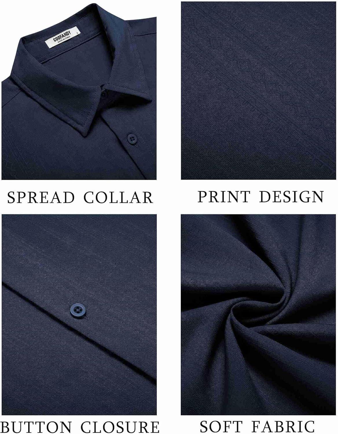 COOFANDY Men’s Cuban Guayabera Shirt Short Sleeve Button Down Shirts Casual Summer Beach Shirts(Navy Blue)