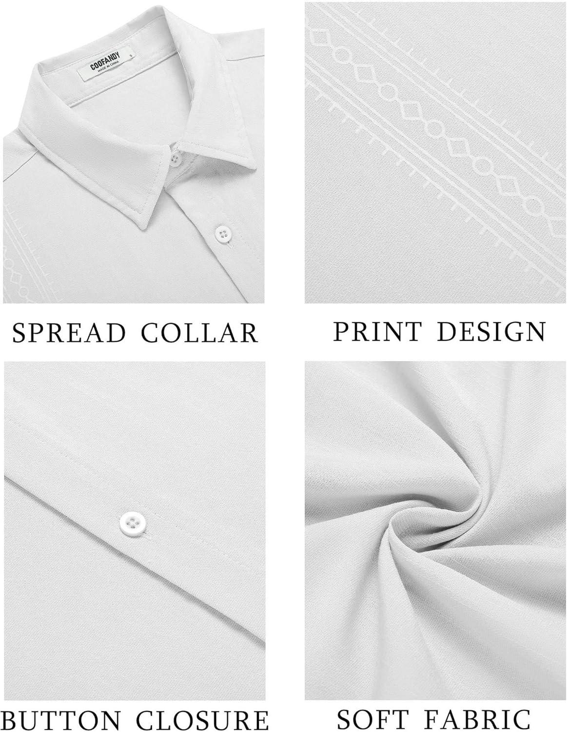 COOFANDY Men’s Cuban Guayabera Shirt Short Sleeve Button Down Shirts Casual Summer Beach Shirts(White)