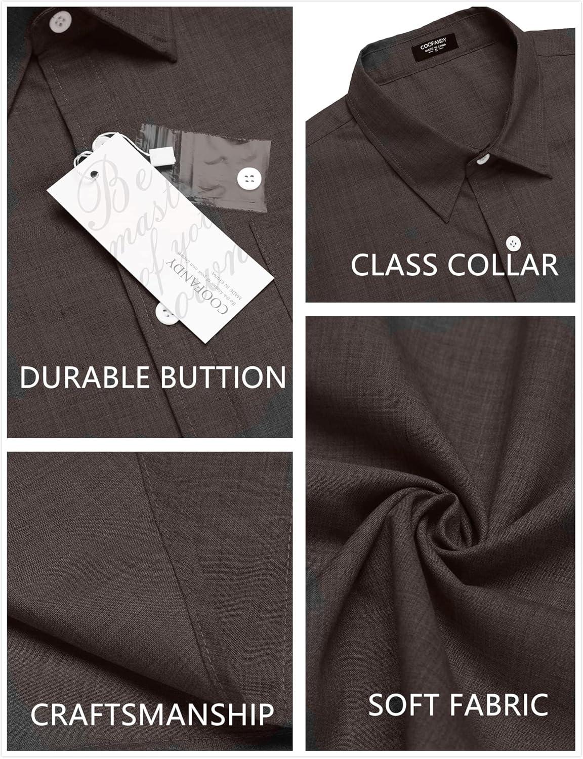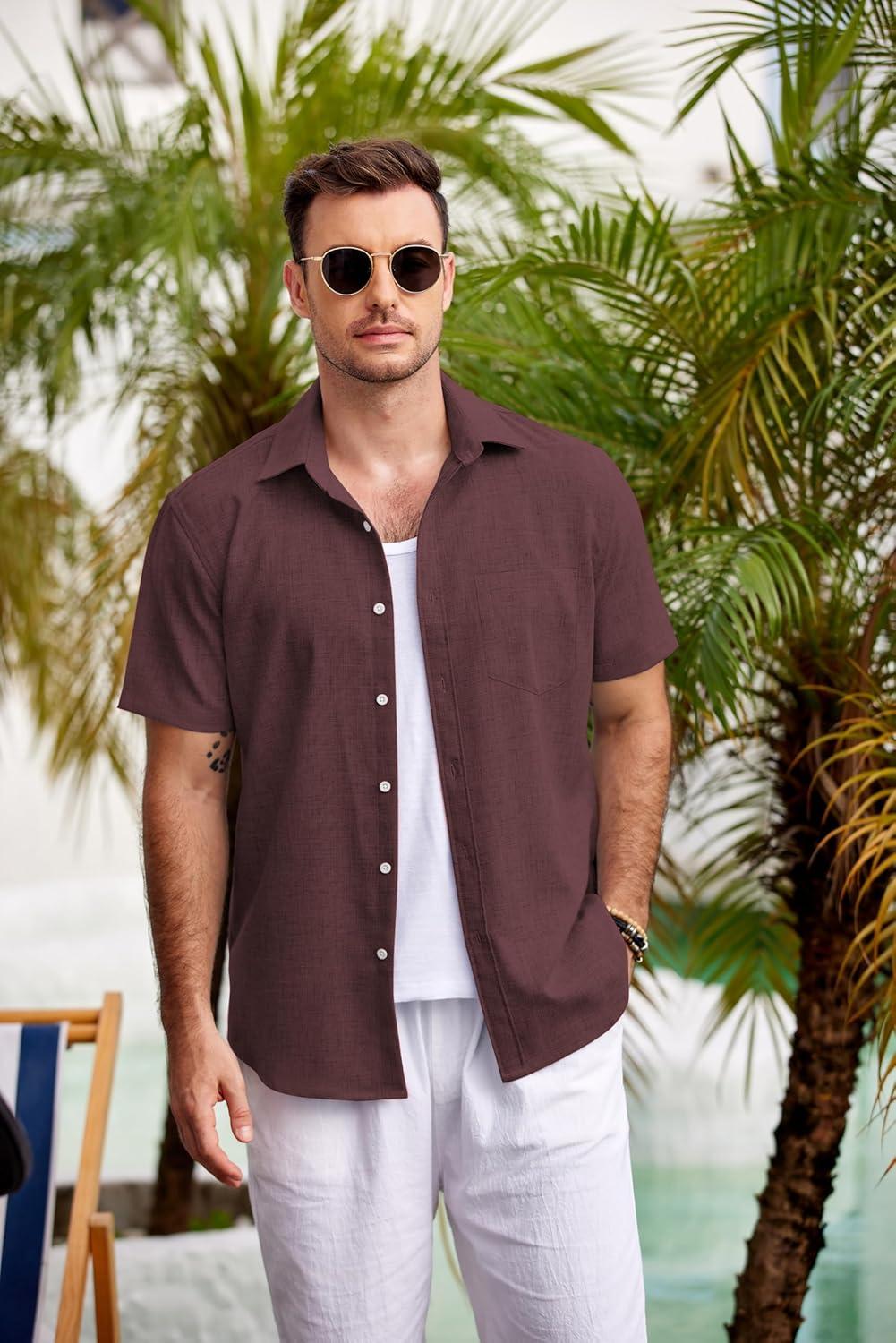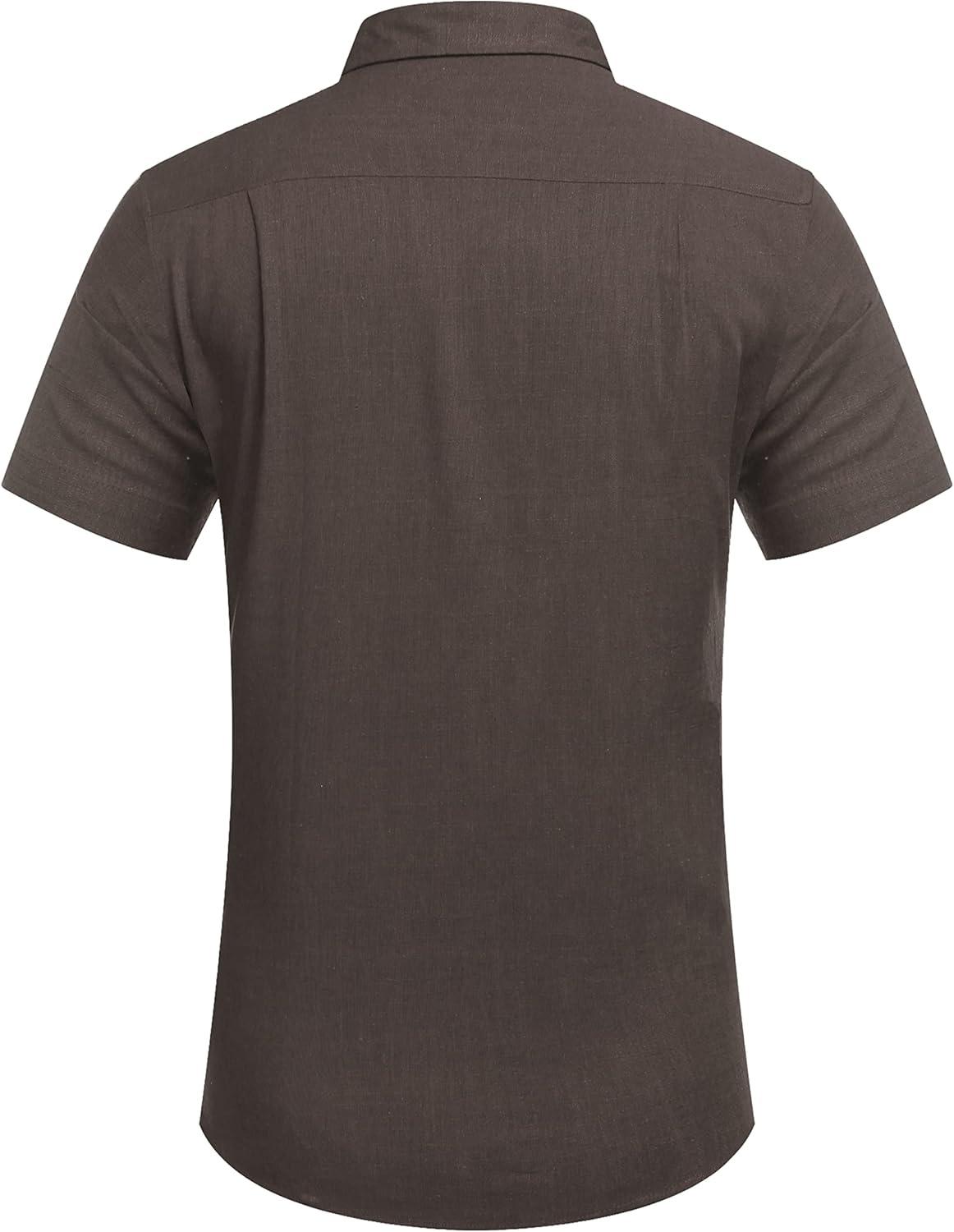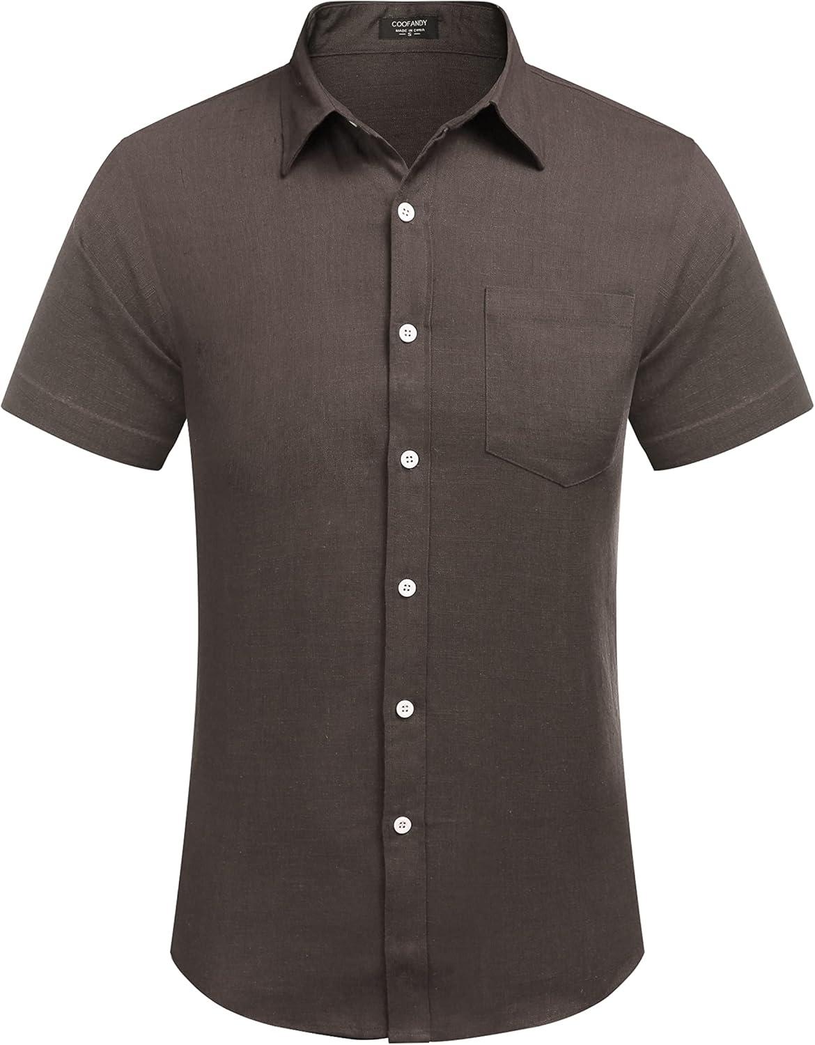 COOFANDY Men’s Casual Button Down Shirts Short Sleeve Linen Shirts Summer Beach Dress Shirt(Linen – Coffe)