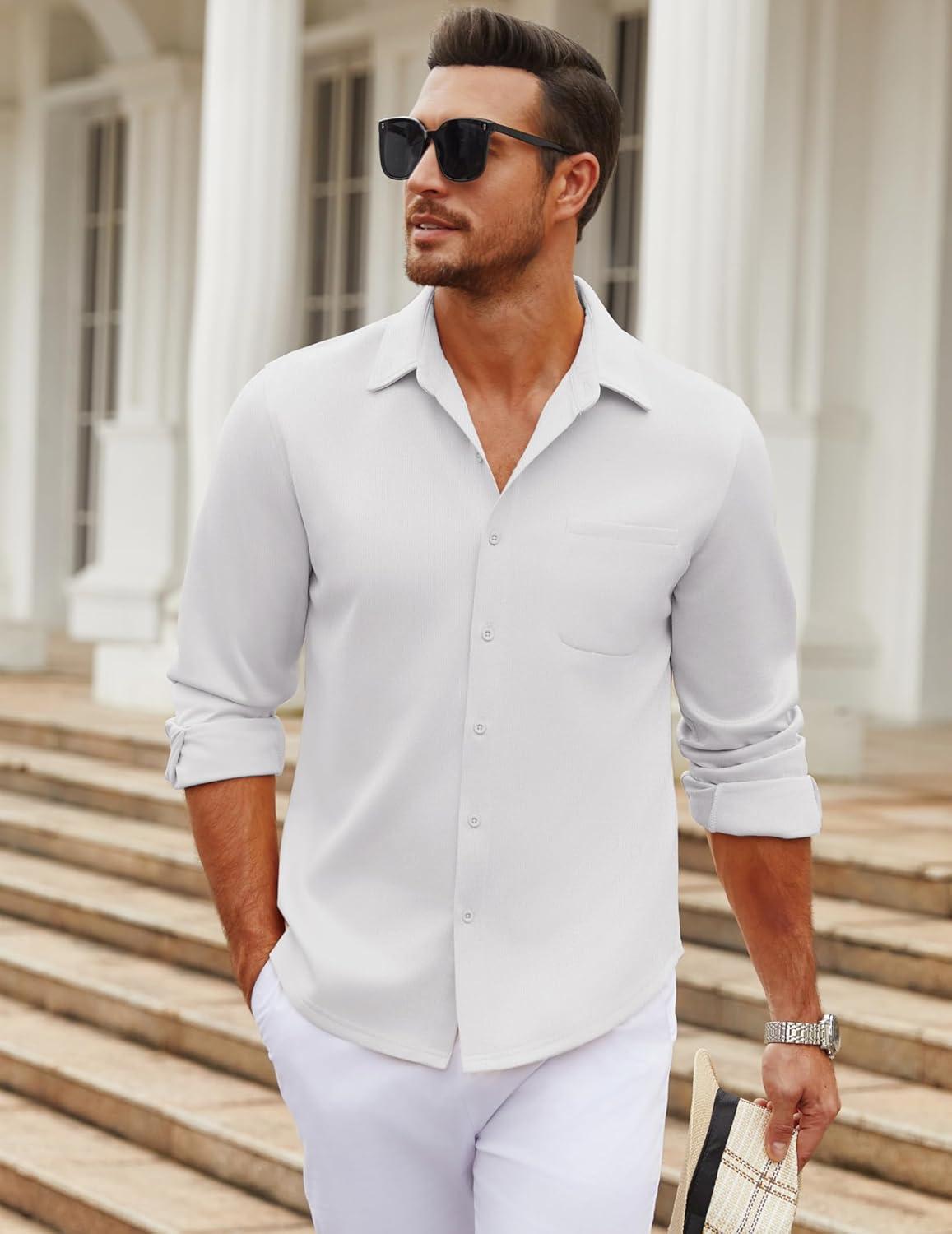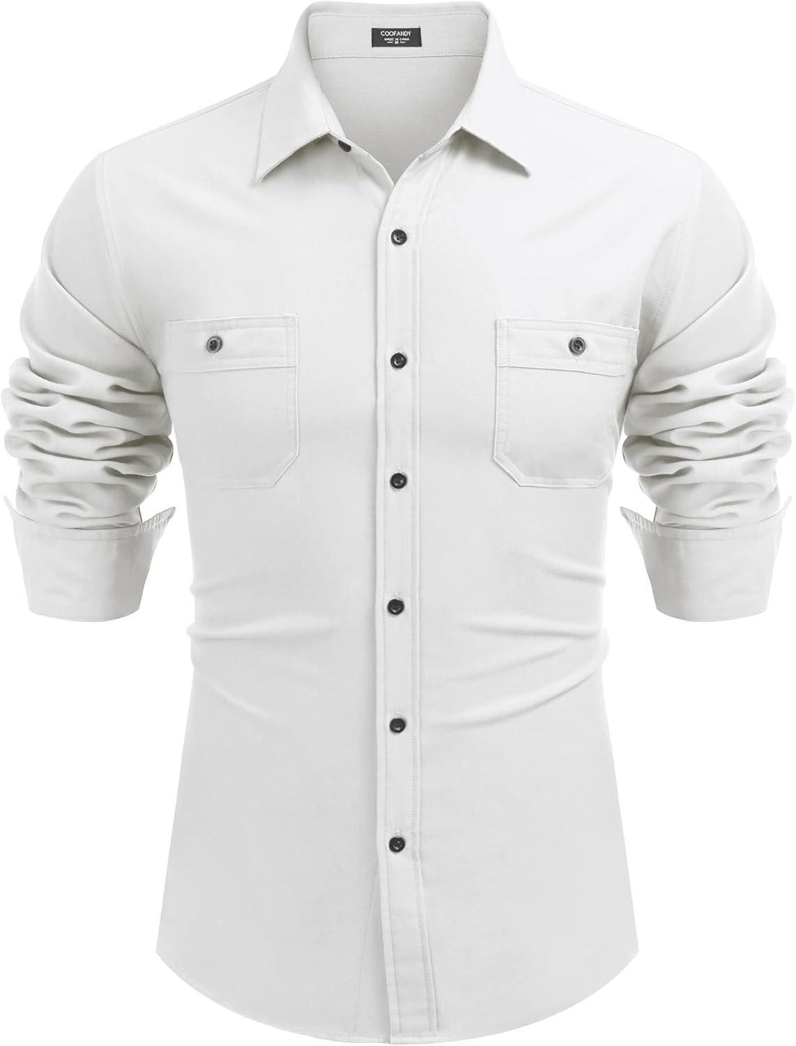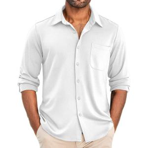 COOFANDY Mens Casual Button Down Shirts Long Sleeve Wrinkle Free Untucked Dress Shirts(White)