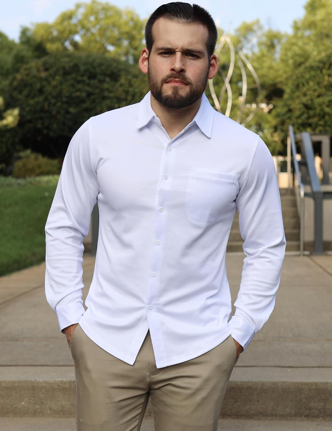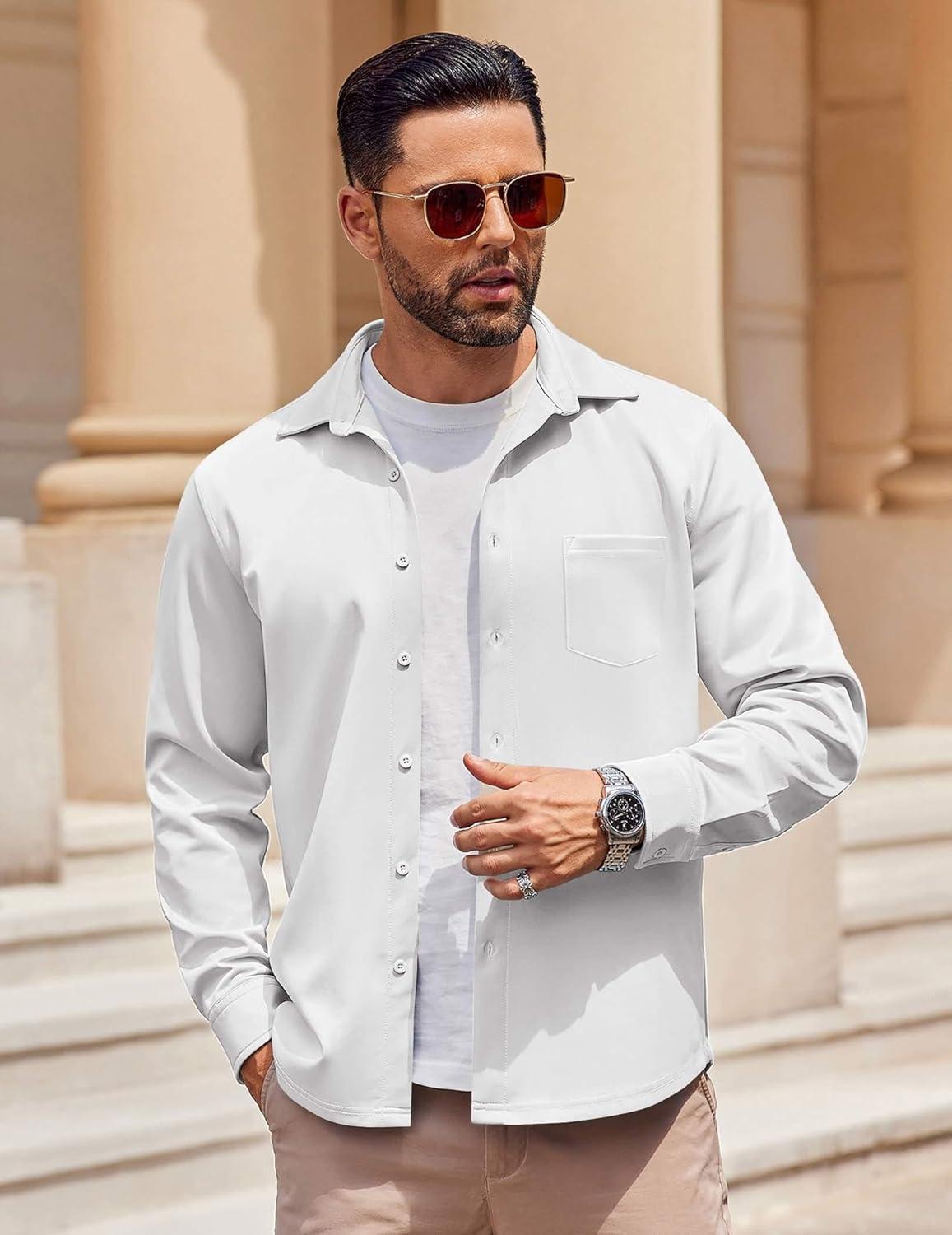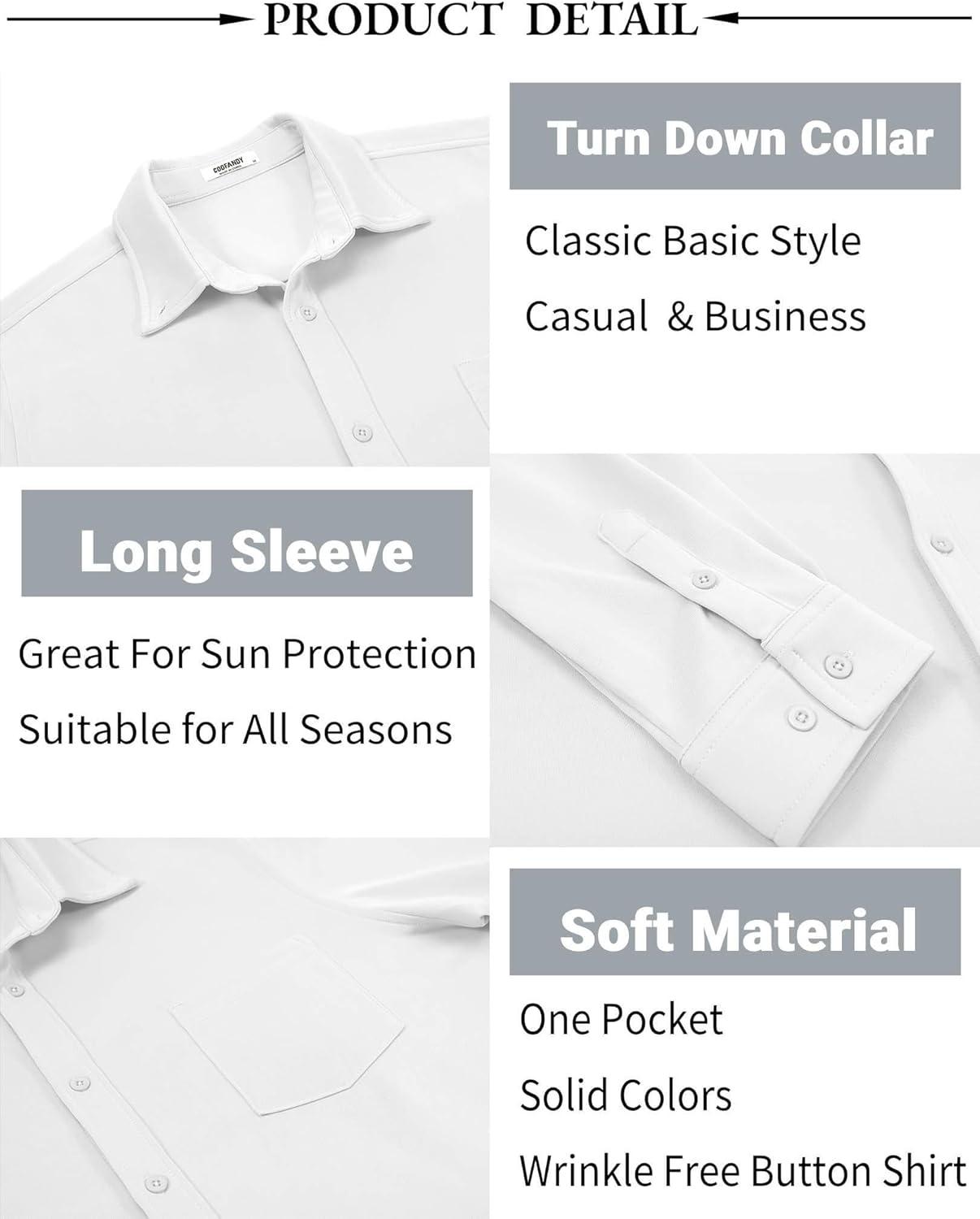 COOFANDY Men’s Long Sleeve Wrinkle Free Shirt Casual Button Down Shirts Stretch Dress Shirt with Pocket(White)