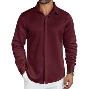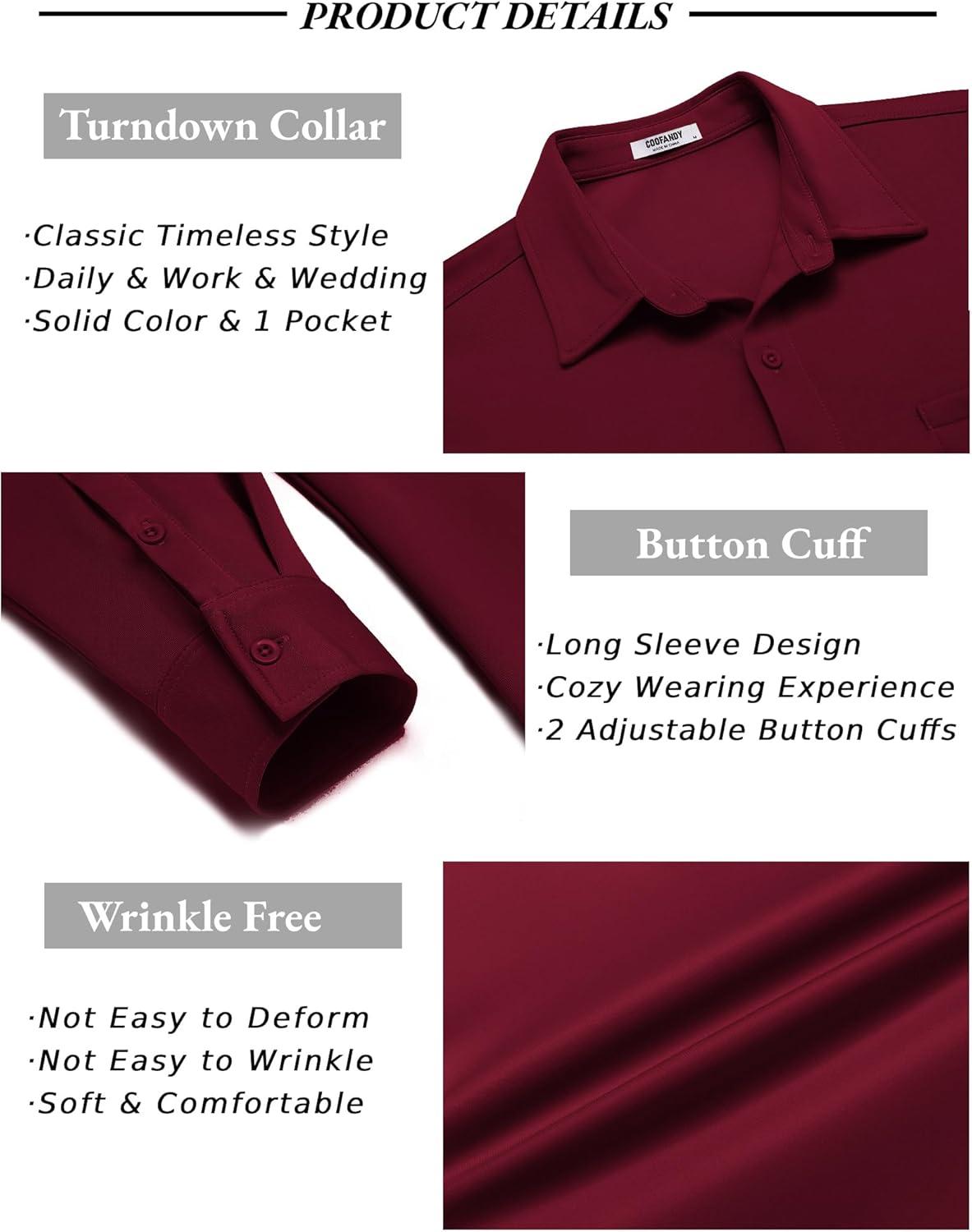 COOFANDY Men’s Wrinkle Free Shirts Casual Long Sleeve Button Down Dress Shirts(Wine Red)