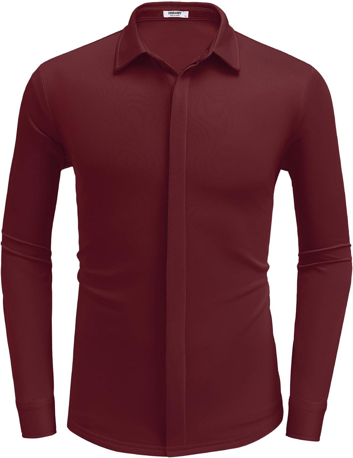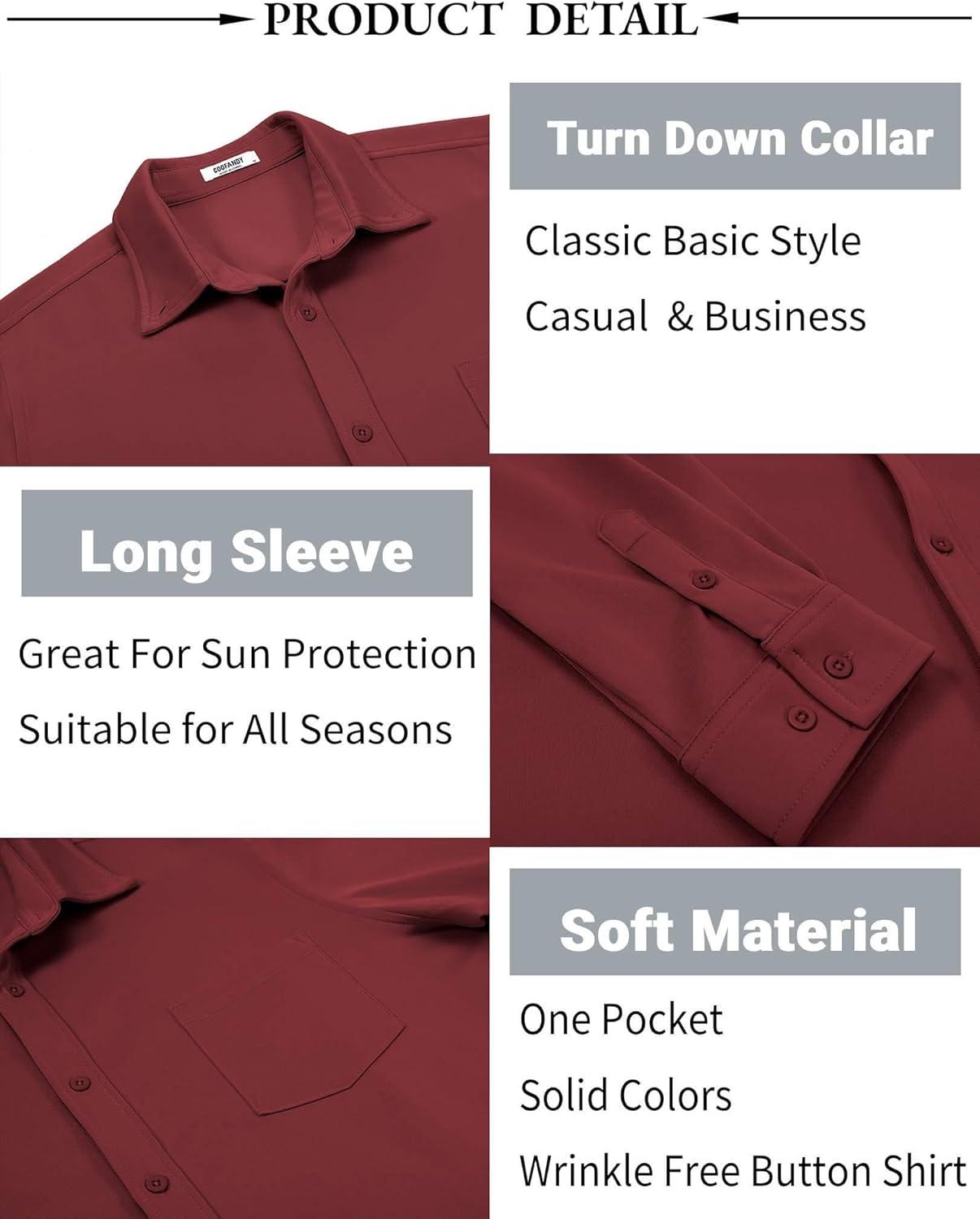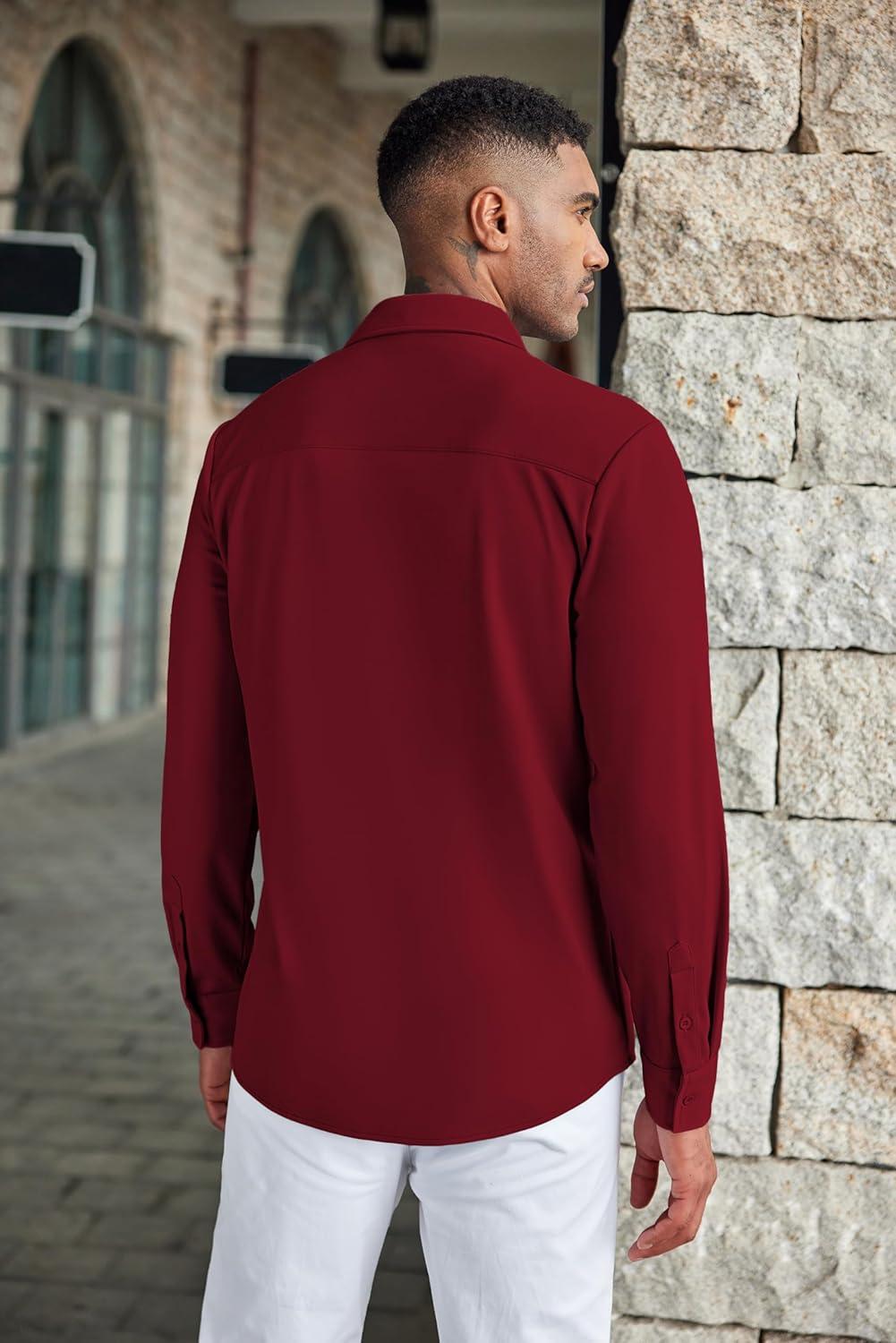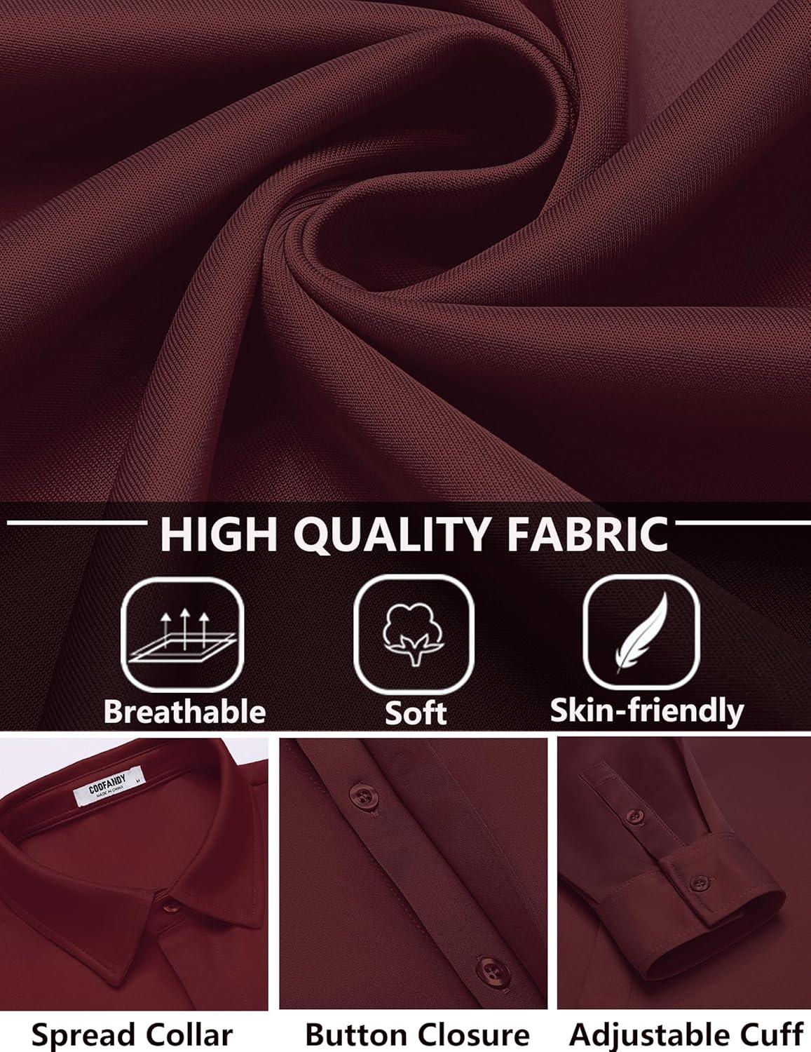 COOFANDY Mens Long Sleeve Wrinkle Free Shirts Casual Button Down Shirt Stretch Dress Shirt(Wine Red)