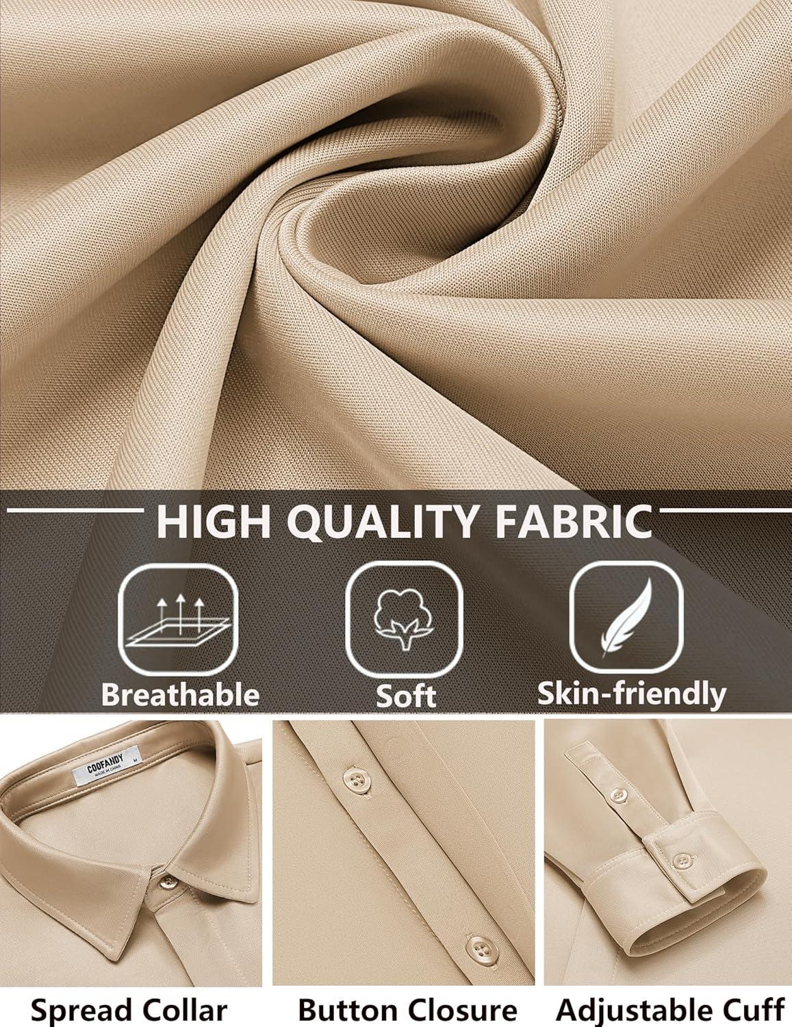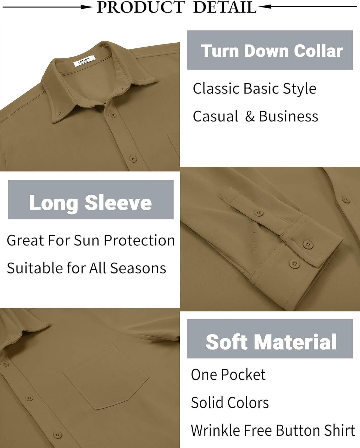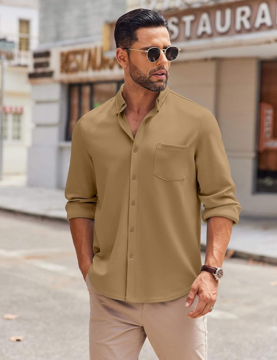 COOFANDY Mens Long Sleeve Wrinkle Free Shirts Casual Button Down Shirt Stretch Dress Shirt(Khaki)