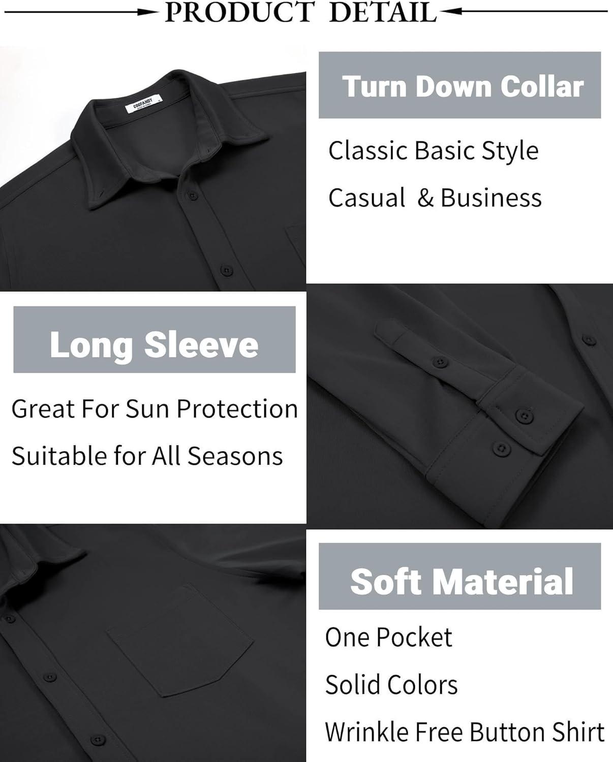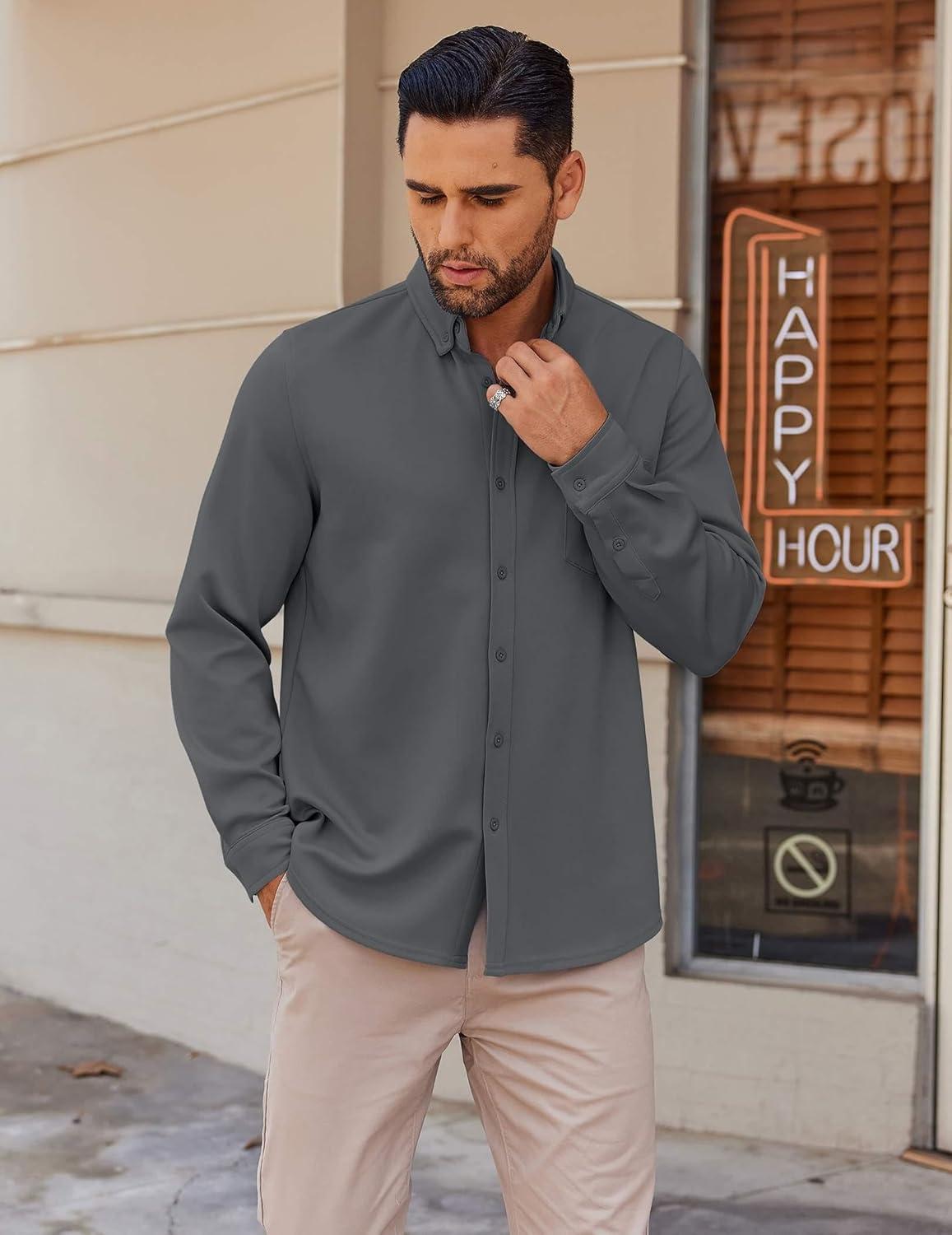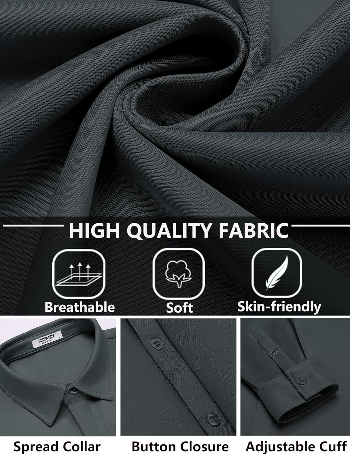 COOFANDY Mens Long Sleeve Wrinkle Free Shirts Casual Button Down Shirt Stretch Dress Shirt(Dark Grey)