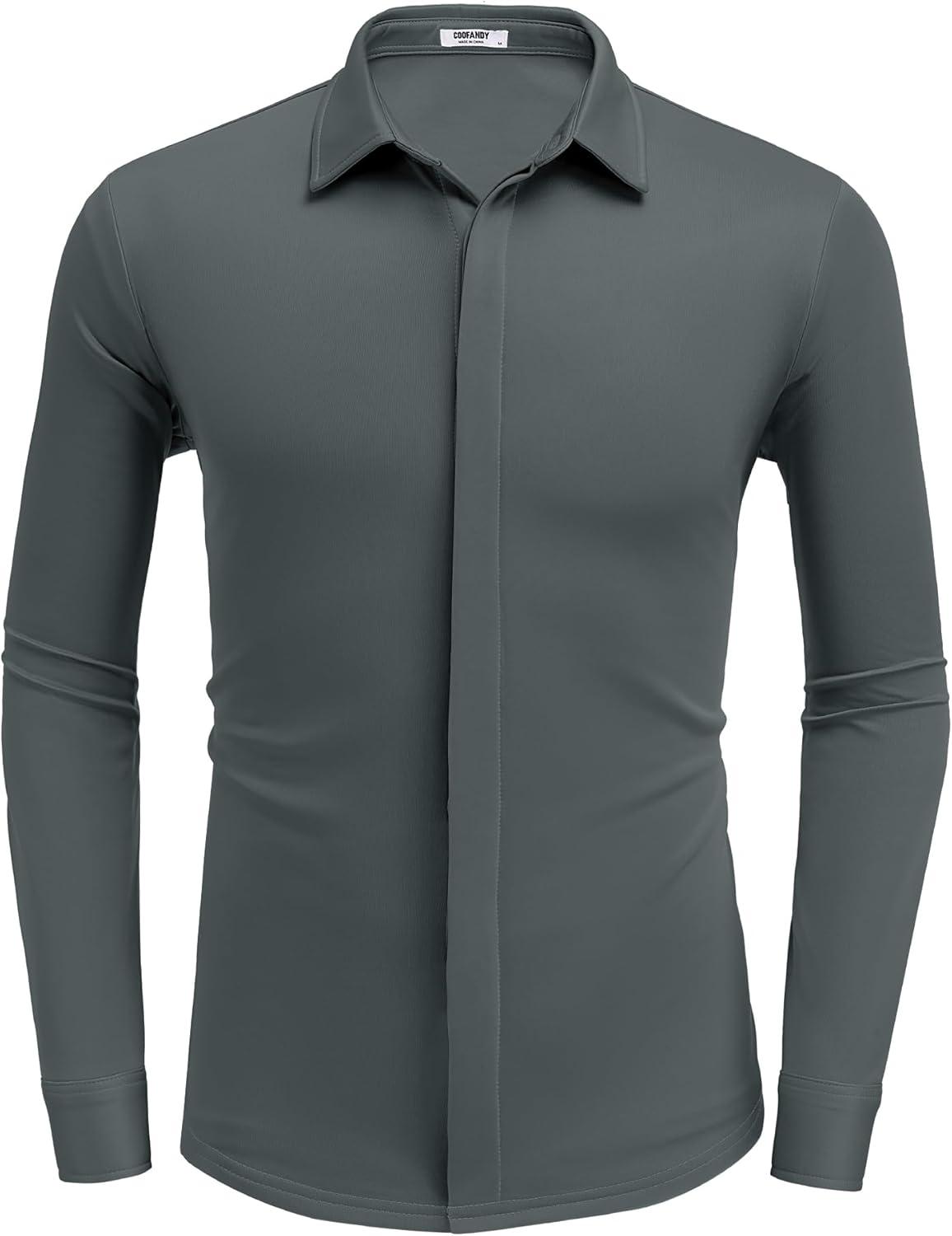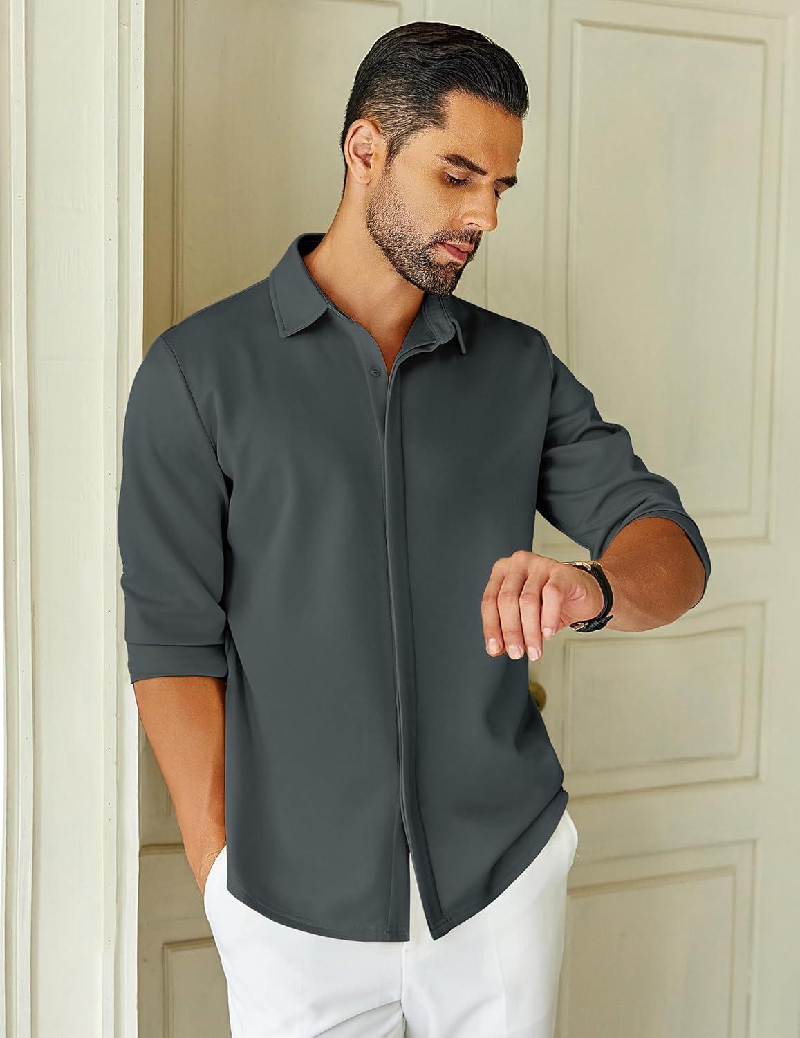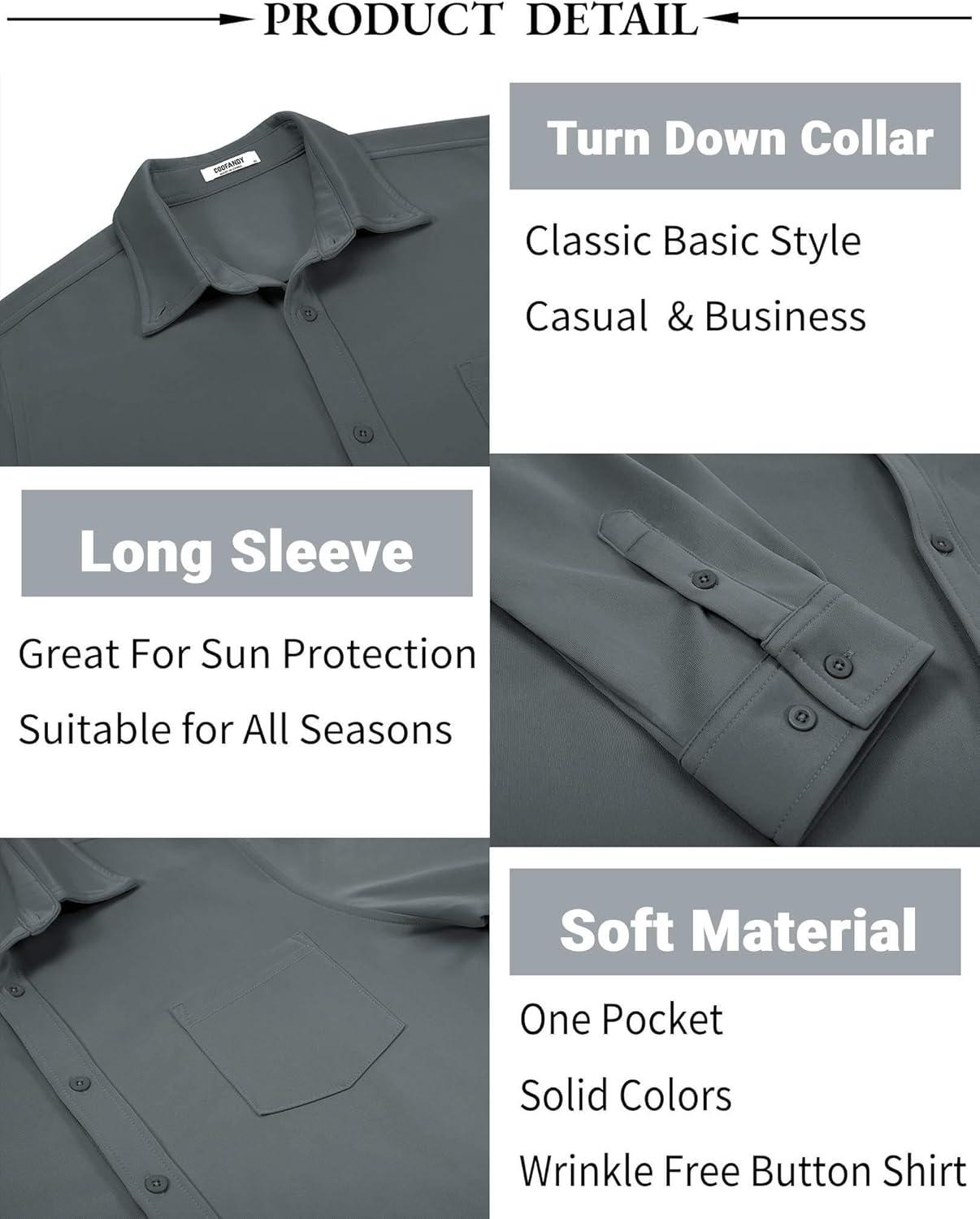 COOFANDY Mens Long Sleeve Wrinkle Free Shirts Casual Button Down Shirt Stretch Dress Shirt(Dark Grey)