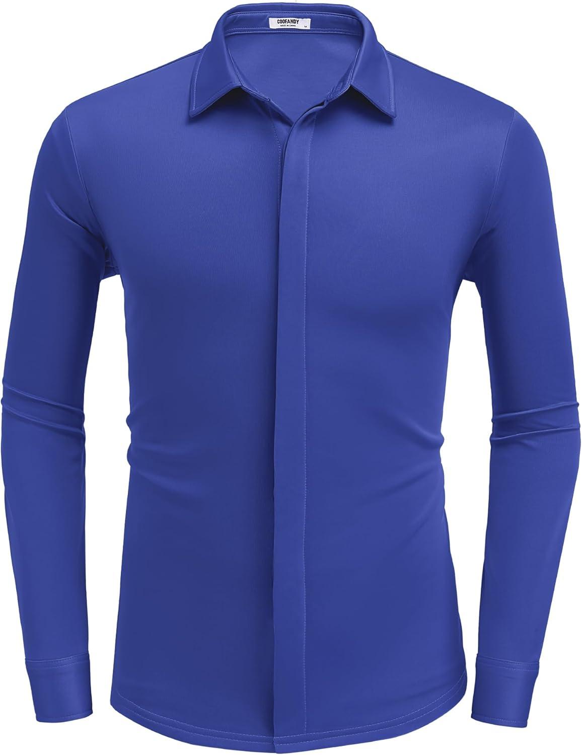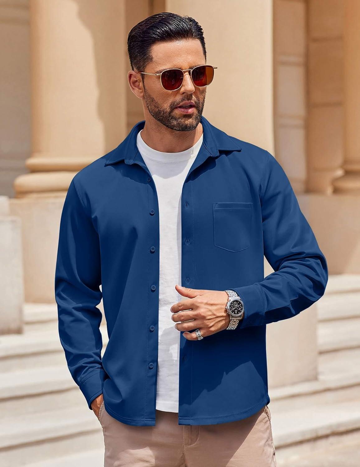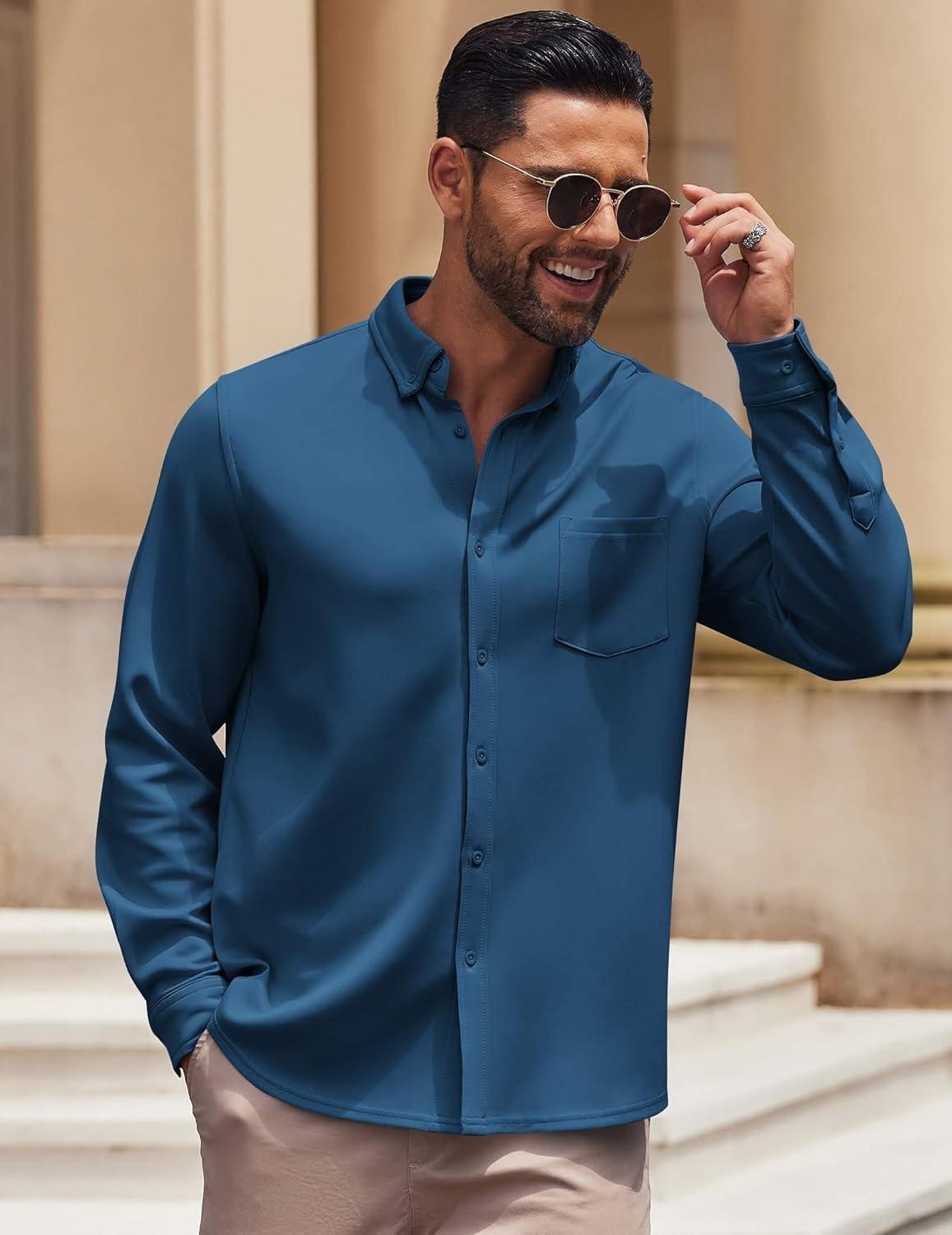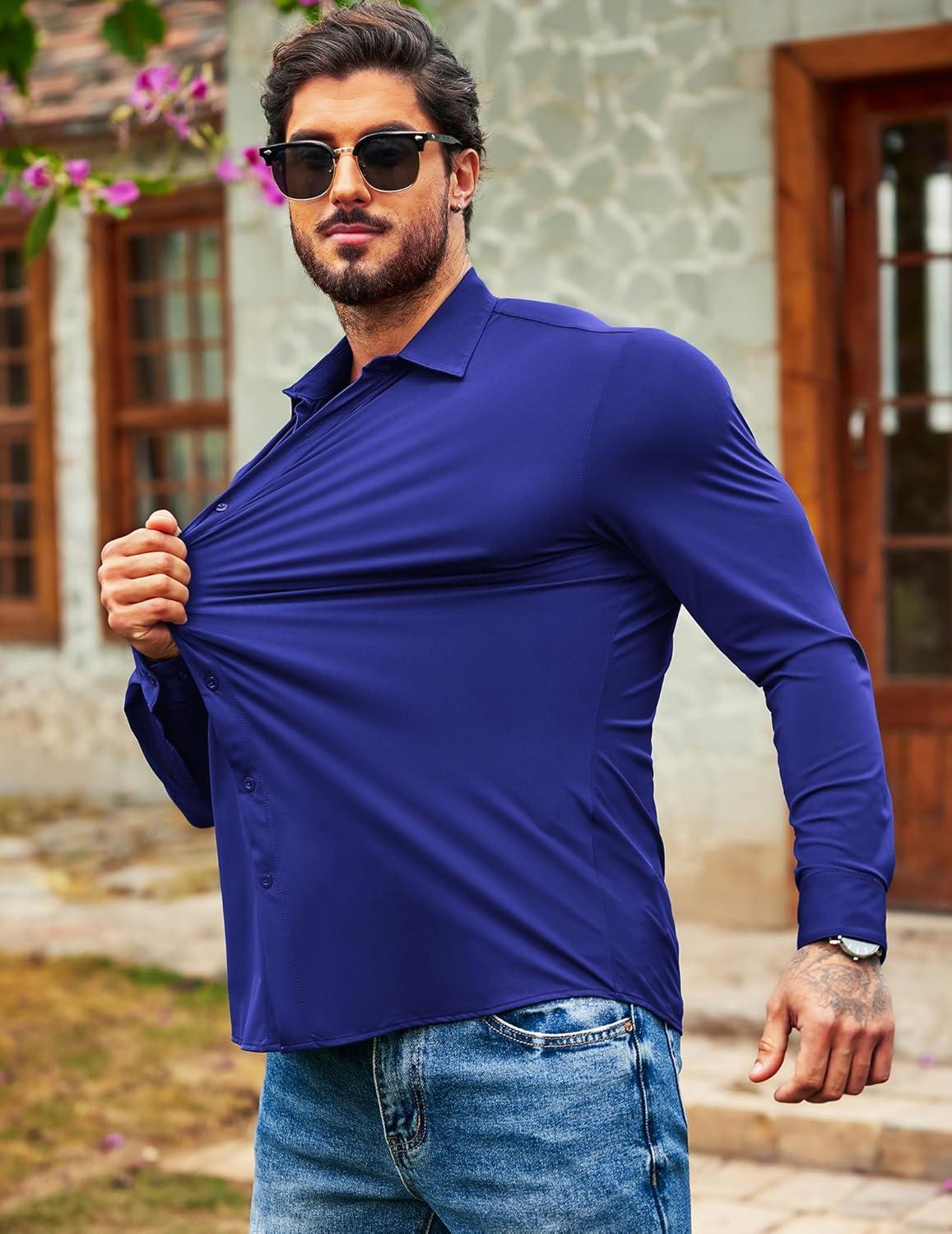 COOFANDY Mens Long Sleeve Wrinkle Free Shirts Casual Button Down Shirt Stretch Dress Shirt(Sapphire Blue)