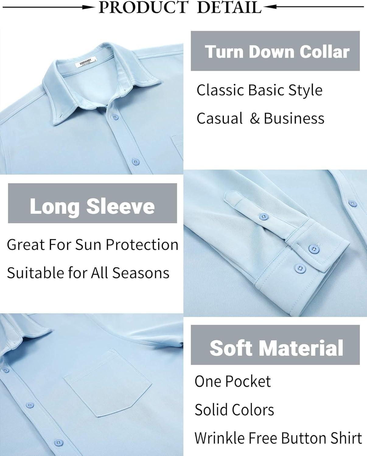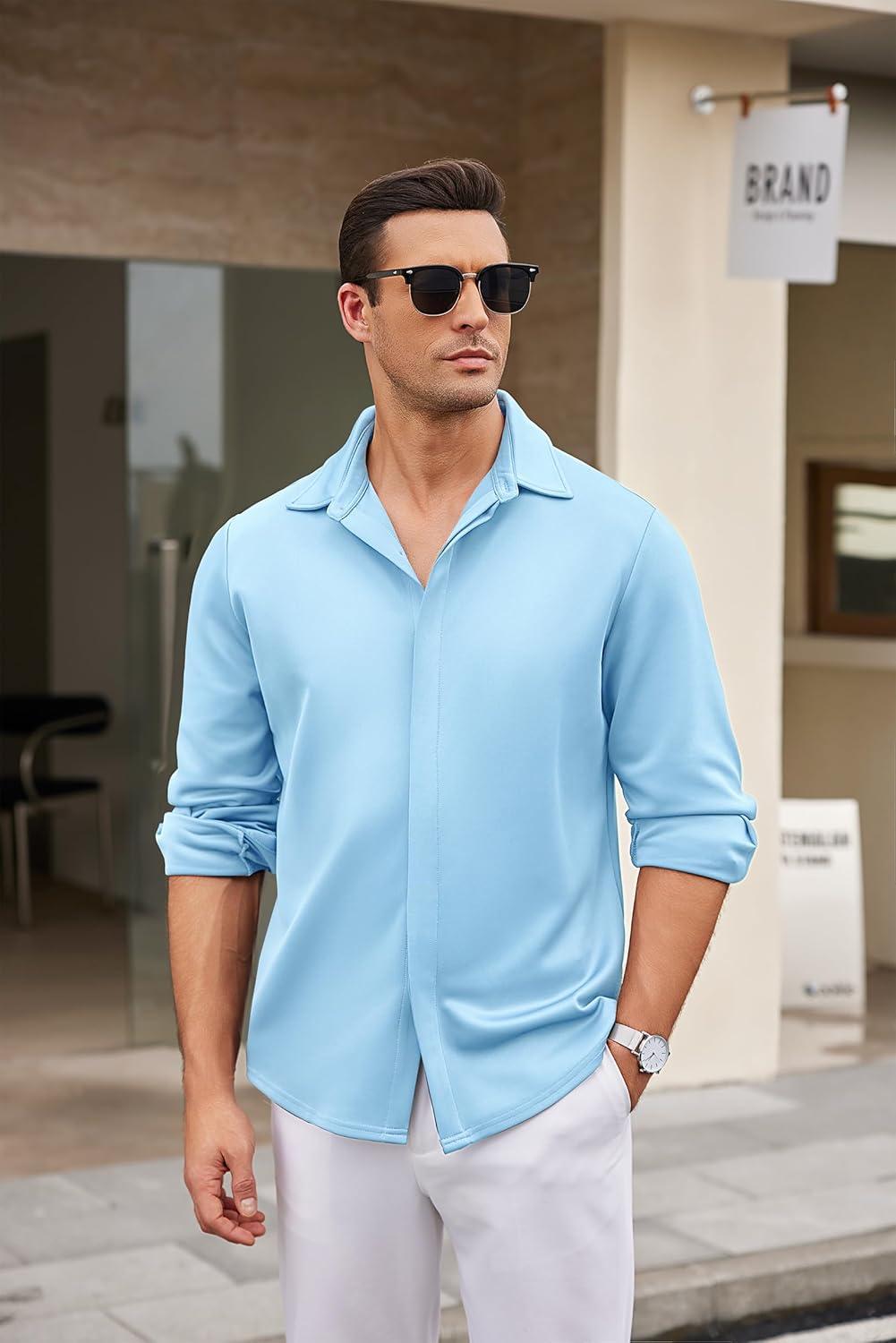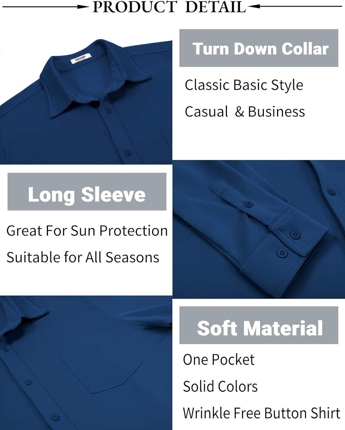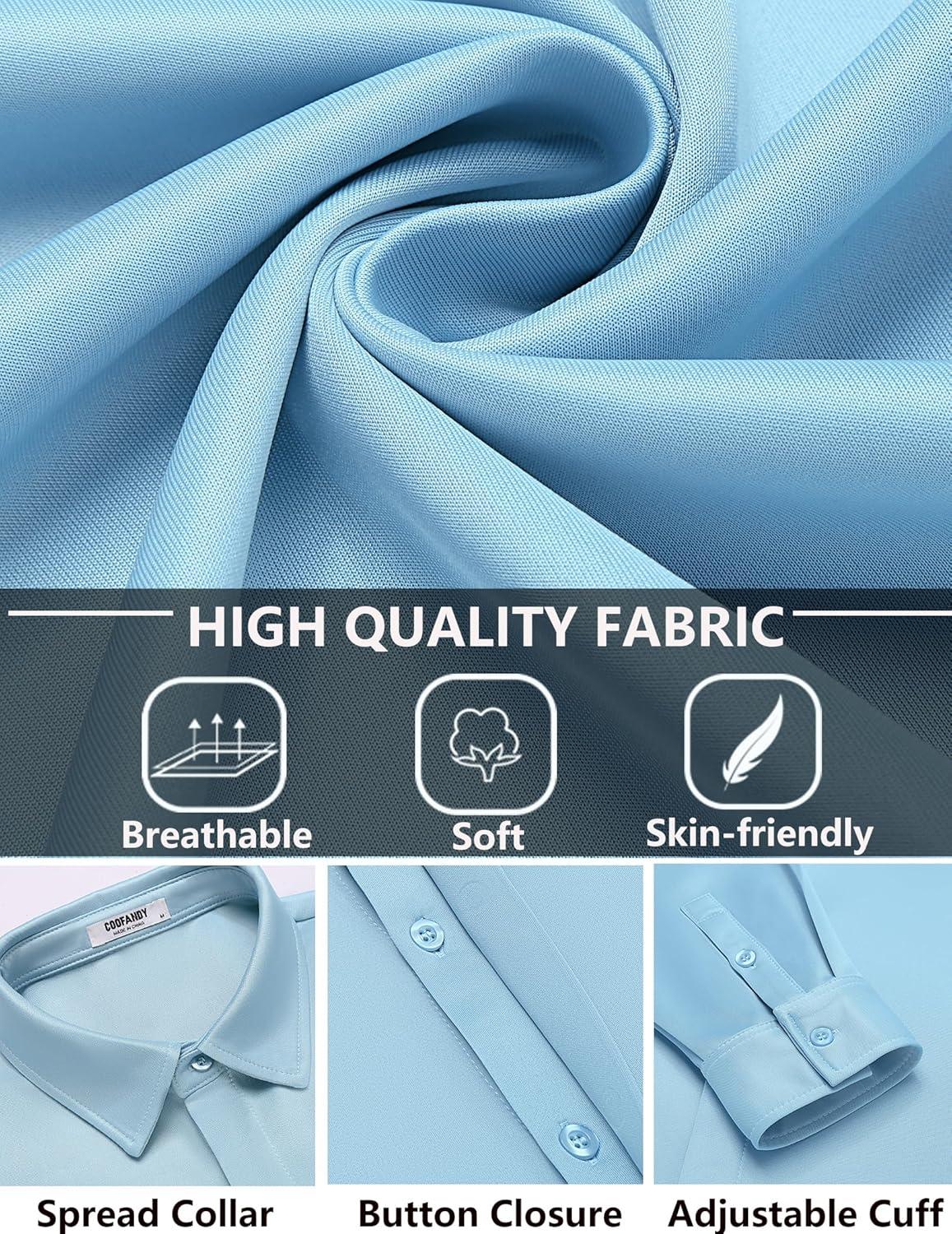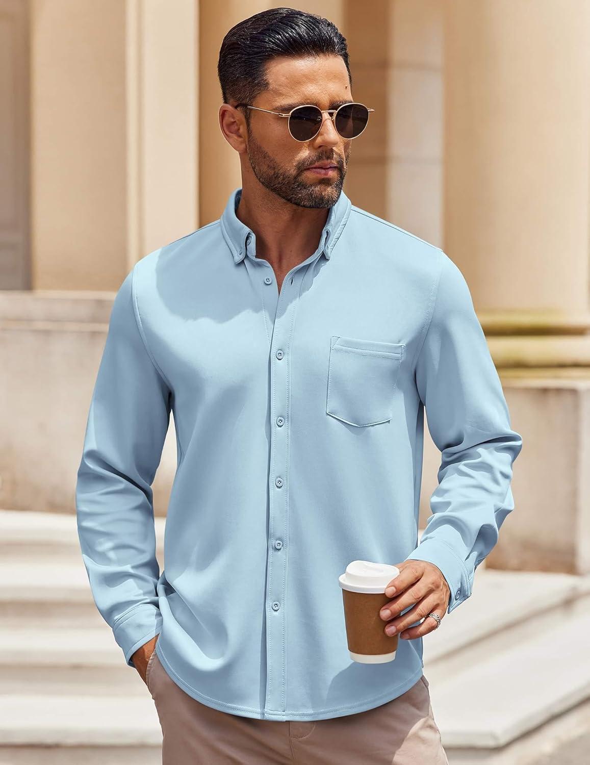 COOFANDY Mens Long Sleeve Wrinkle Free Shirts Casual Button Down Shirt Stretch Dress Shirt(Light Blue)