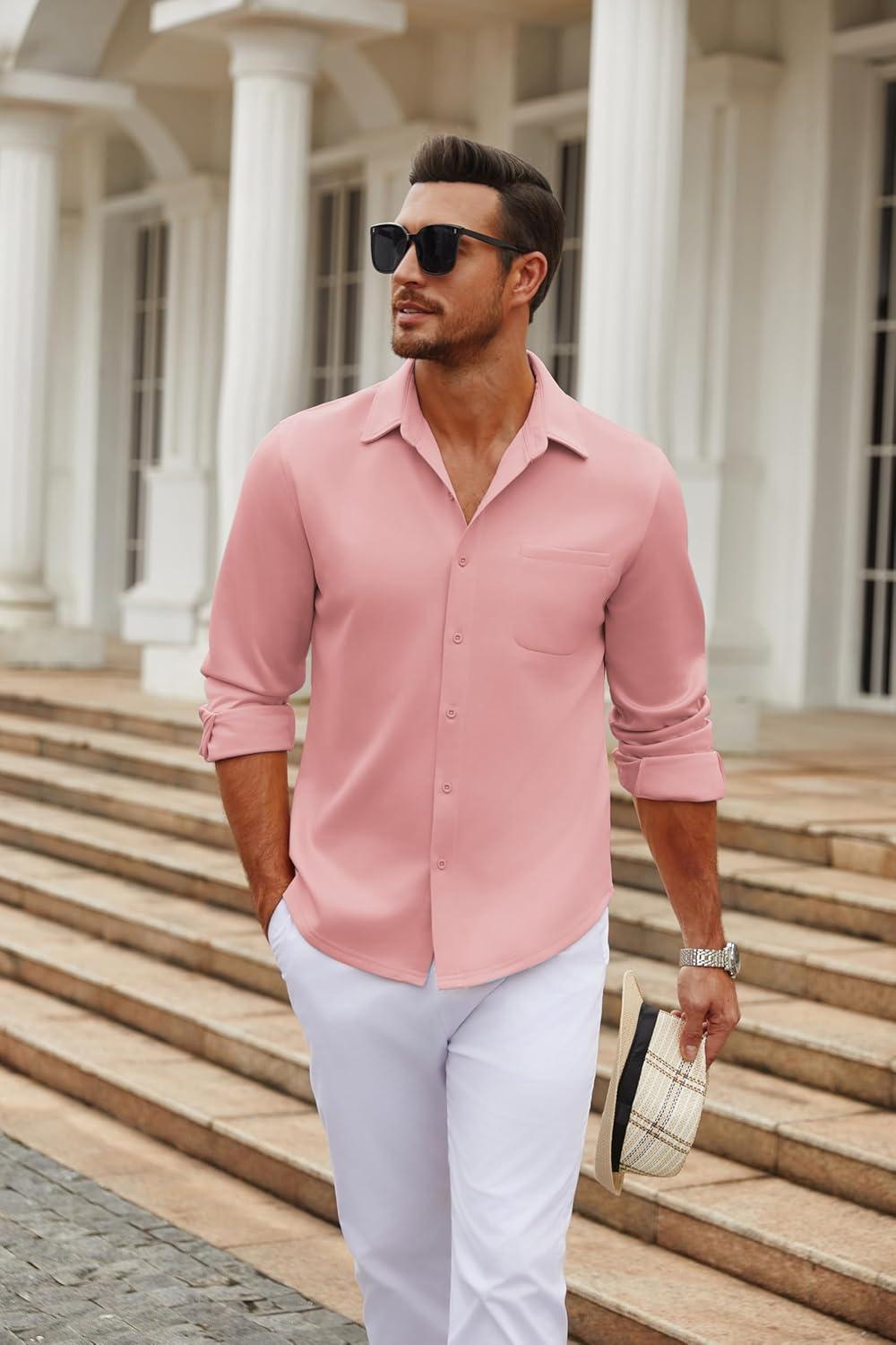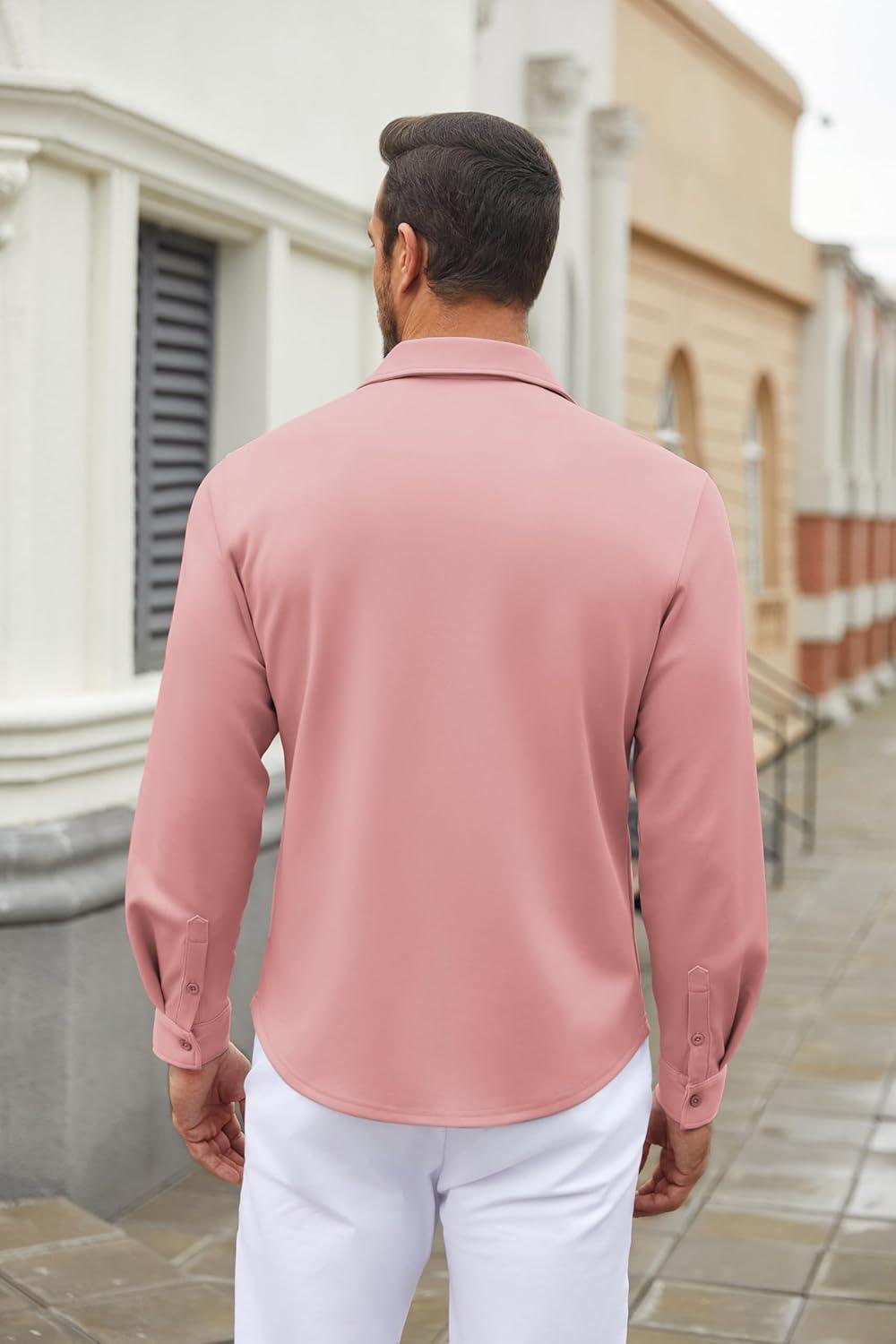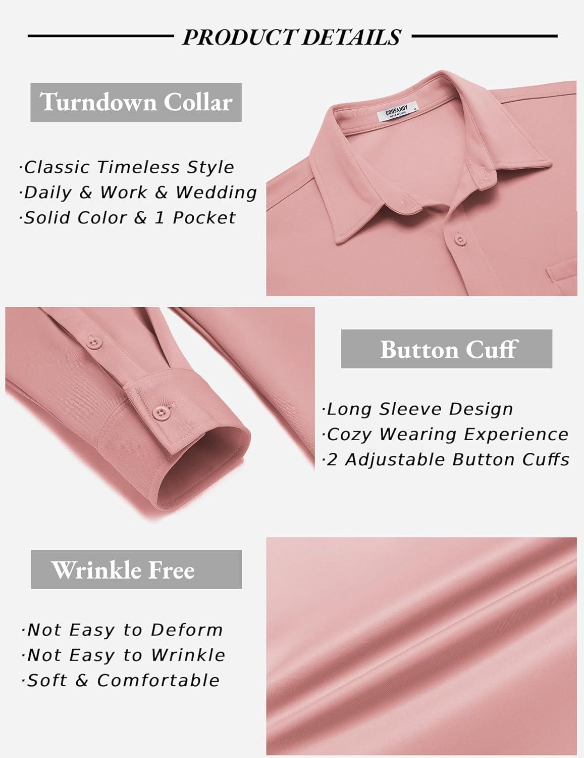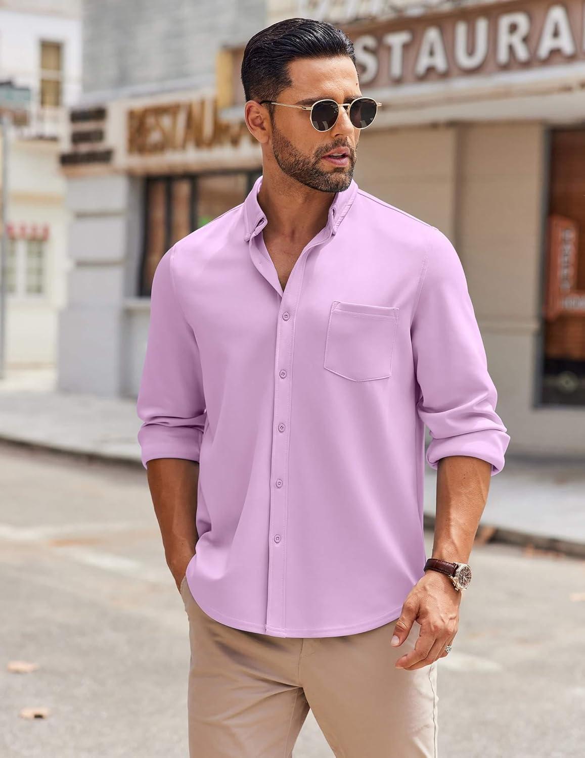 COOFANDY Men’s Long Sleeve Wrinkle Free Shirt Casual Button Down Shirts Stretch Dress Shirt with Pocket(Pink)