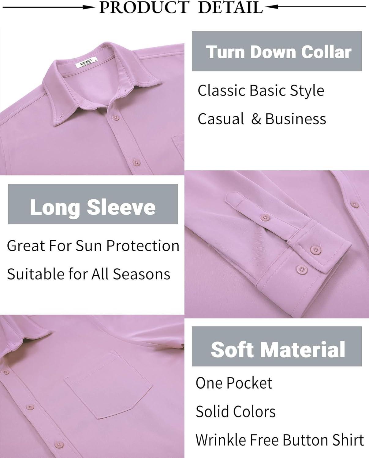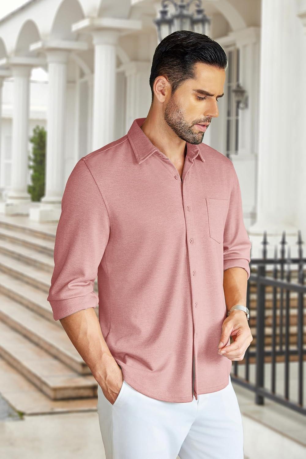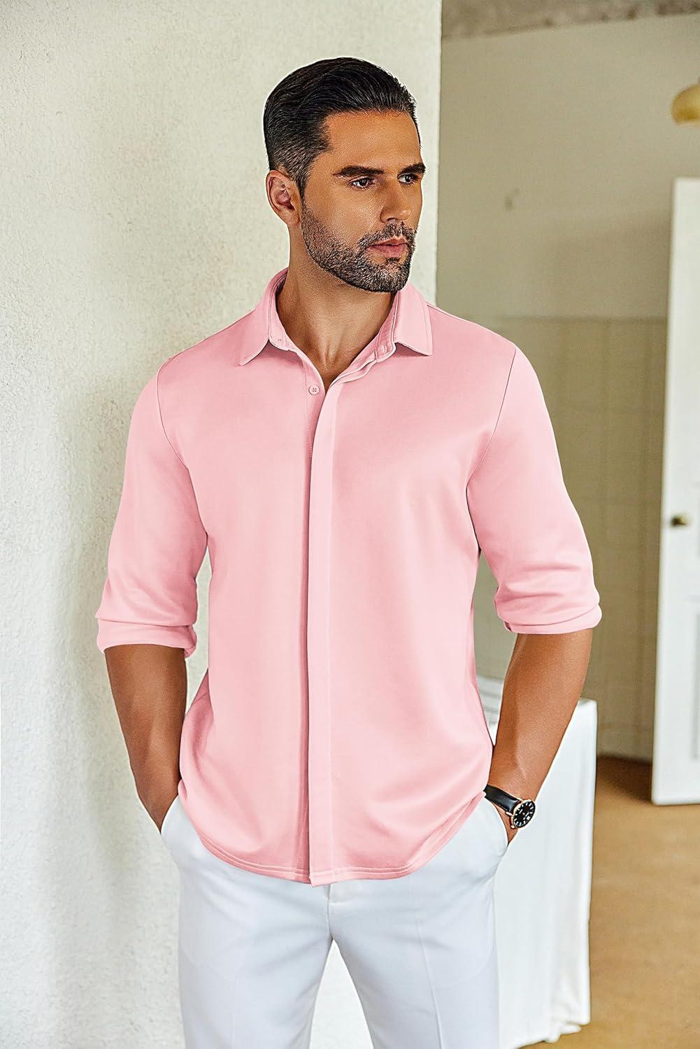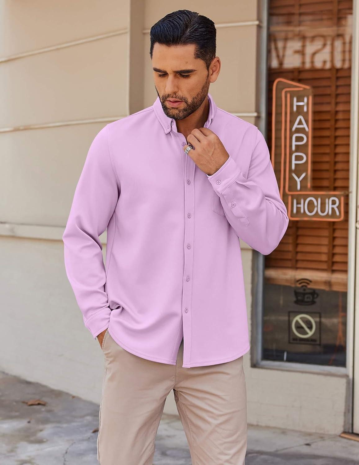 COOFANDY Men’s Long Sleeve Wrinkle Free Shirt Casual Button Down Shirts Stretch Dress Shirt with Pocket(Pink)