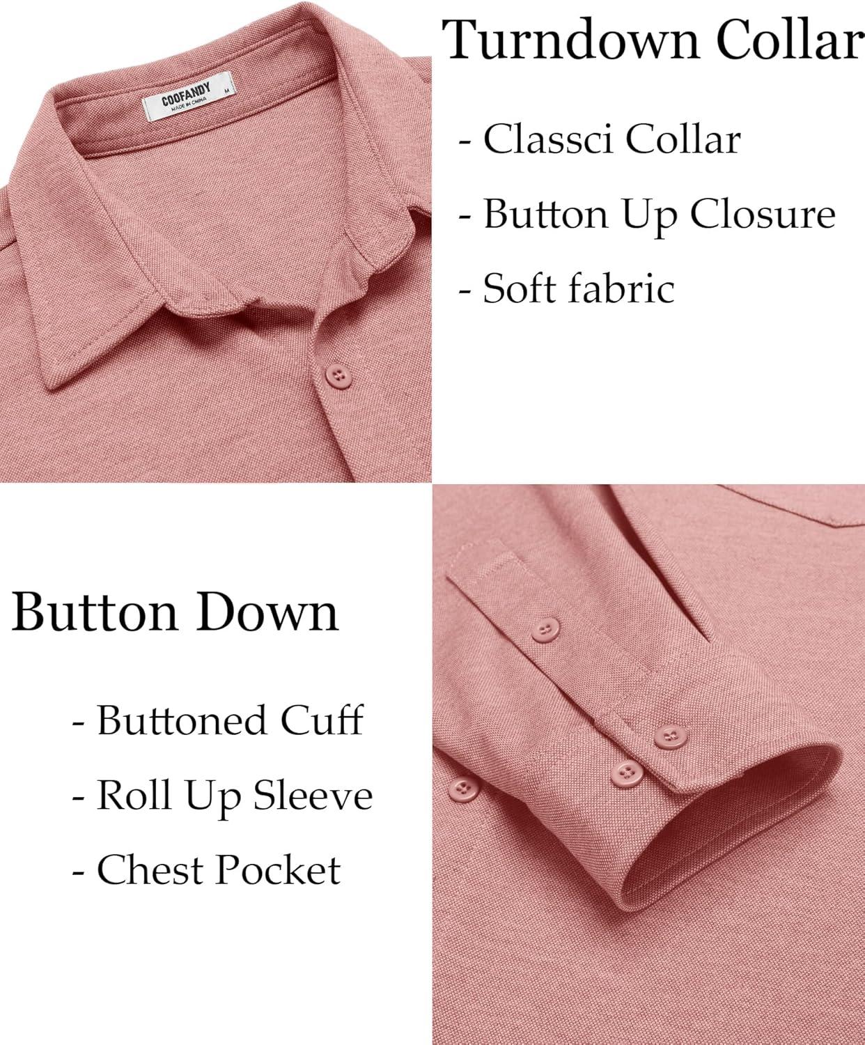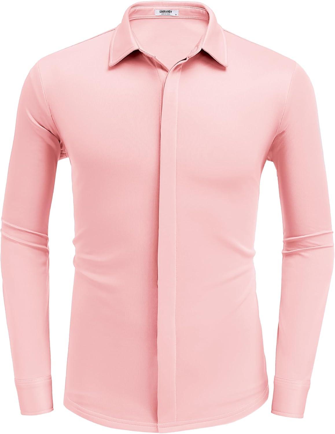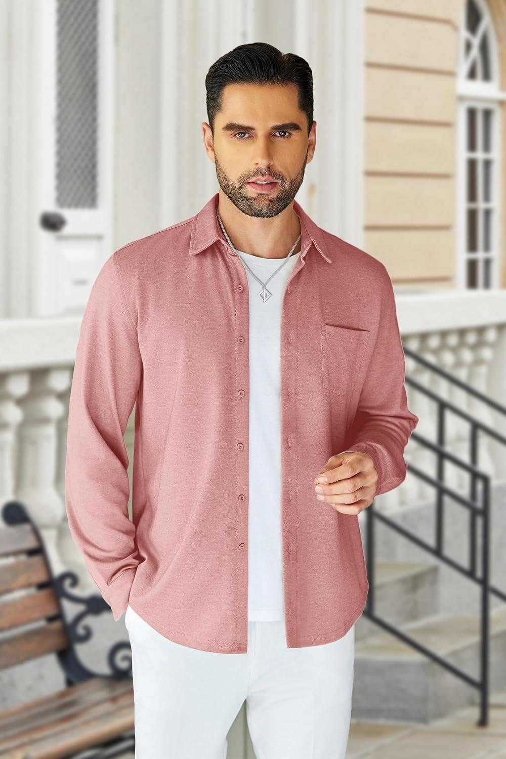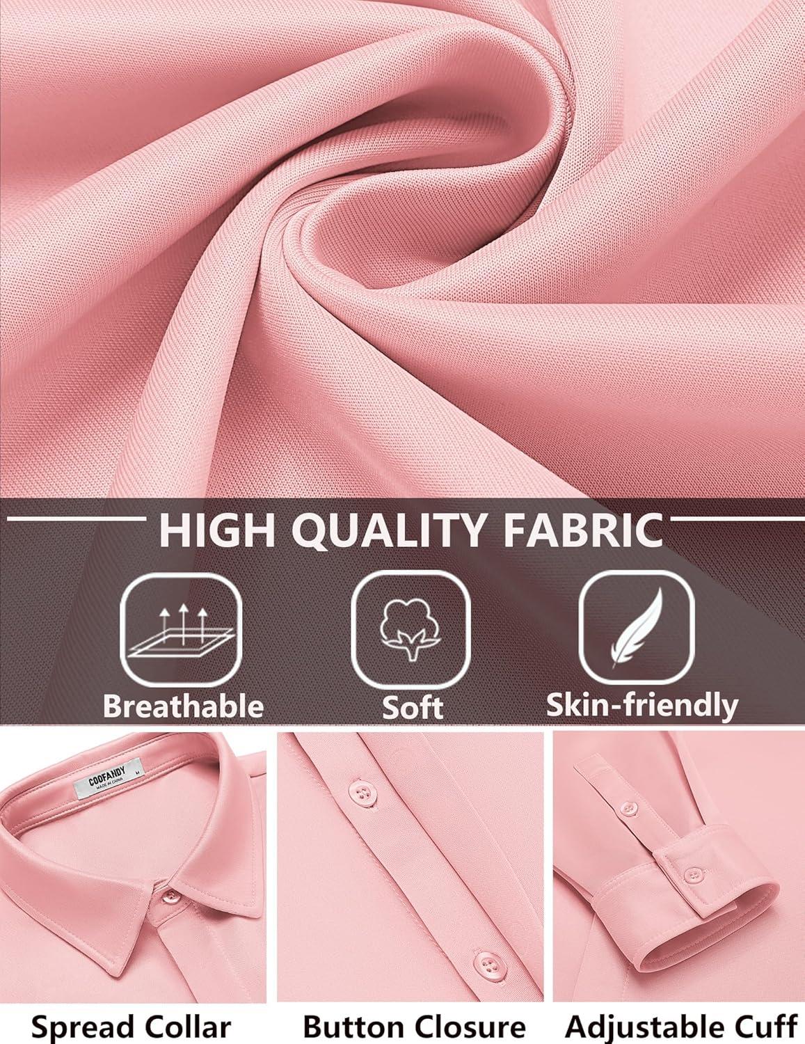 COOFANDY Men’s Long Sleeve Wrinkle Free Shirt Casual Button Down Shirts Stretch Dress Shirt with Pocket(Pink)