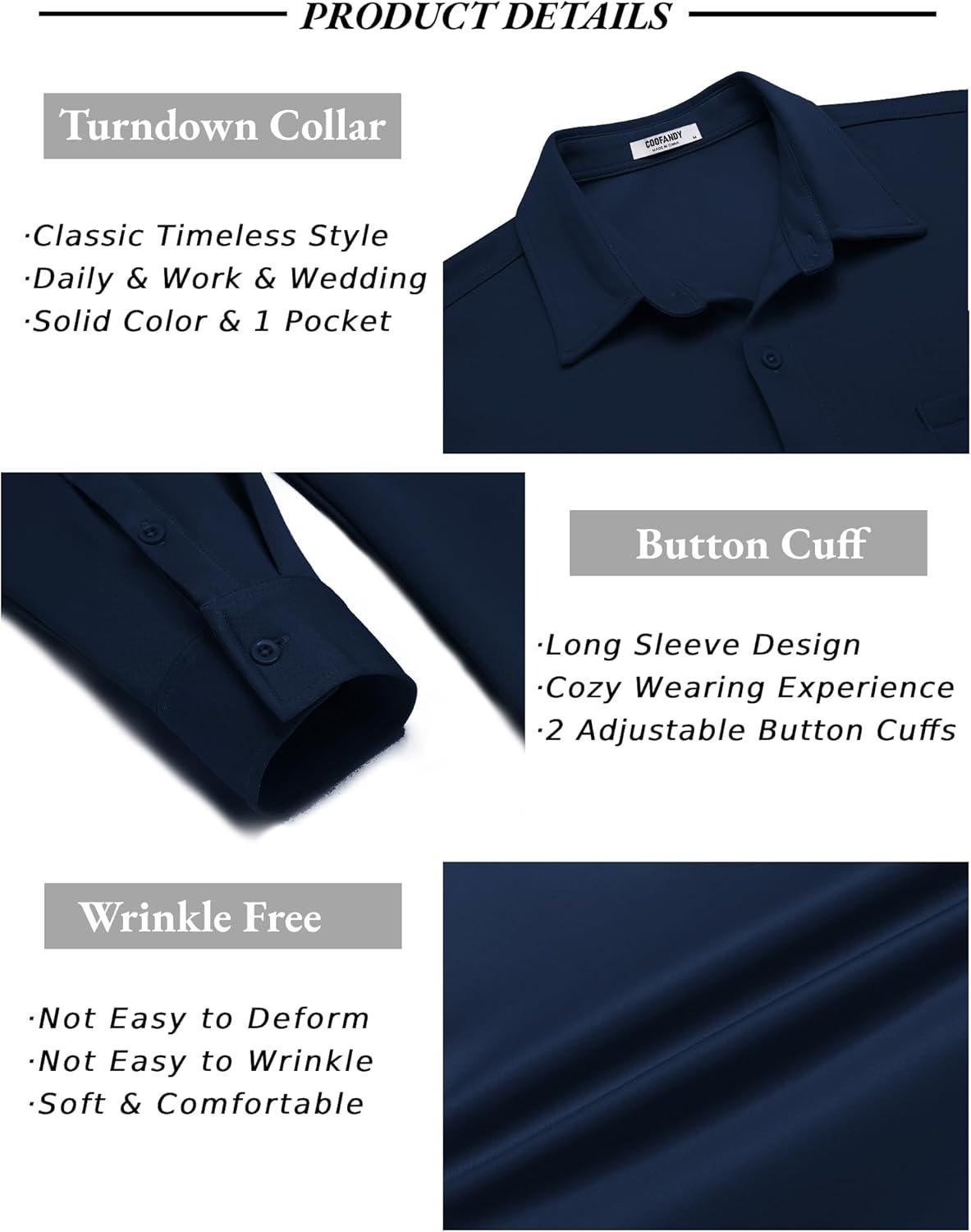 COOFANDY Men’s Casual Button Down Shirt Wrinkle Free Shirts Long Sleeve Dress Shirt(Navy Shark)