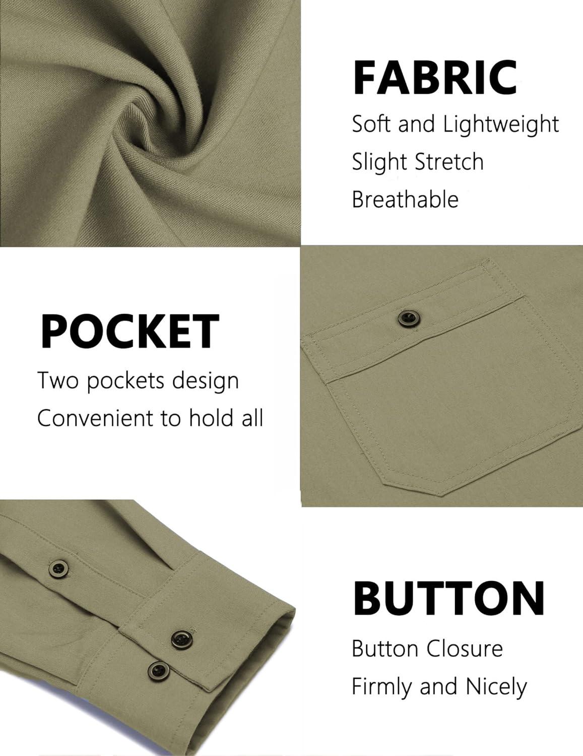 COOFANDY Men’s Long Sleeve Button Down Shirt Wrinkle Free Untucked Dress Shirt Casual Denim Shirt(Light Khaki)