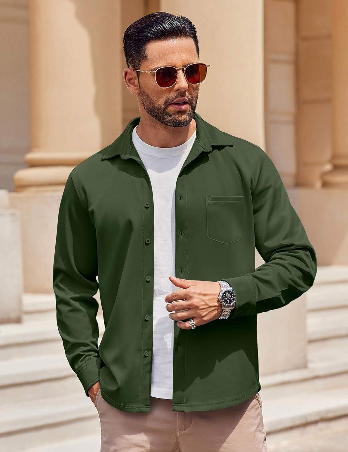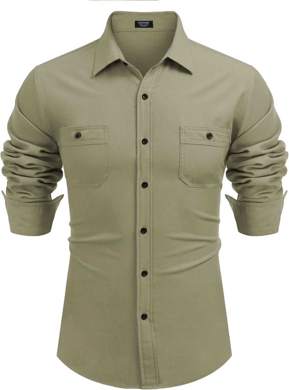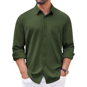 COOFANDY Mens Casual Button Down Shirts Long Sleeve Wrinkle Free Untucked Dress Shirts(Army Green)