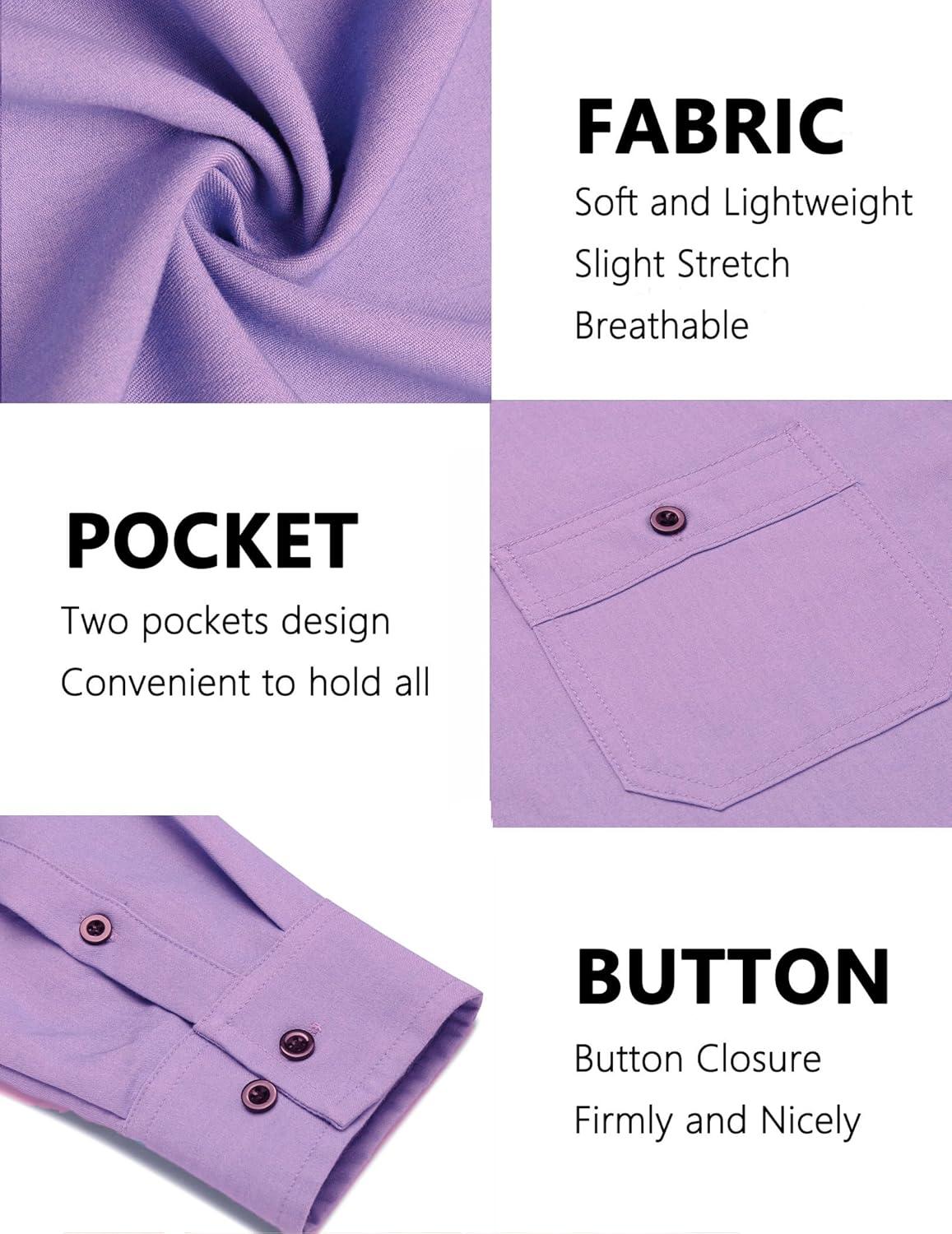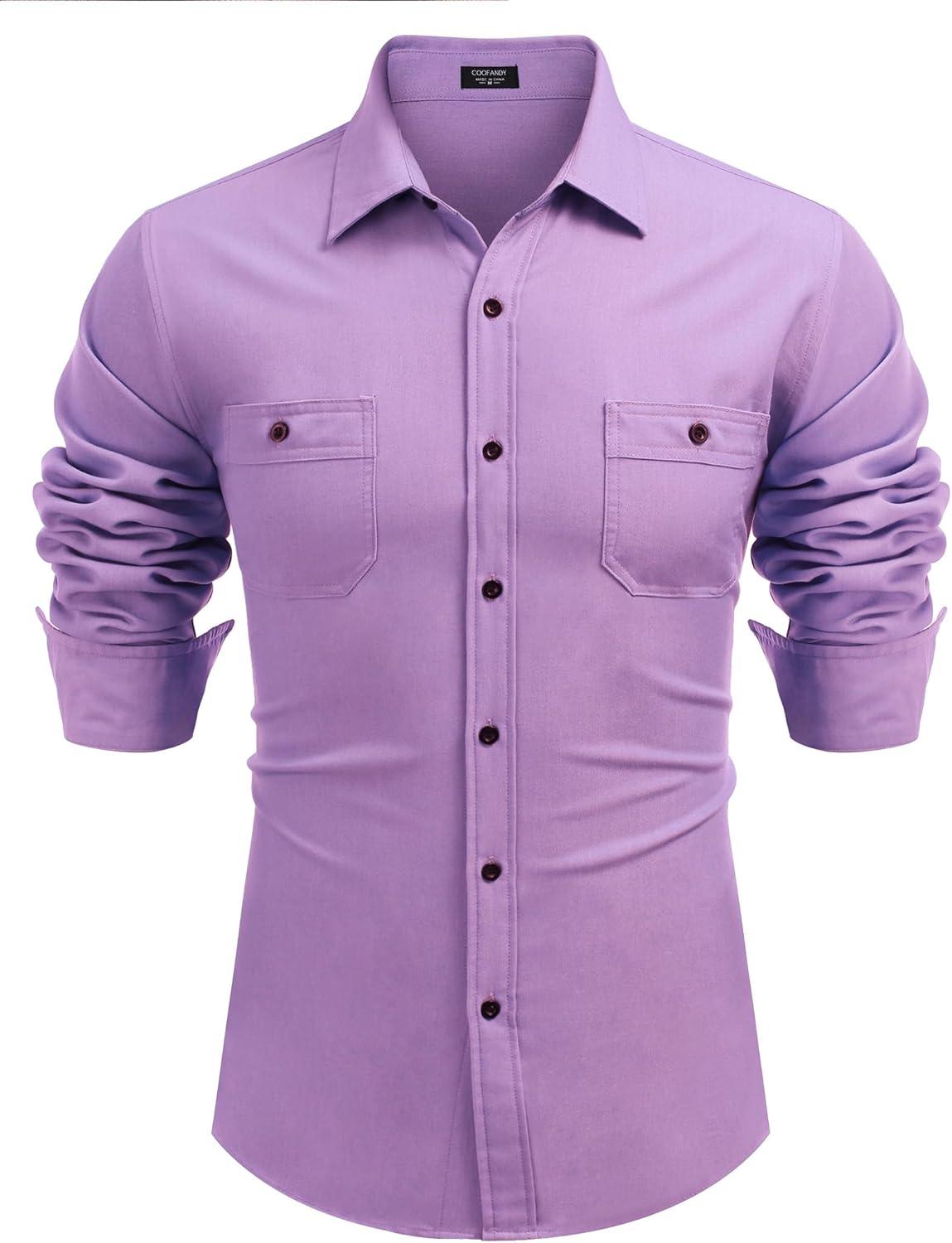 COOFANDY Mens Casual Button Down Shirts Long Sleeve Wrinkle Free Untucked Dress Shirts(Purple)