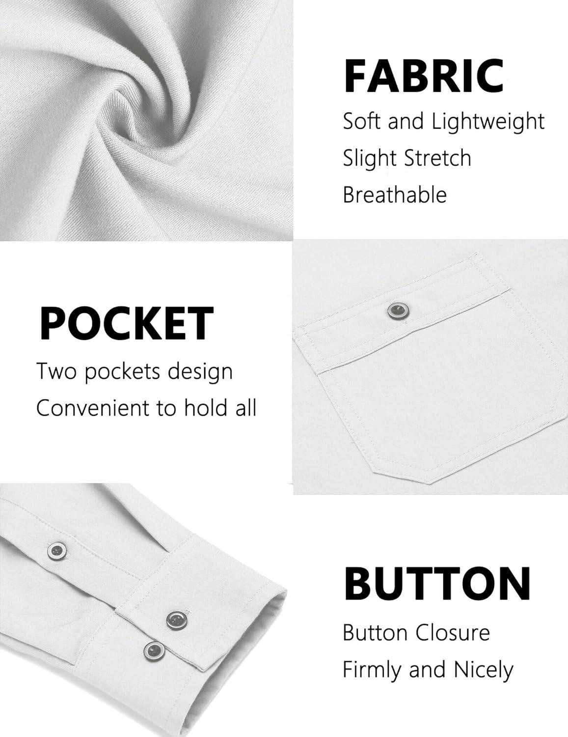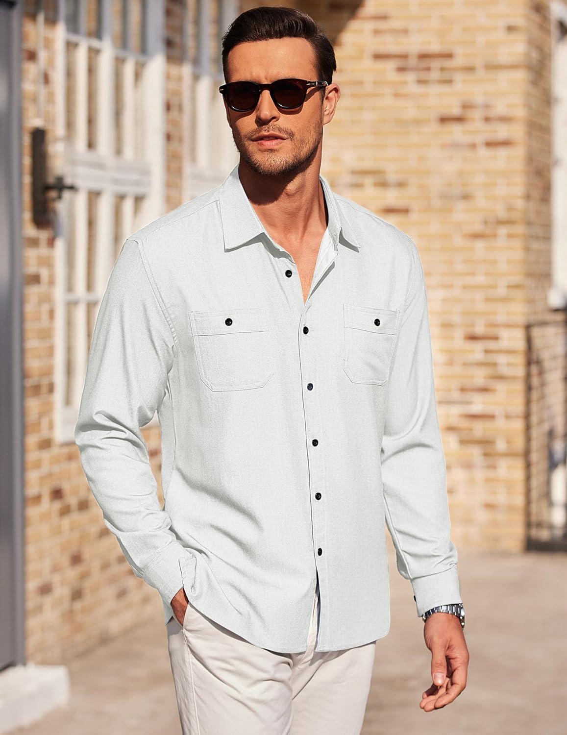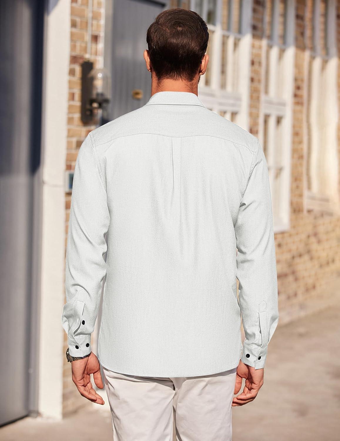 COOFANDY Men’s Casual Button Down Shirt Long Sleeve Linen Chambray Shirt(1- Light Grey)